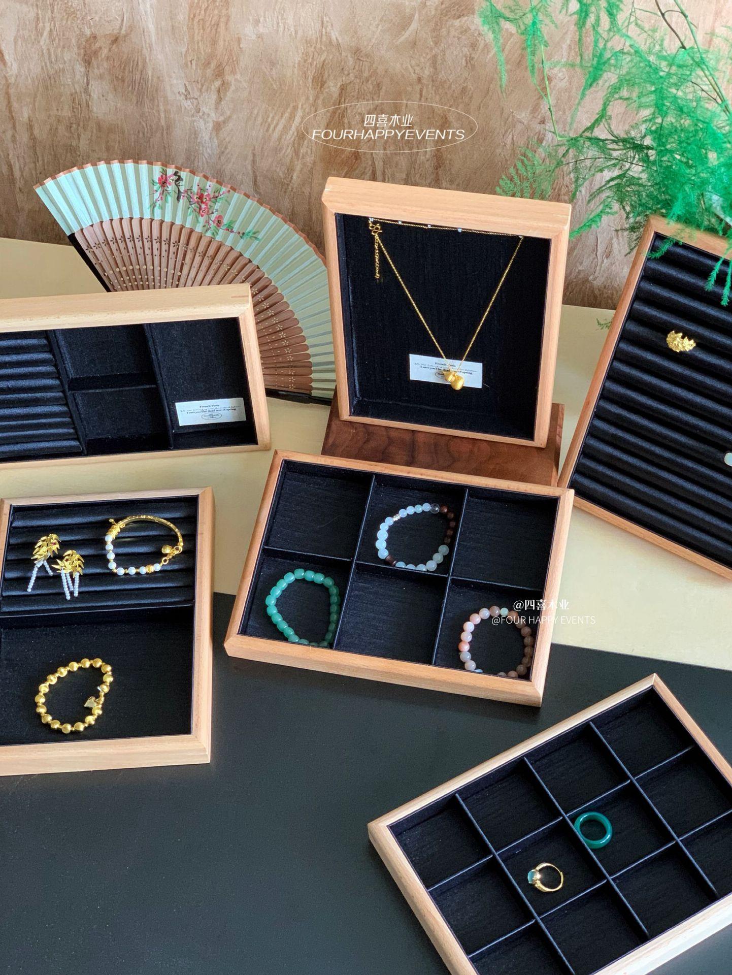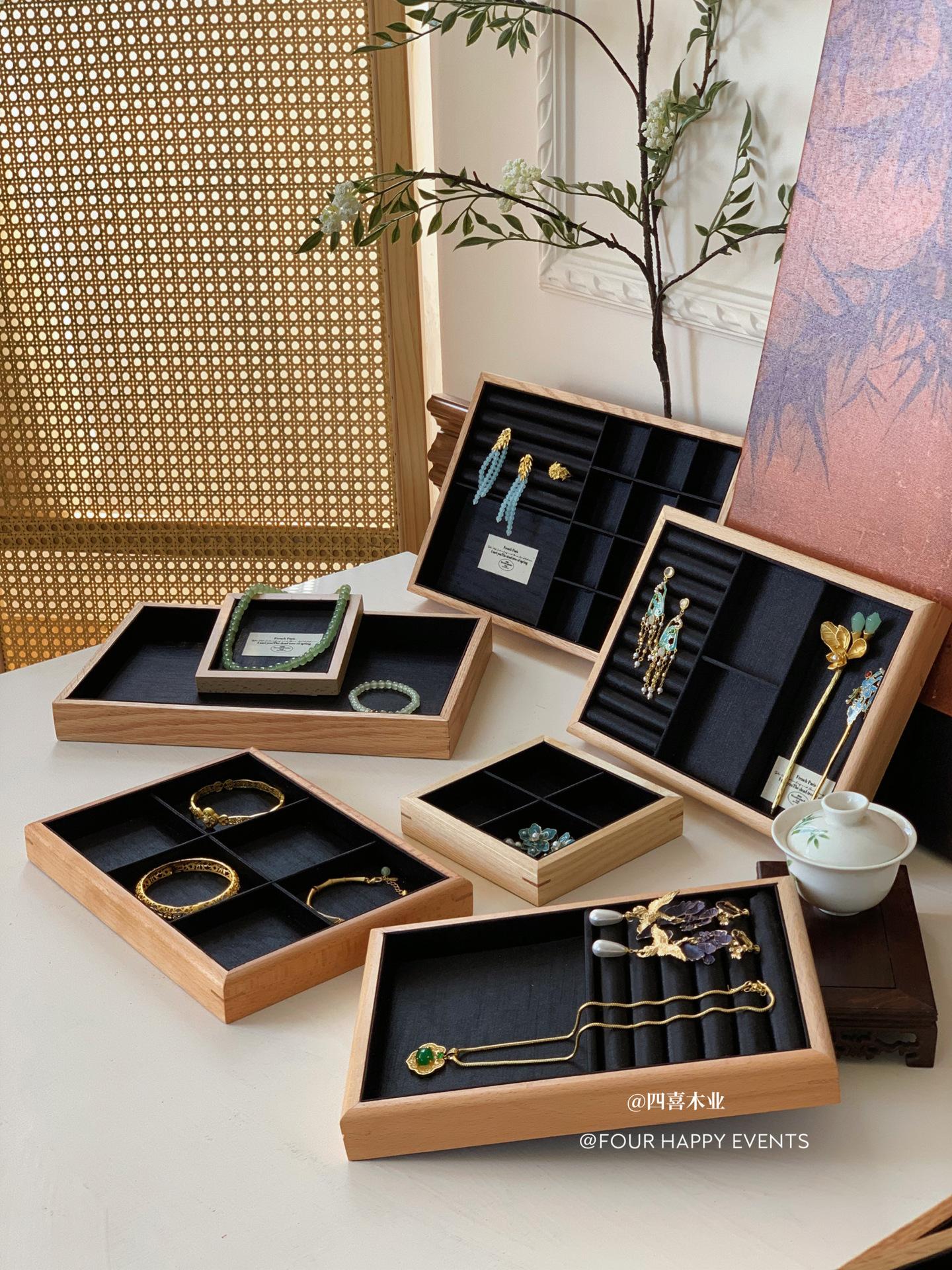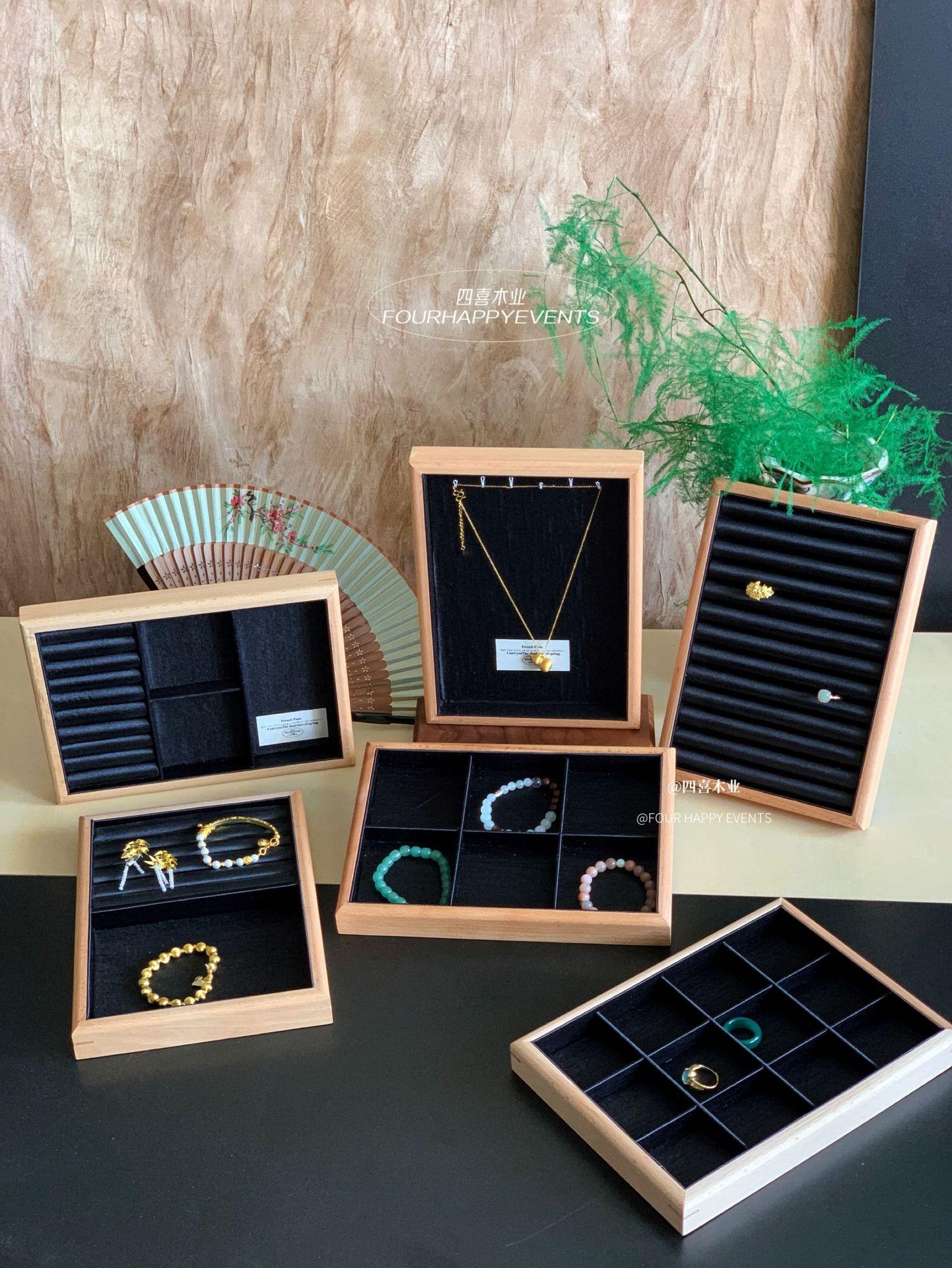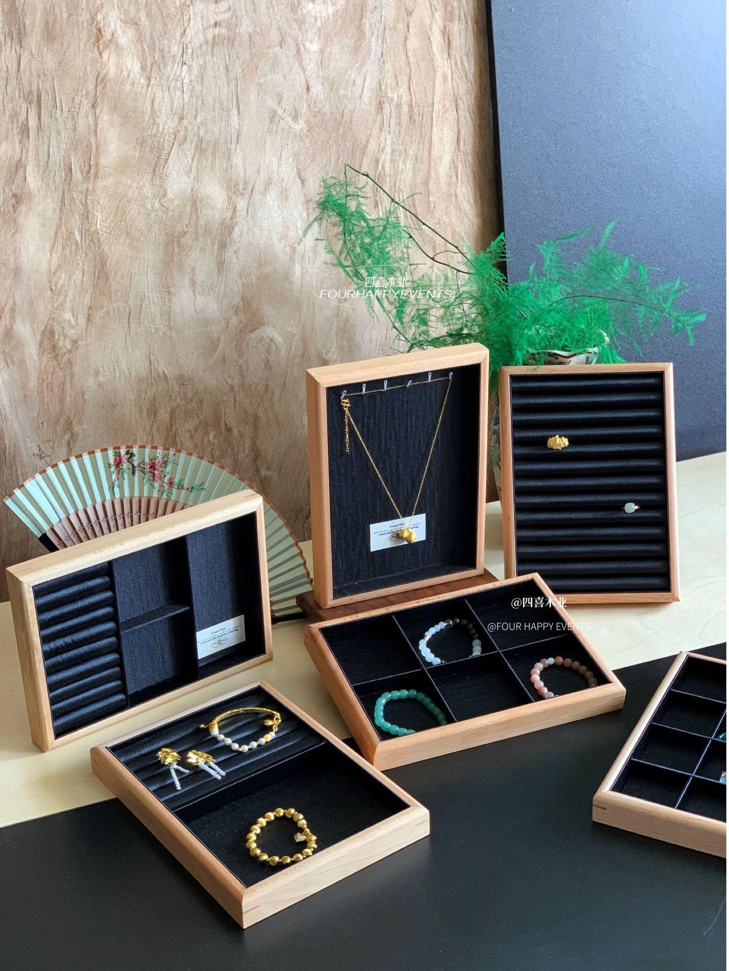 Bandeja de Madera para Joyería, Almacenamiento Vintage para Anillos, Collares, Joyería, Soporte de Exhibición de Joyería, Accesorios, Exhibición, Sensación de Alta Gama