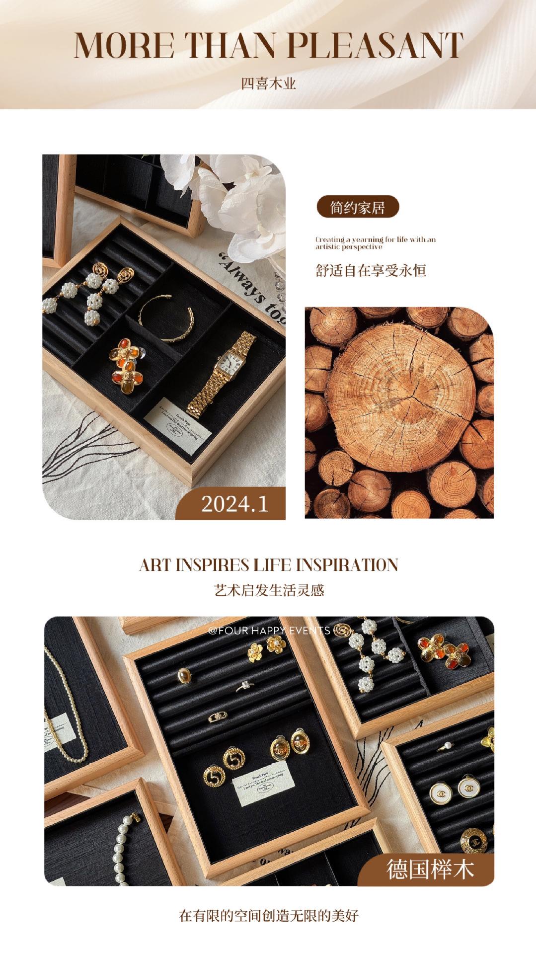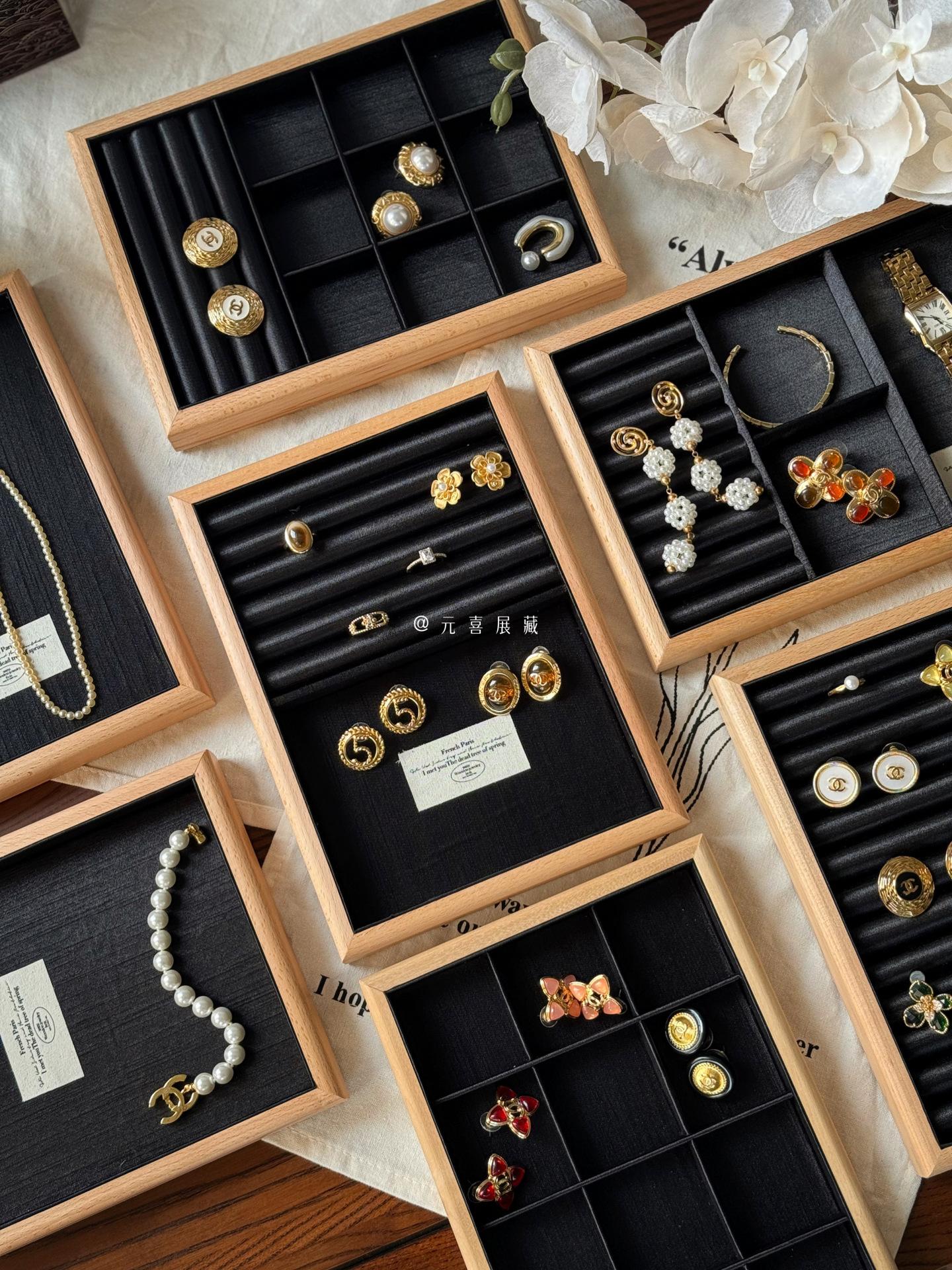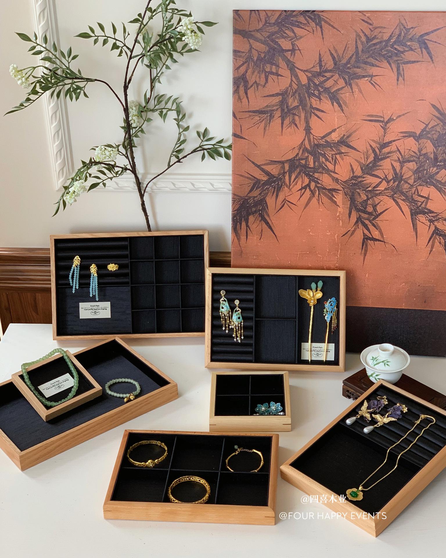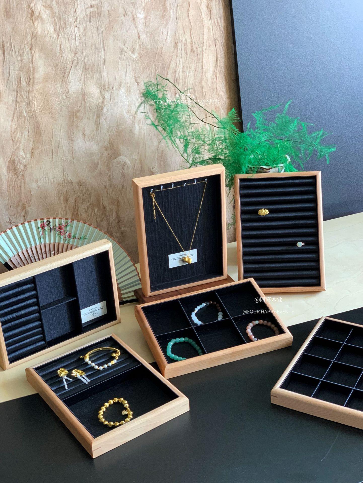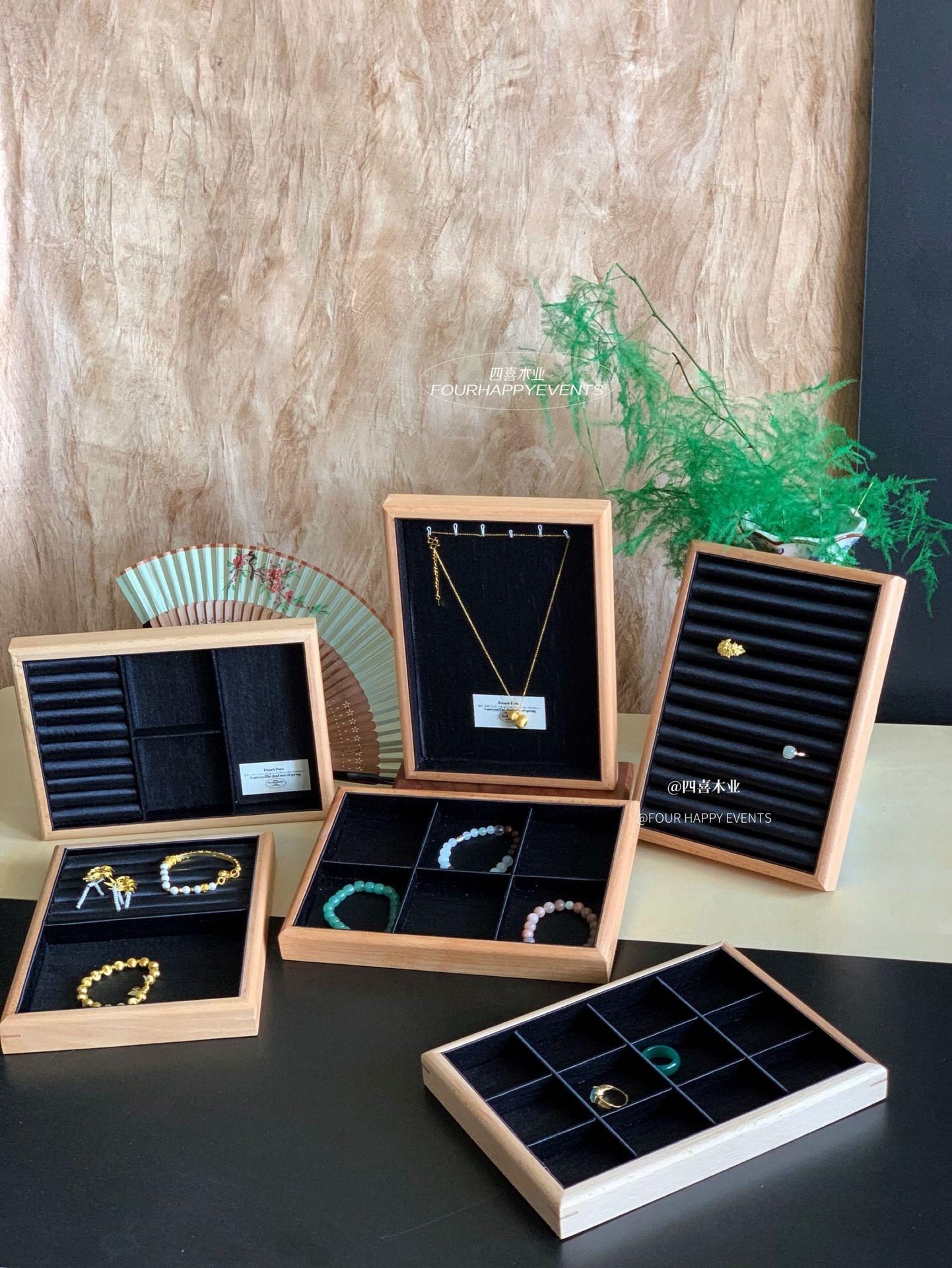 Bandeja de Madera para Joyería, Almacenamiento Vintage para Anillos, Collares, Joyería, Soporte de Exhibición de Joyería, Accesorios, Exhibición, Sensación de Alta Gama
