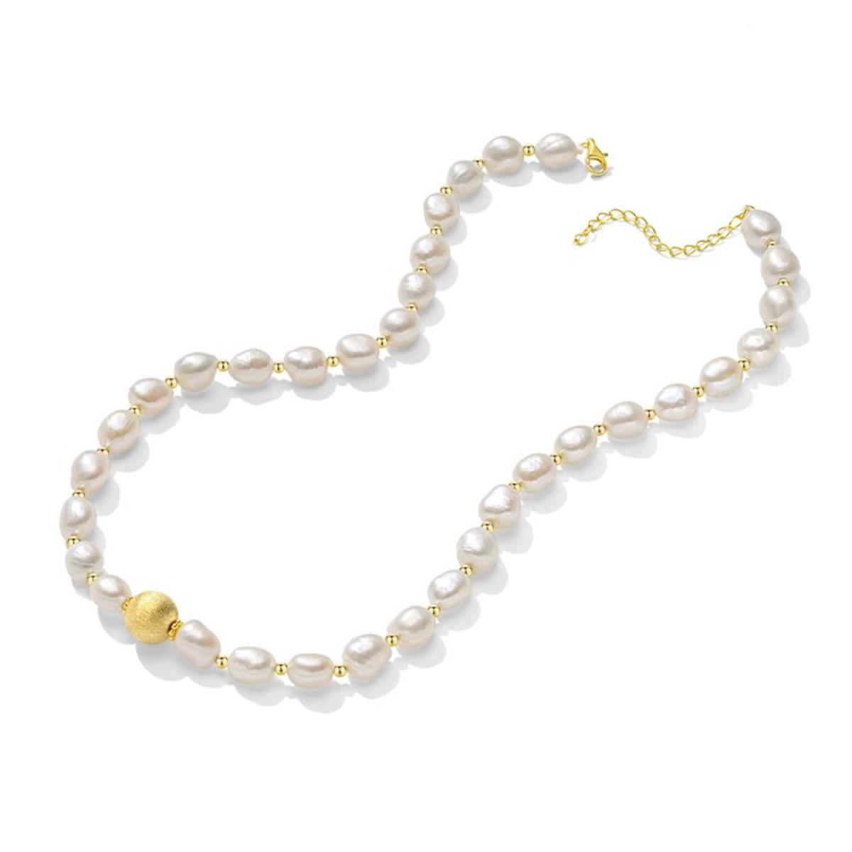 Freshwater pearl gold ball necklace