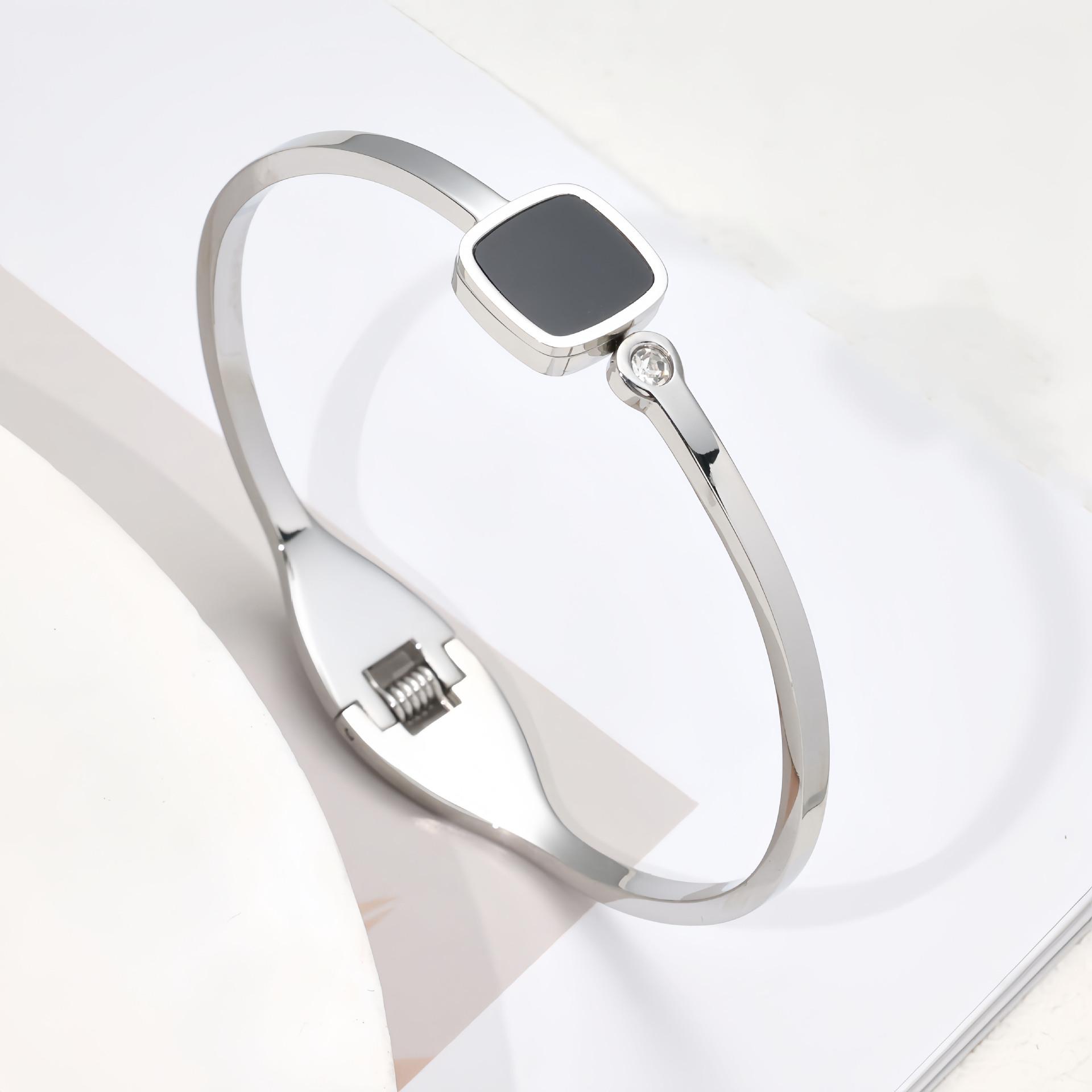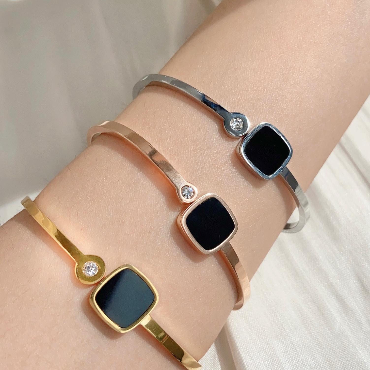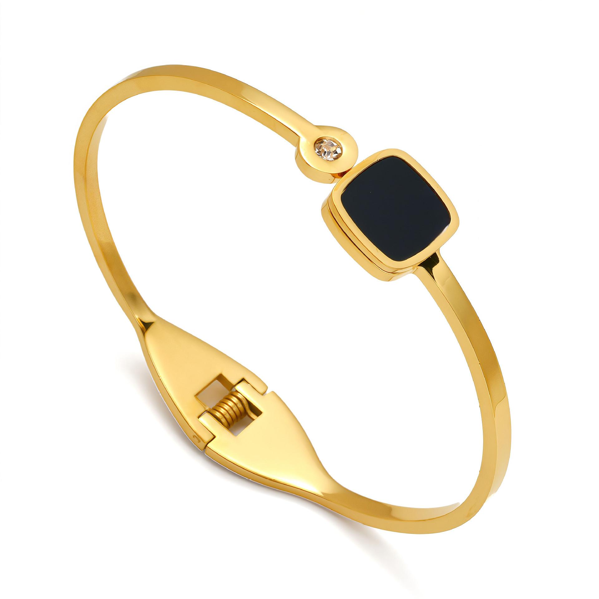 Pulsera clásica europea y americana chapada en oro de 18k pulsera cuadrada simple negra personalidad diamante joyería de acero de titanio al por mayor