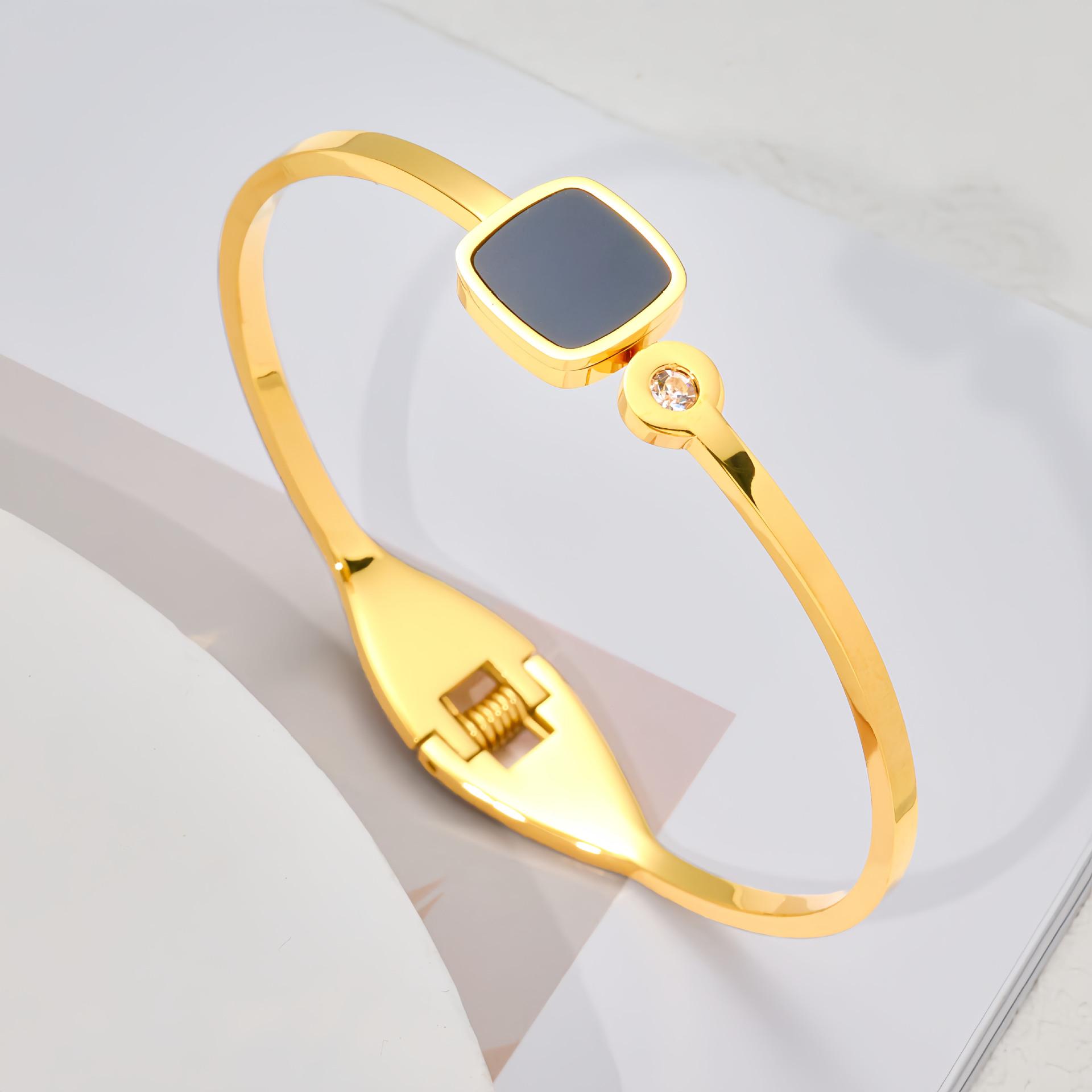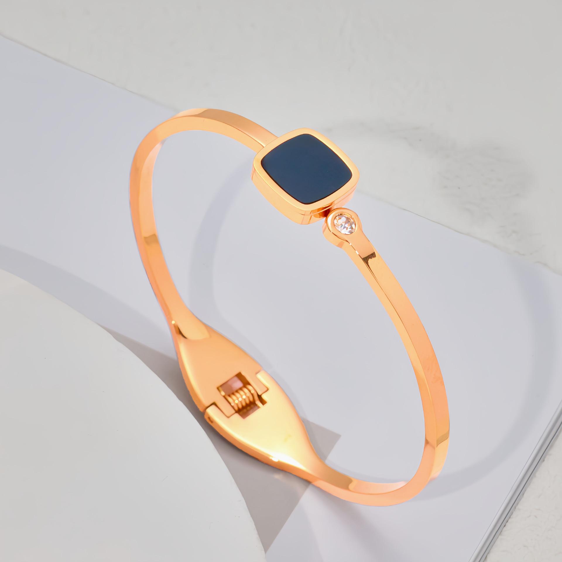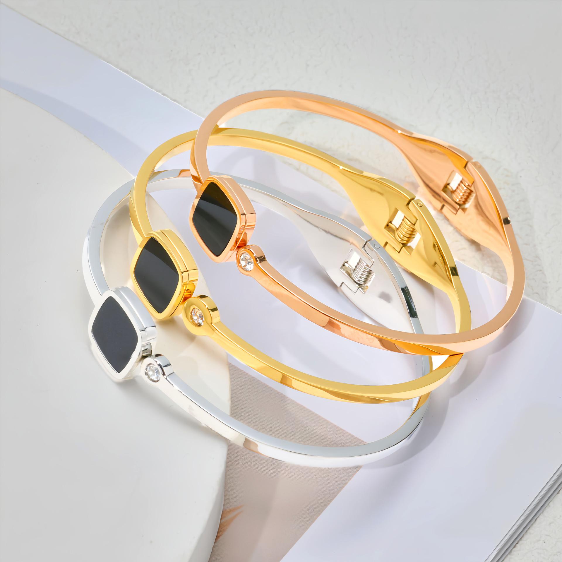Pulsera clásica europea y americana chapada en oro de 18k pulsera cuadrada simple negra personalidad diamante joyería de acero de titanio al por mayor