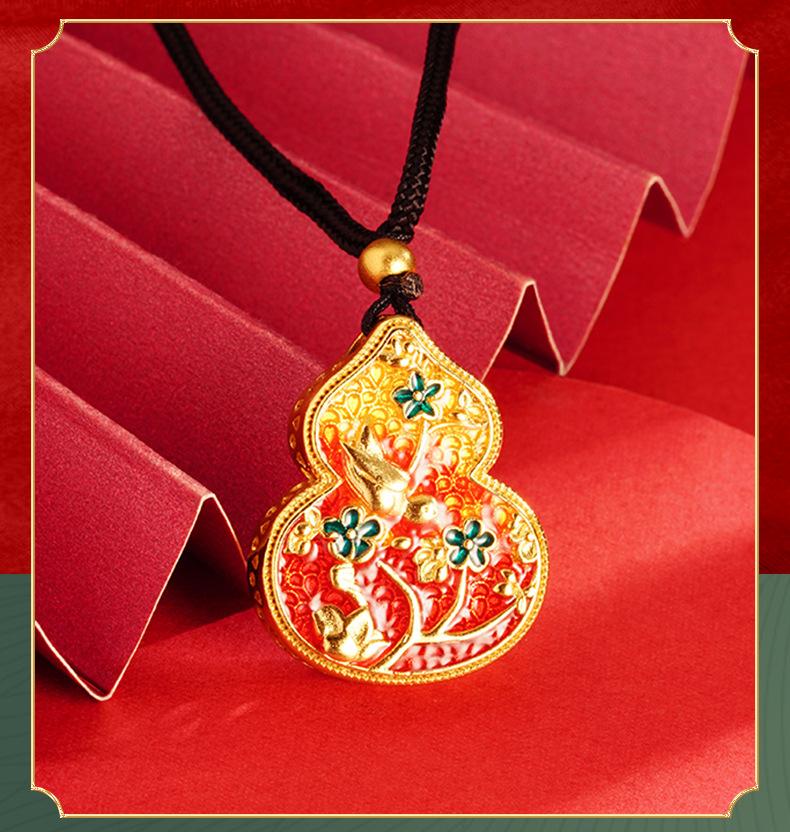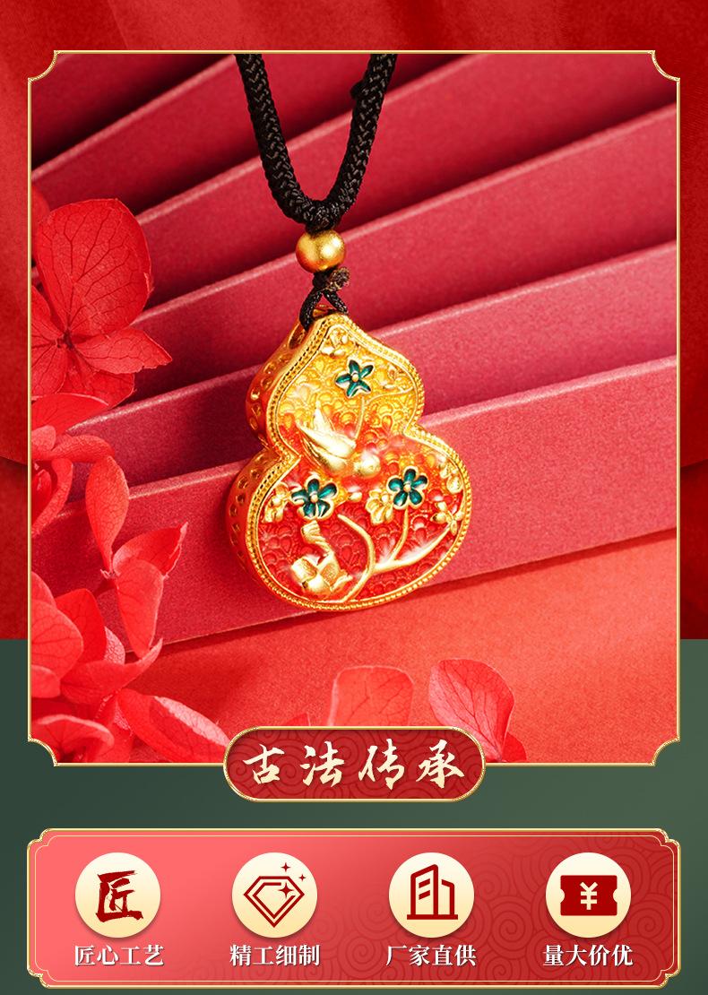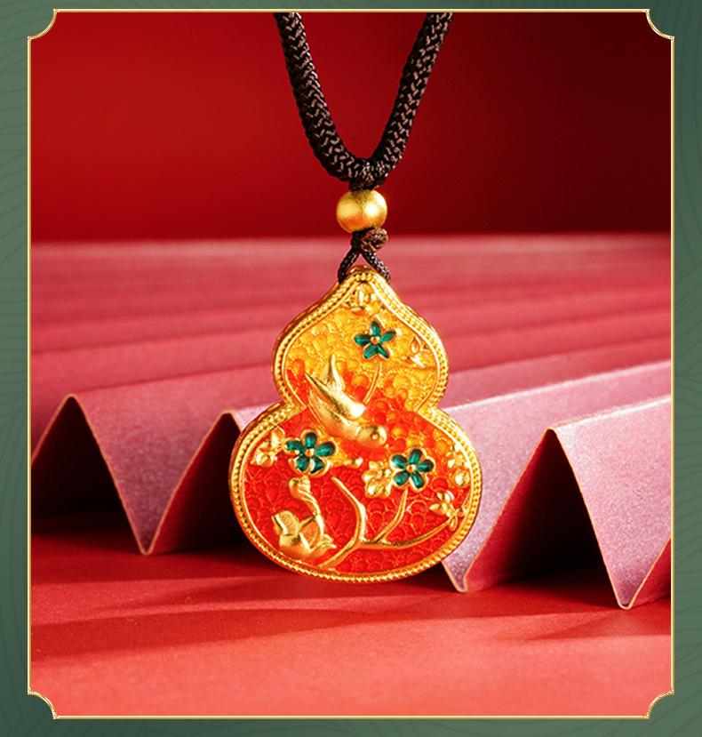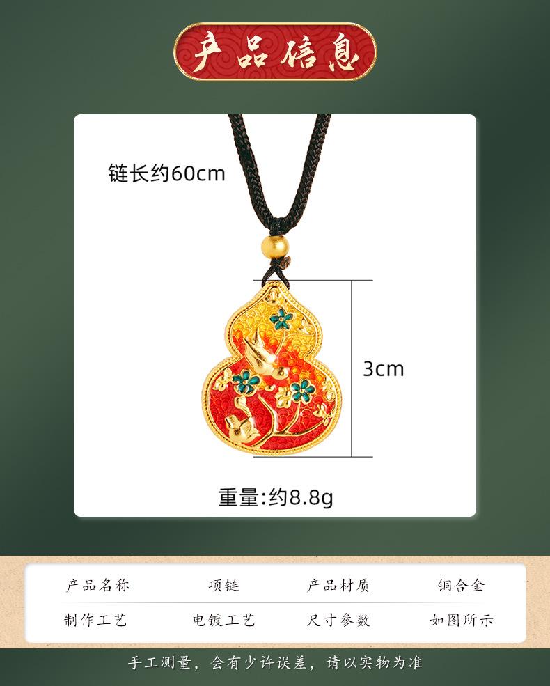 Collar de calabaza pintada a mano con arena dorada de Vietnam, con fragancia de flores en forma de pájaro y esmalte con incrustaciones, elegante colgante para mujer, venta directa de fábrica
