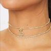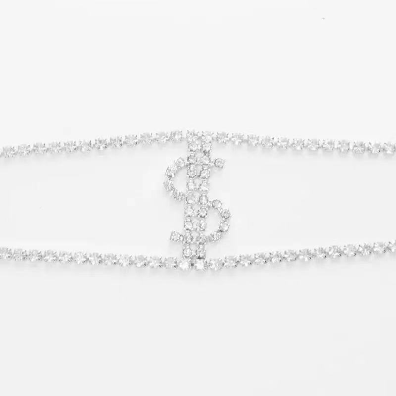 Collar con colgante de doble capa con símbolo de dólar y letras de diamantes de imitación, superbrillante, de comercio exterior europeo y americano, cadena de moda para damas con borde cruzado