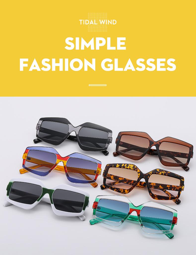 Nuevas gafas de sol poligonales de color combinado 2024 transfronterizas europeas y americanas ins de venta caliente gafas planas anti luz azul gafas de sol