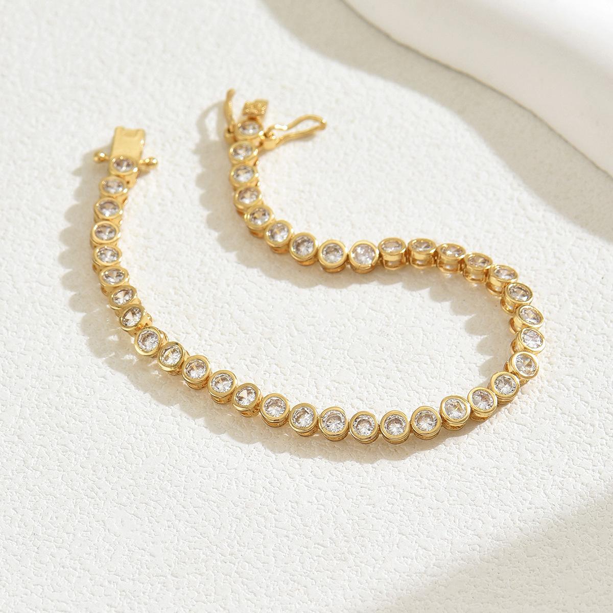 Pulsera Estilo Frío Ins Dulce Fresca para Mujer Nicho Incrustado Zircón Elemento Diamante Completo Pulsera Cobre Chapado Oro de 18k