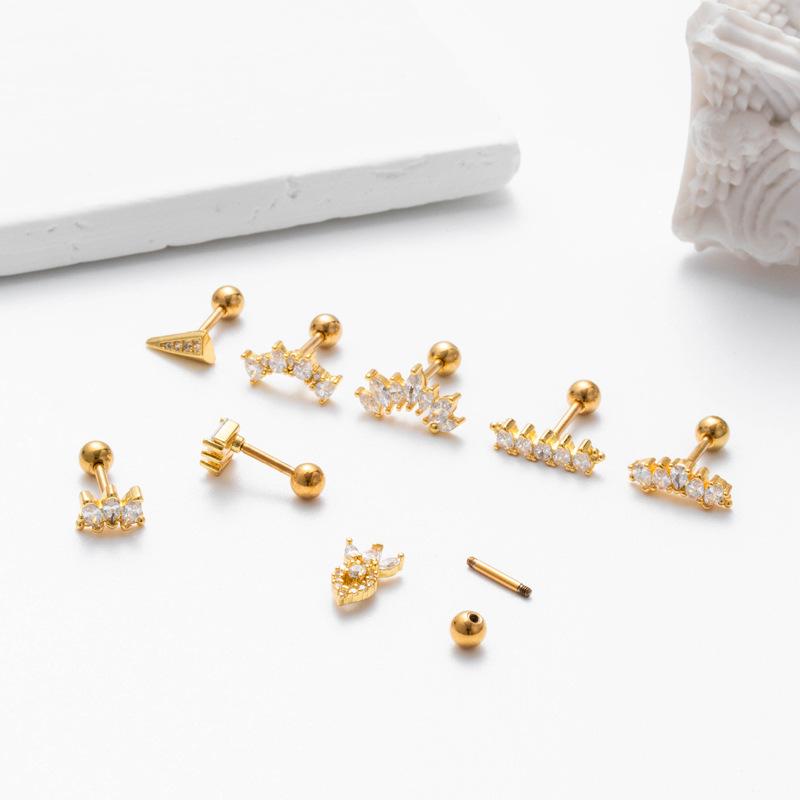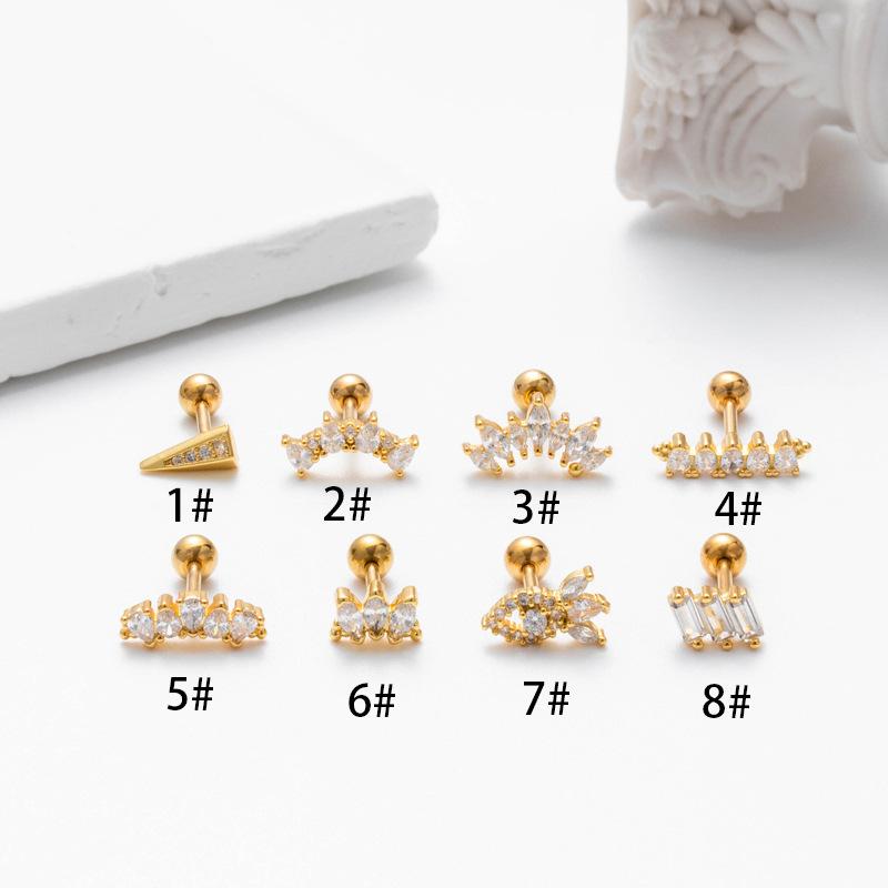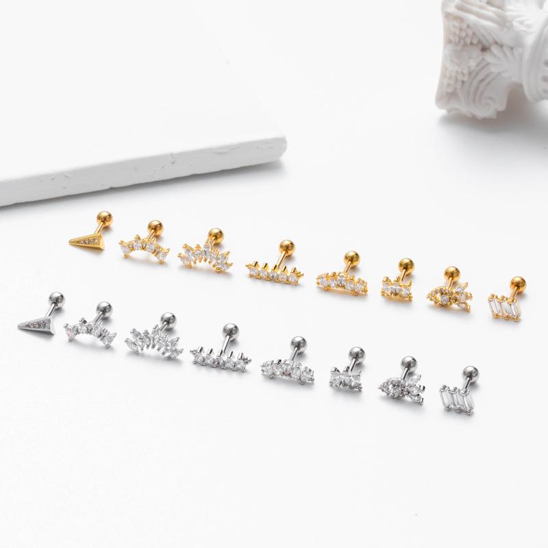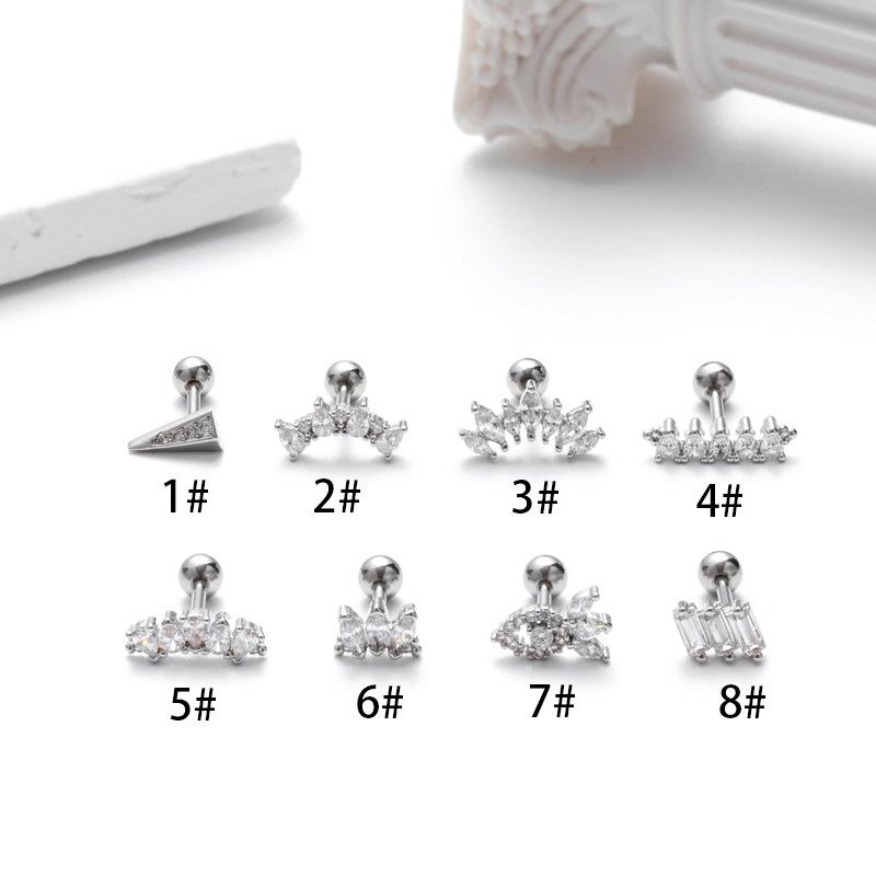 nombre del producto | Nuevos pendientes de acero inoxidable con forma de varilla gruesa para el hueso de la oreja, con forma de circón, con tornillos y bola giratoria, accesorios de comercio exterior de moda europea y americana. |