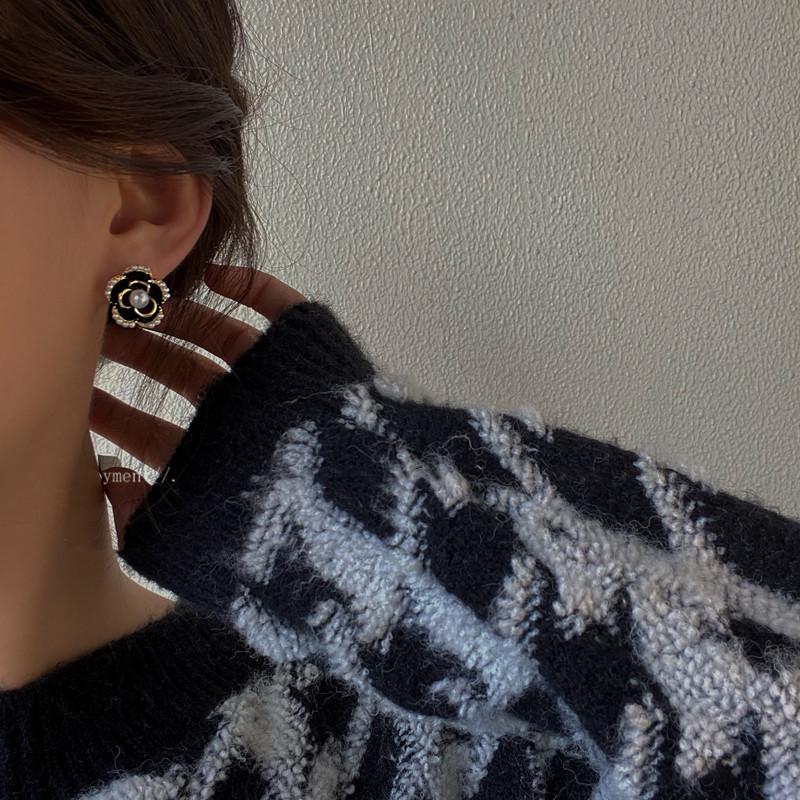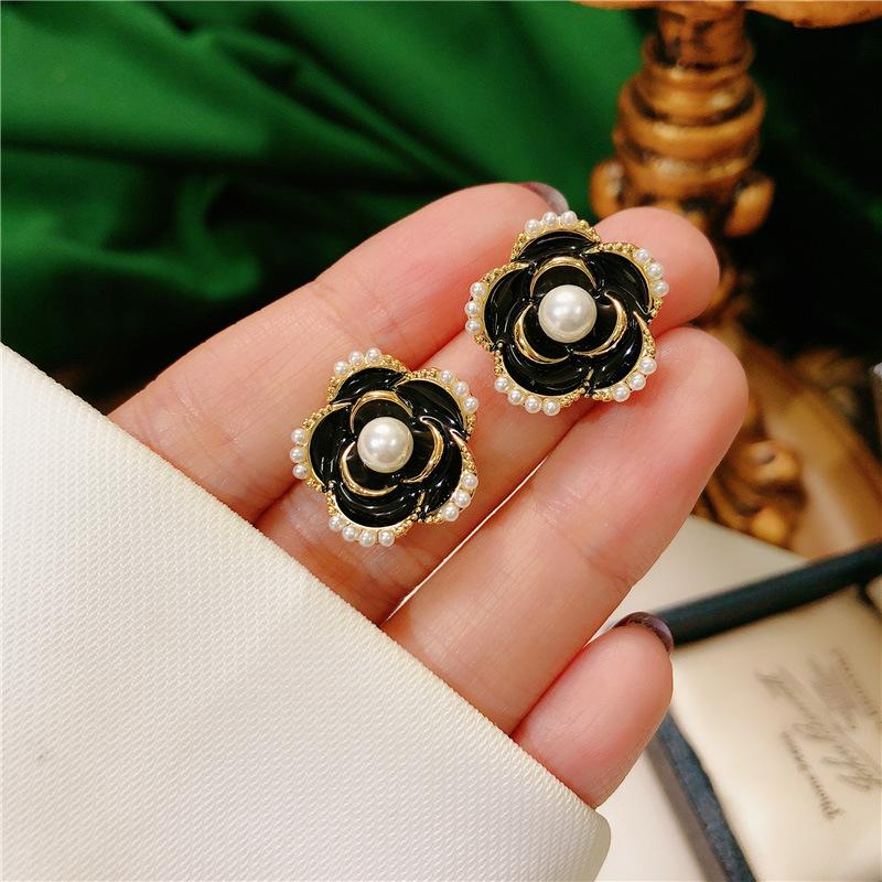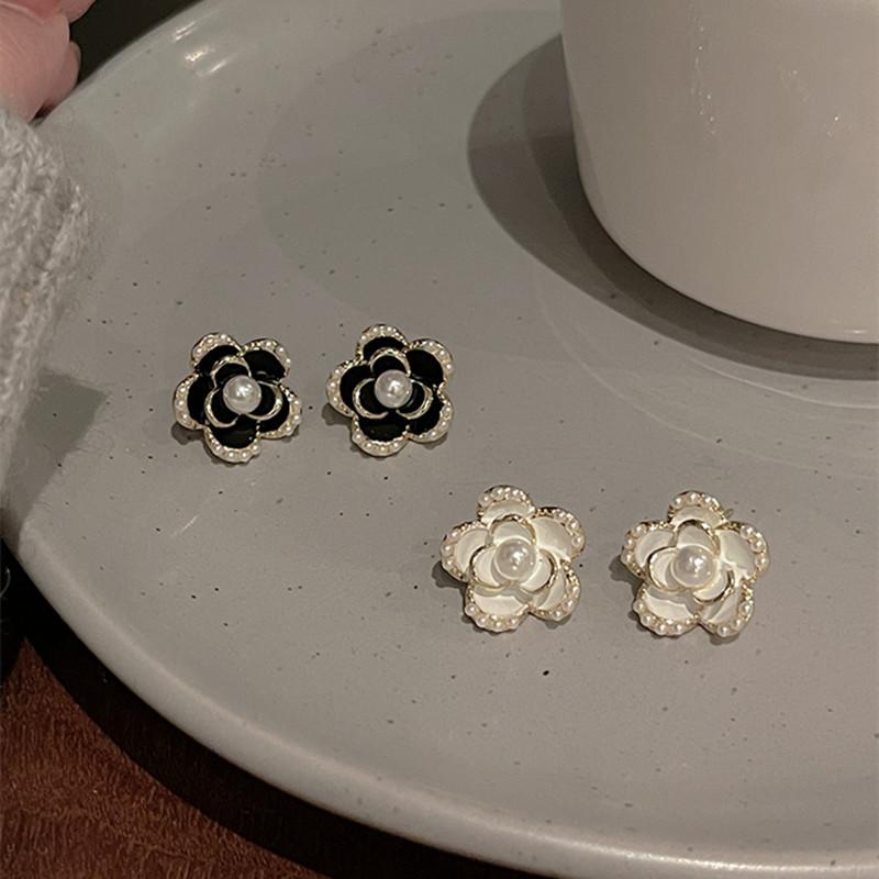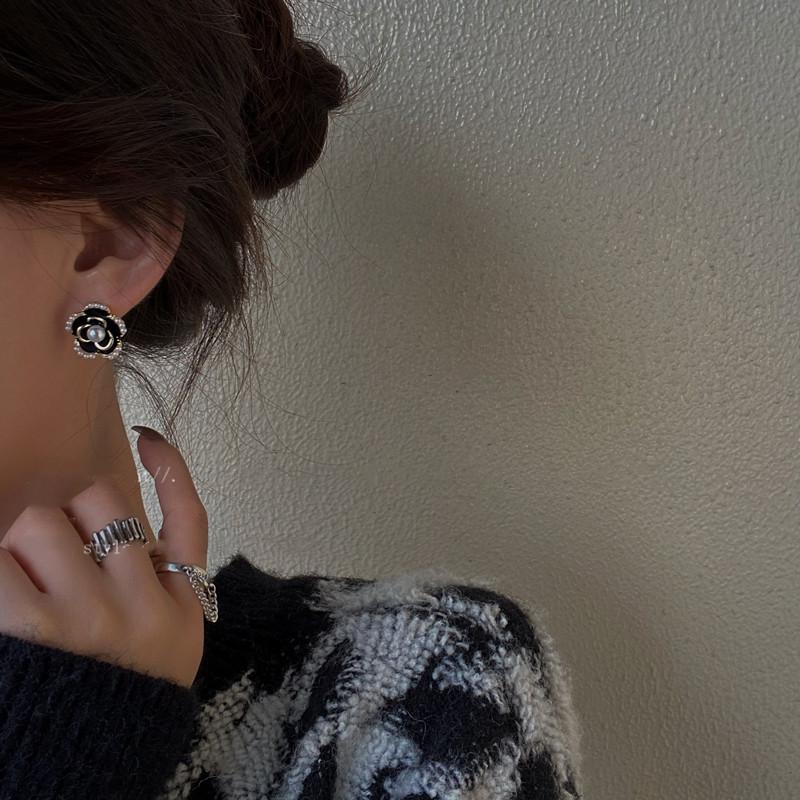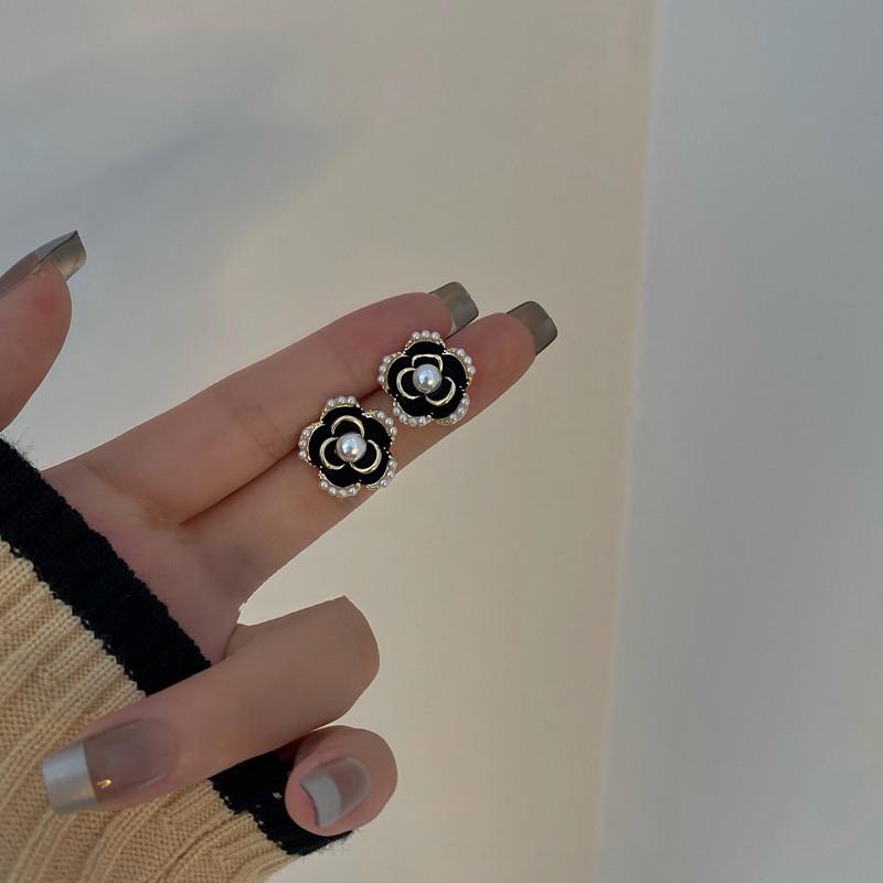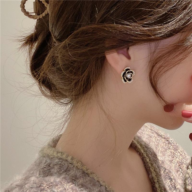 Pendientes de Camelia Francesa de Aguja de Plata S925 para Mujer Pendientes Coreanos Retro Elegantes de Celebridad de Internet Pendientes de Gama Alta Estilo Hong Kong