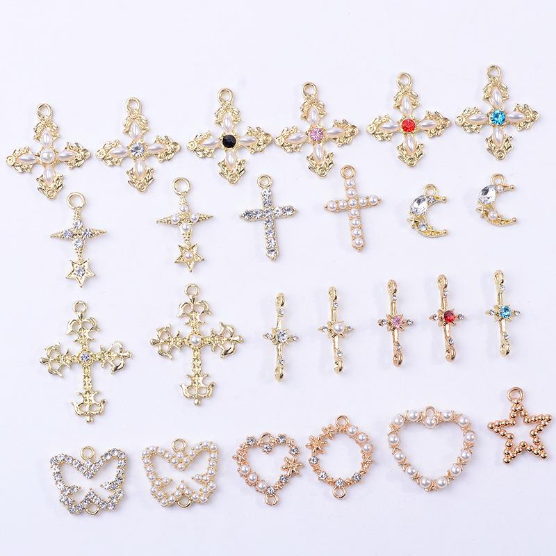 Pendientes DIY Material de los pendientes Dulce Chica Fresca Aleación Colgante Perla Diamantes de imitación Mariposa Luna Cruz Punto