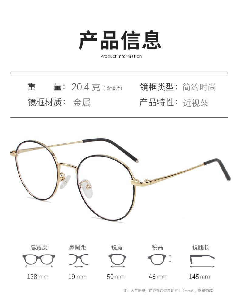 Compra Gafas de sol con montura metálica redonda de estilo coreano, estilo universitario, ligeras, con protección contra la luz azul, para hombres y mujeres, aptas para miopía. al por mayor en Joom.pro