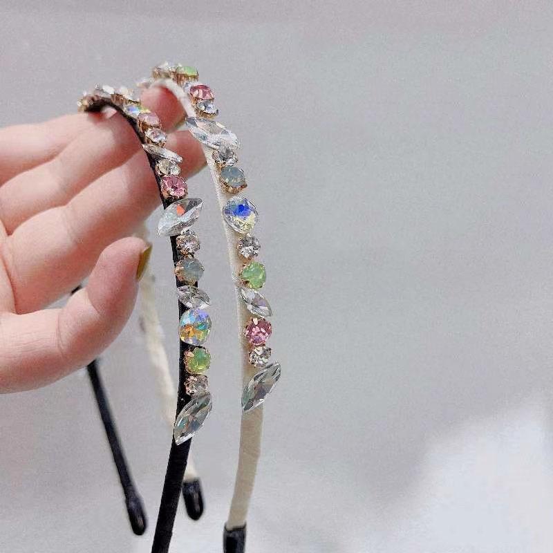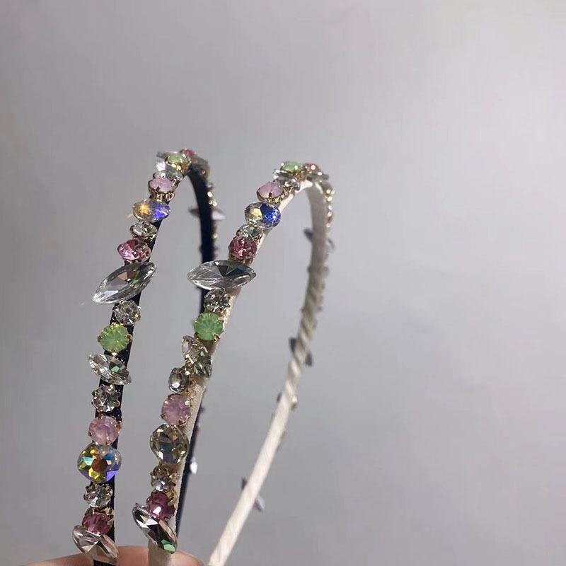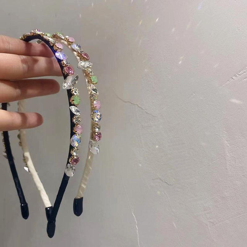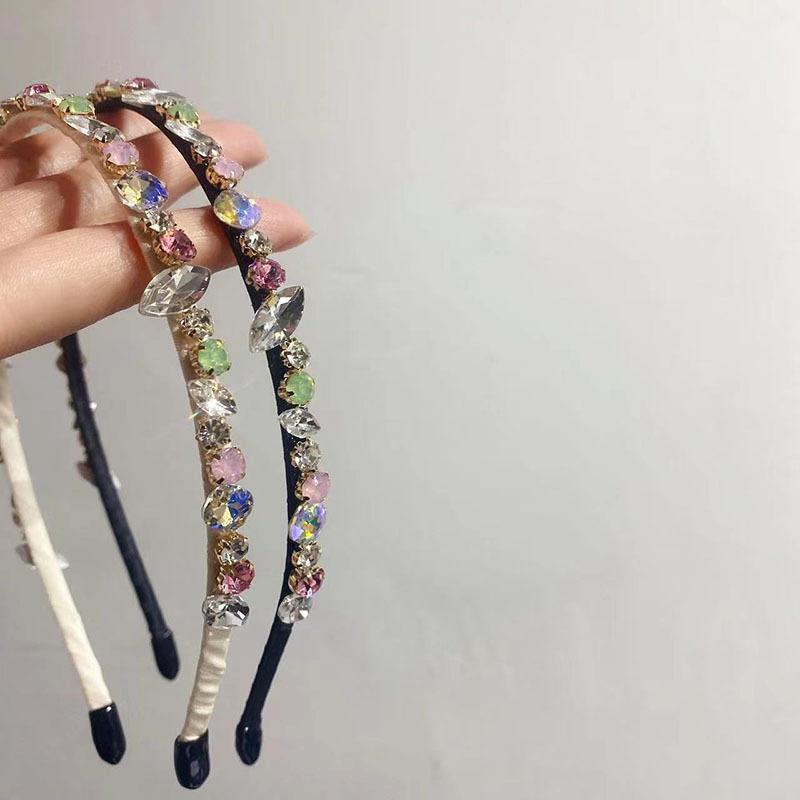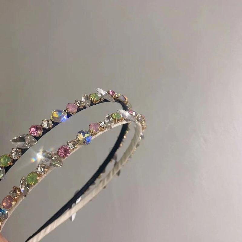 Diadema Coreana Resistente con Pedrería Colorida para Mujer, Diadema de Verano de Borde Delgado para Lavar la Cara, Horquilla Accesorio para el Cabello con Pedrería Colorida