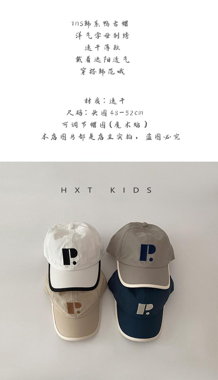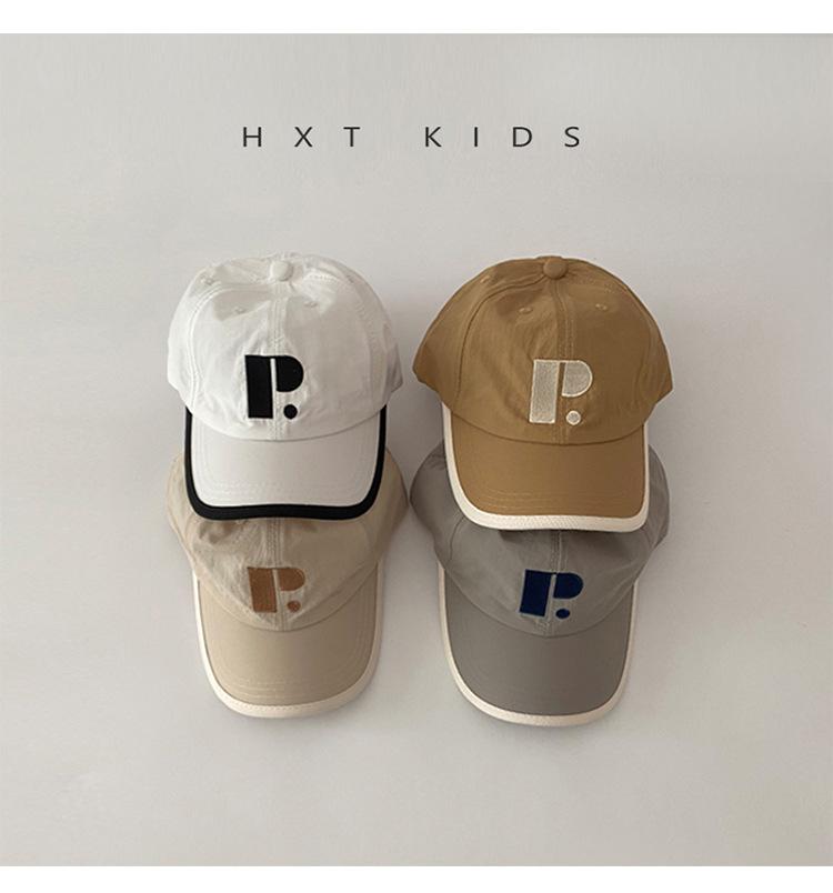 Gorra de verano para niños, fina, de secado rápido, con letras P, estilo extranjero, ala a juego, gorra de béisbol para bebé, tendencia