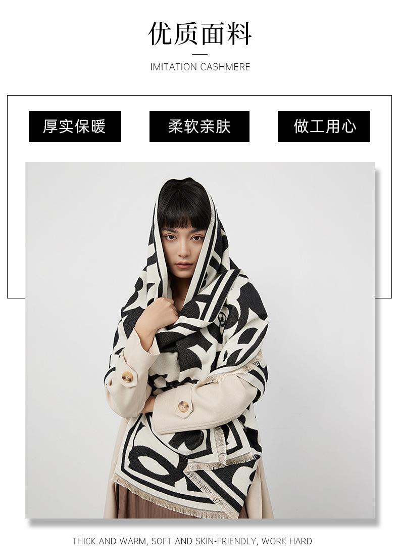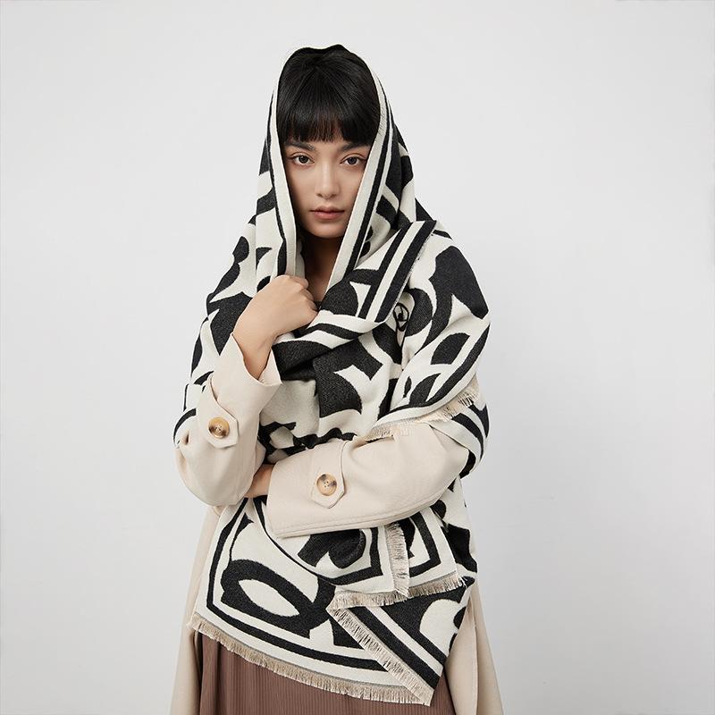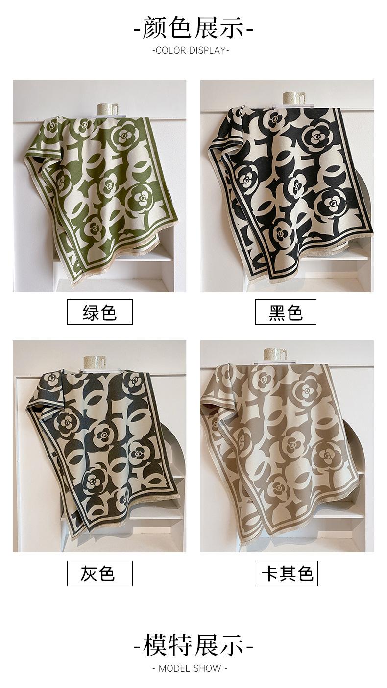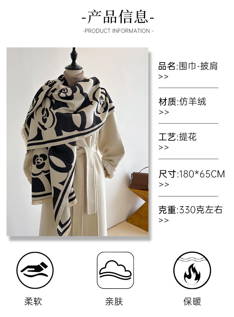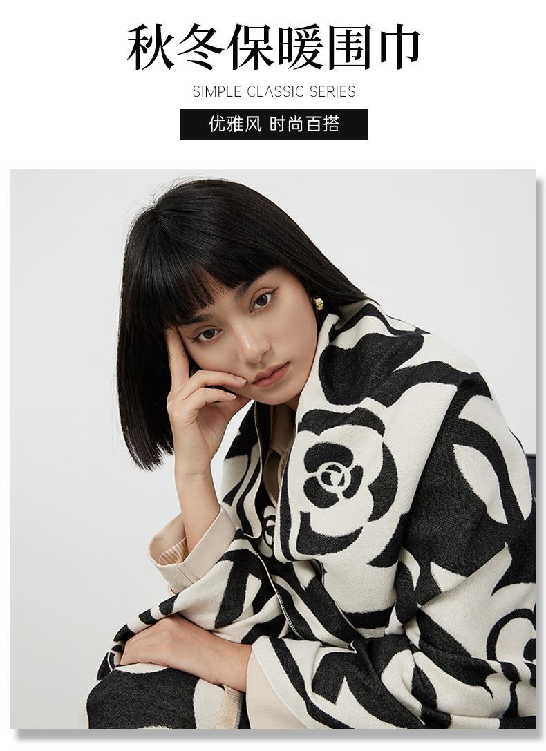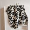 Bufanda elegante tipo cachemira en blanco y negro con camelia, bufanda cuadrada grande para mujer, chal exterior famoso de Europa y América, bufanda cálida de moda