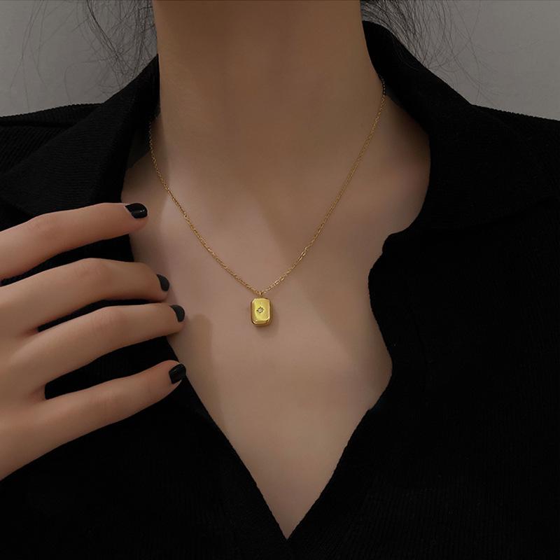 Collar Francés de Alta Gama Cuadrado Estrella de Ocho Puntas con Colgante en Forma de Gota de Diamante Exquisita Cadena para Clavícula Ins Oro Acero Titanio