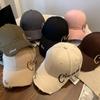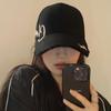 Gorra de béisbol negra con letras bordadas para mujer, de verano, con ala ancha y parte superior rígida, con cabeza grande y cara pequeña, edición coreana