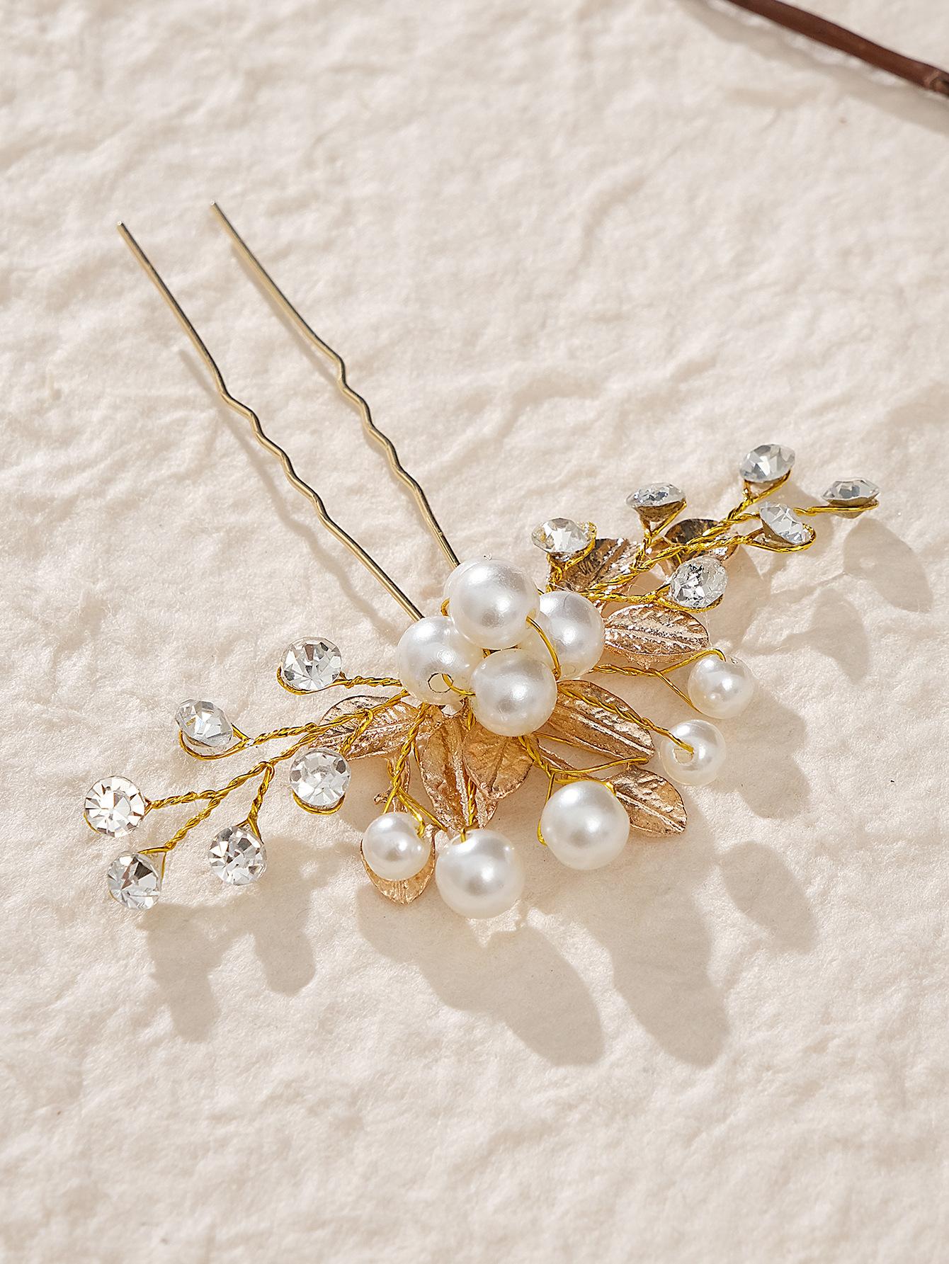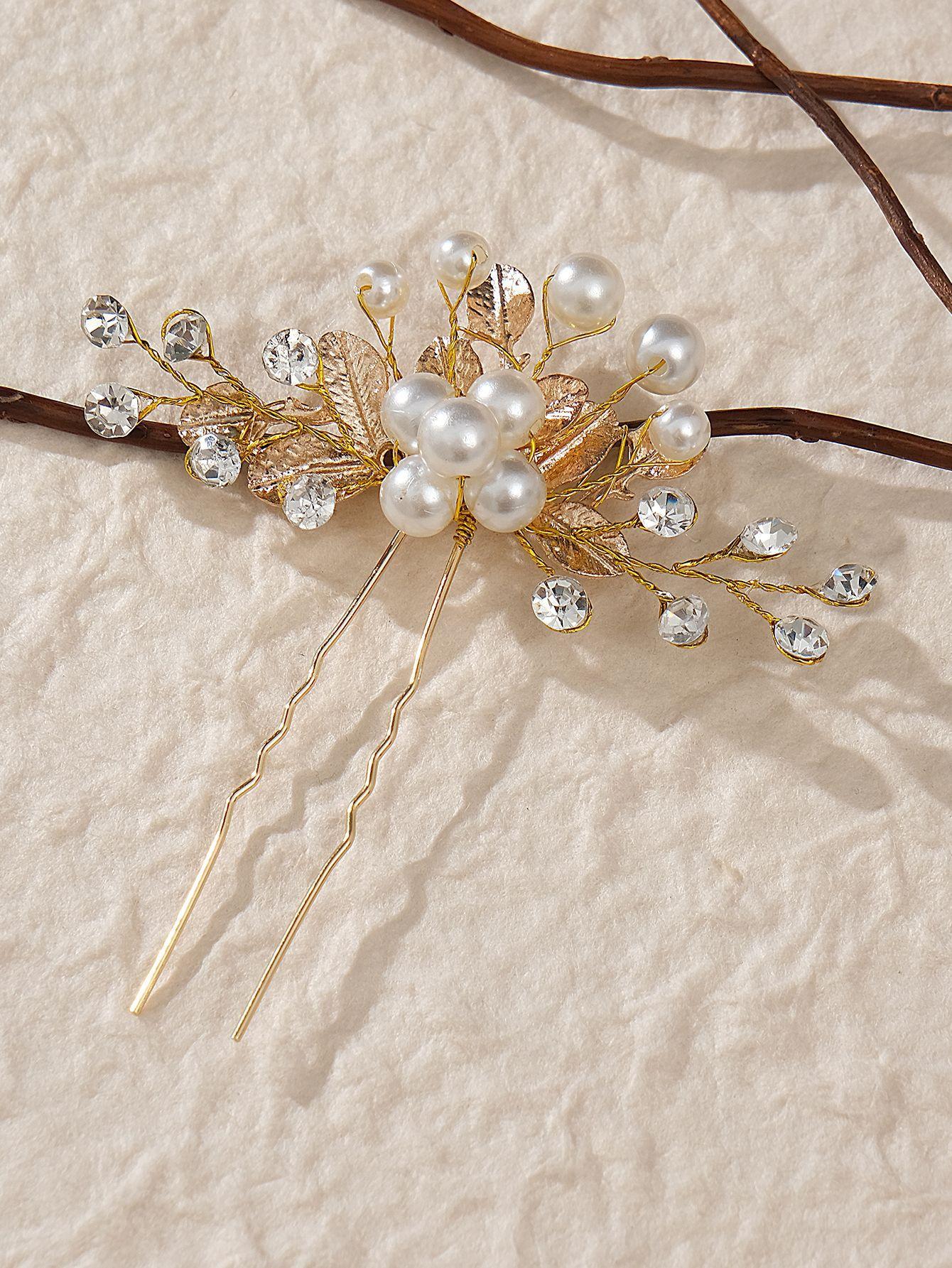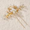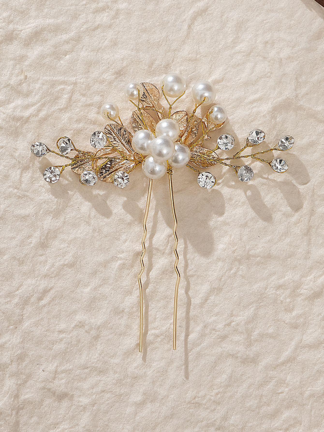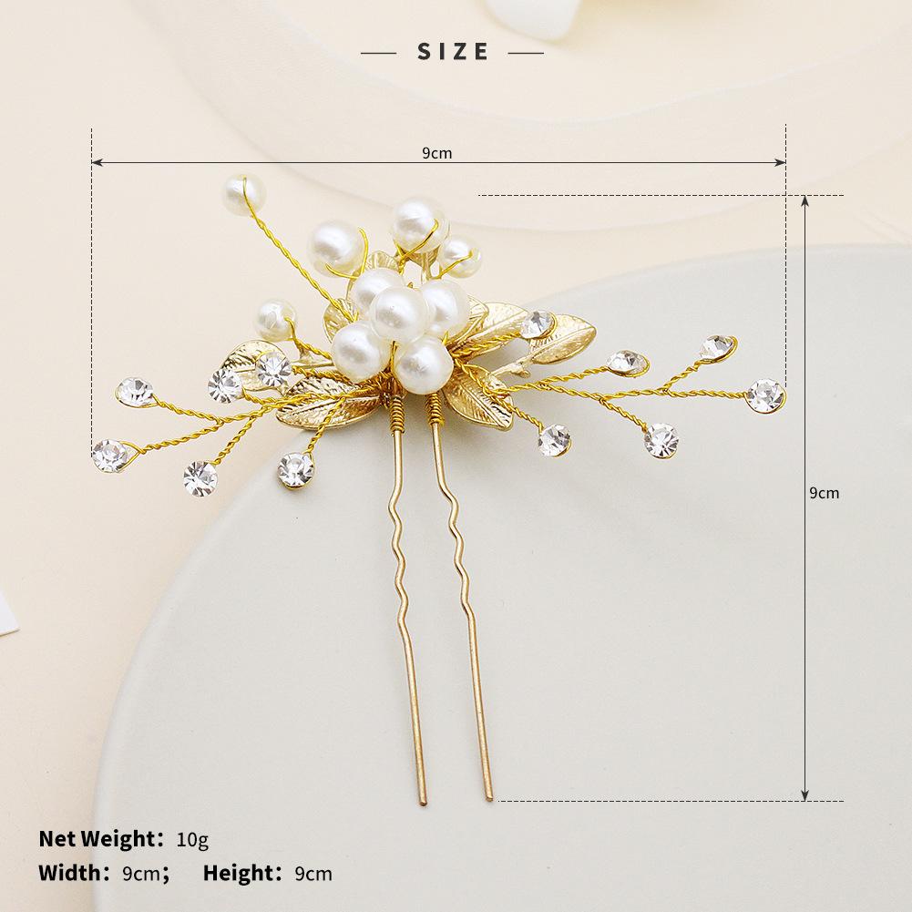 Nueva Horquilla en Forma de U Hecha a Mano Hoja Dorada Perla Pedrería Pin Horquilla Tocado Nupcial Europeo y Americano Accesorios para Boda