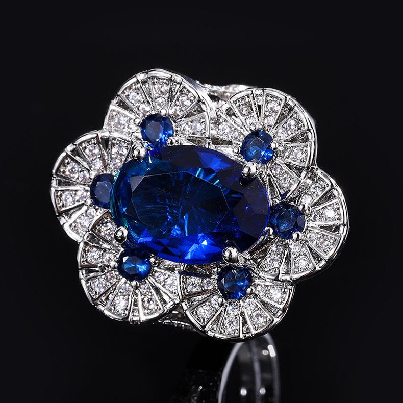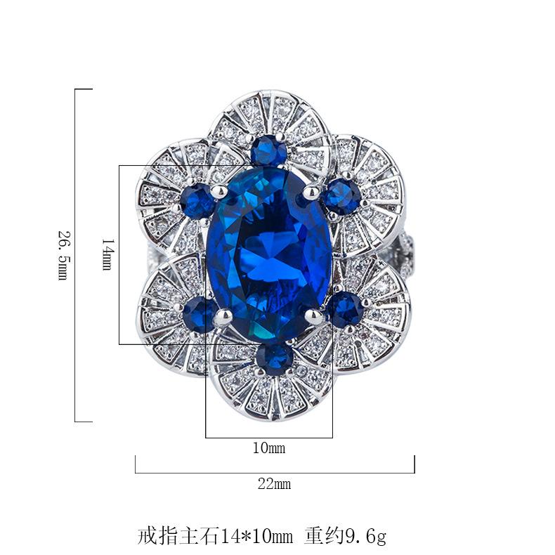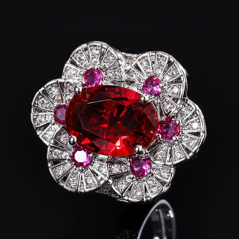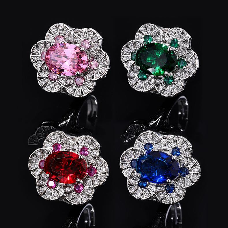 Anillo de zafiro real retro europeo y americano, anillo de esmeralda con flor femenina, anillo de corindón rojo de gran oferta de moda europea y americana