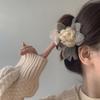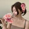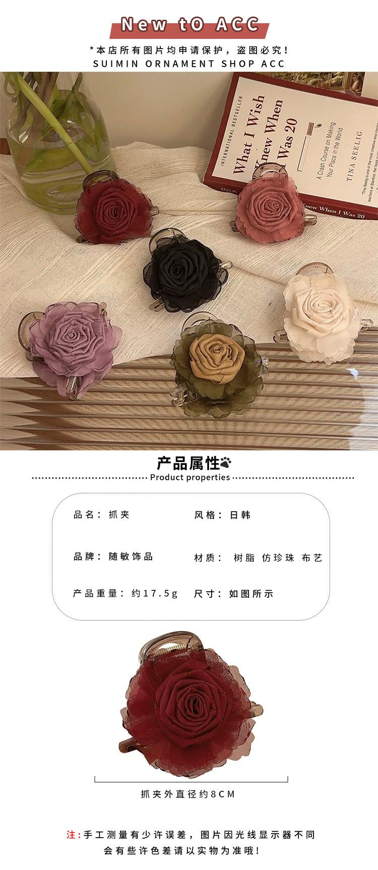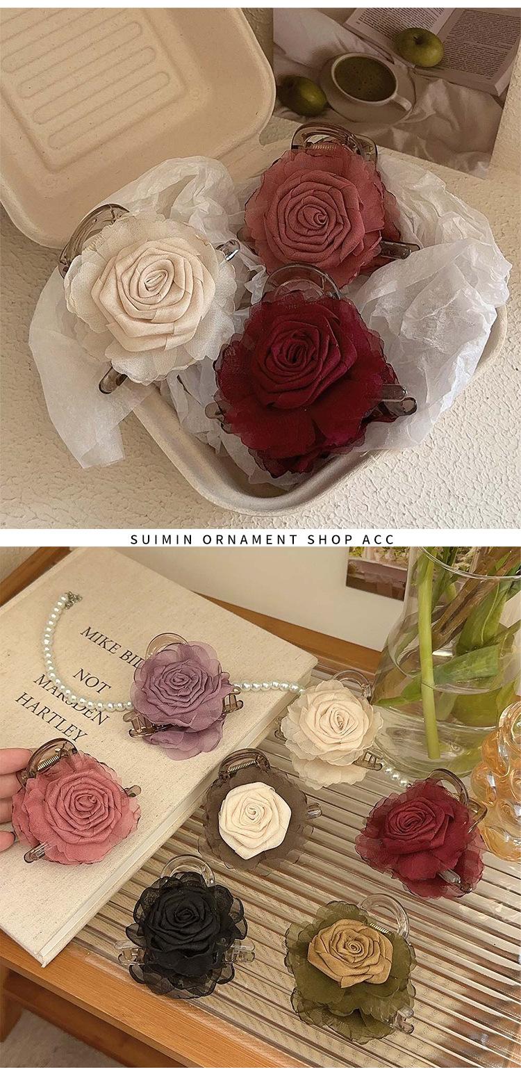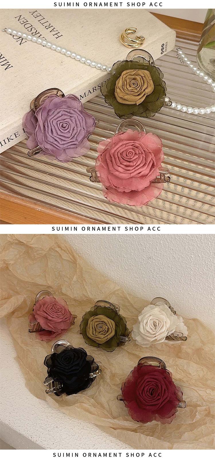 Clip de Flor Rosa Retro Sentido Chino de Alta Gama Horquilla de Flor Artificial Clip de Tiburón con Sentido del Diseño Accesorios para el Cabello Nicho