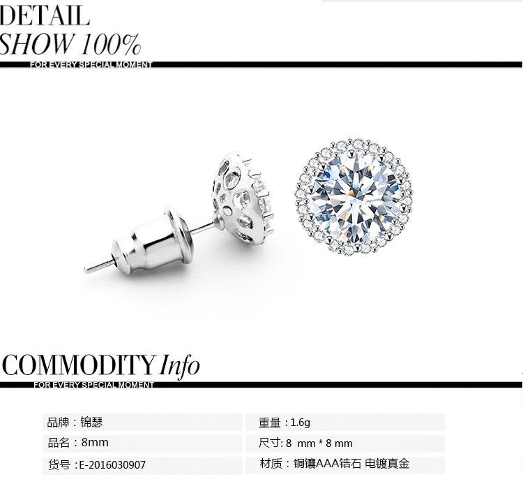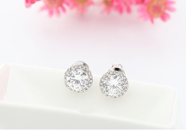 Pendientes pequeños Jinse, venta al por mayor, con incrustaciones de cobre, pendientes de cristal de circonita transparente, joyería de moda coreana sencilla y redonda para mujer
