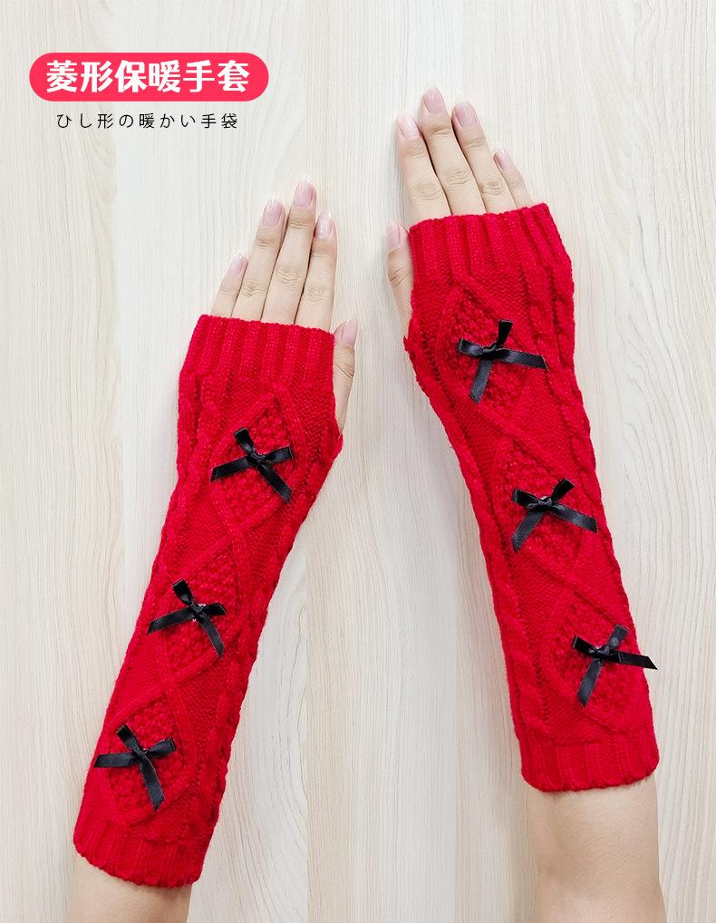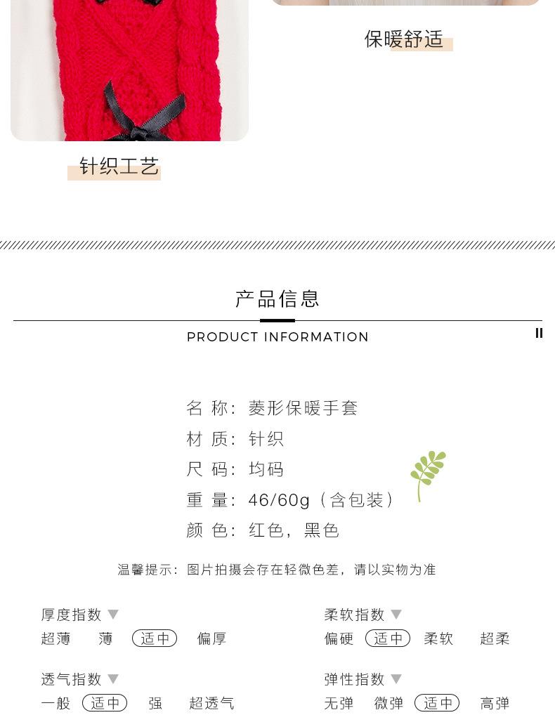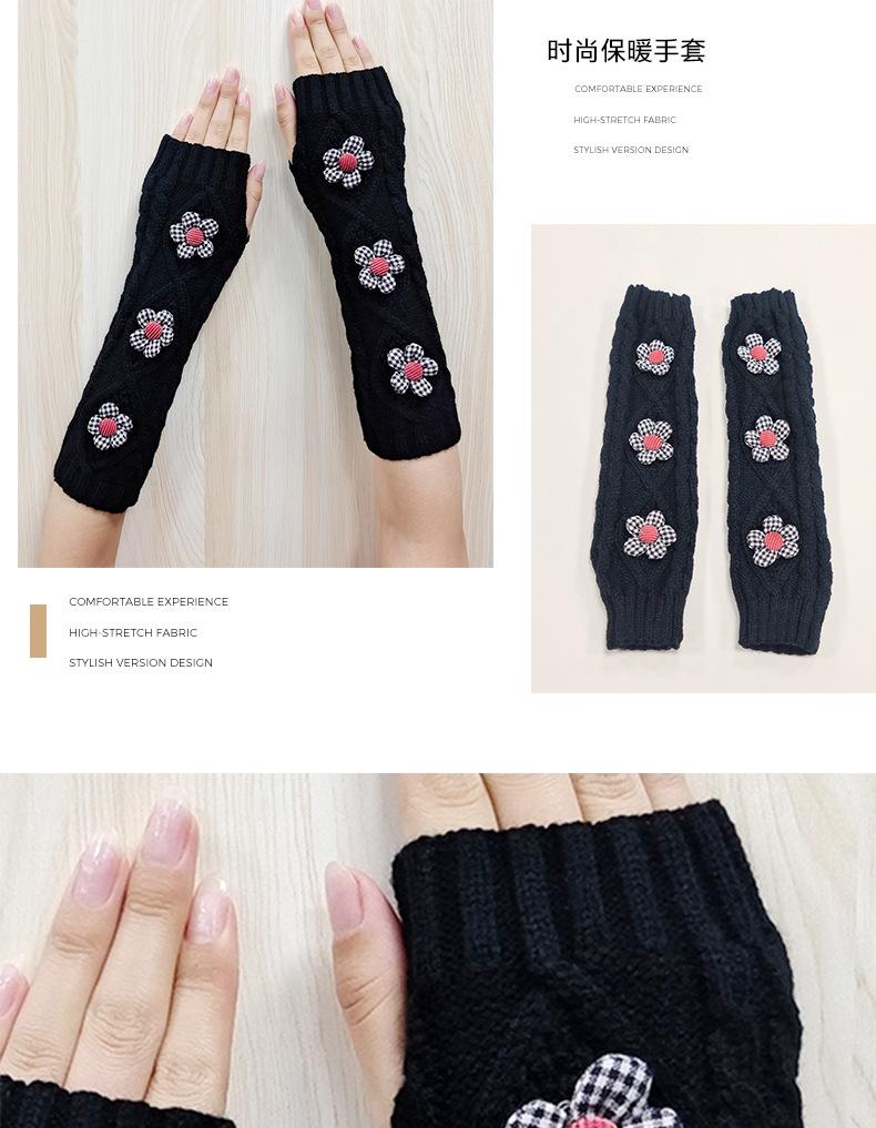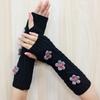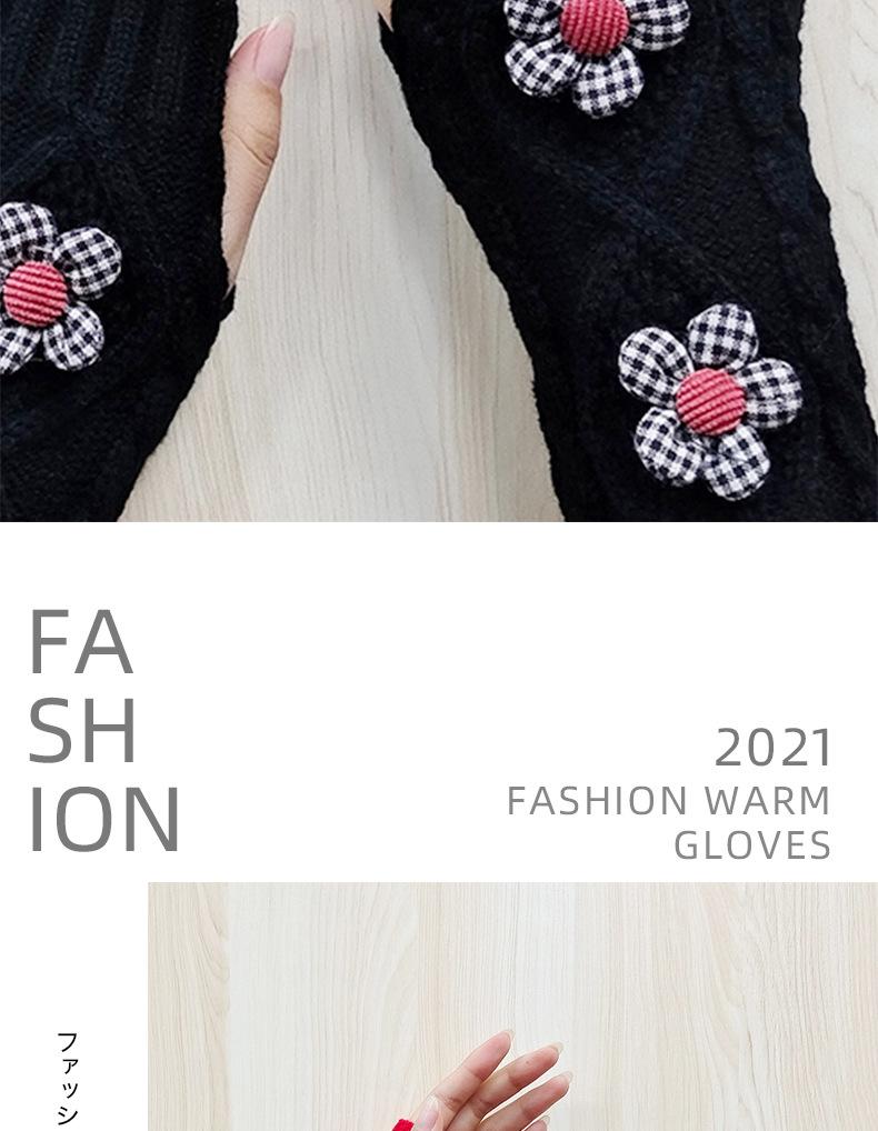 Nuevas Mangas Tejidas de Lana Cálidas en Forma de Diamante de Otoño e Invierno con Jacquard Floral Negro de Medio Dedo Lindo