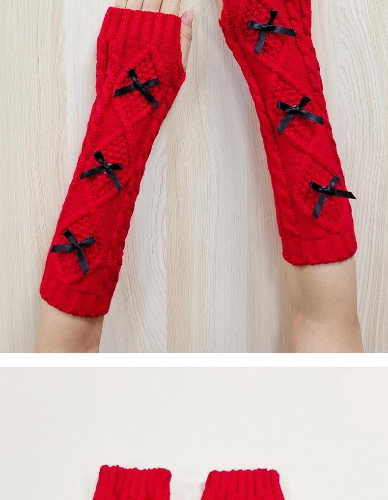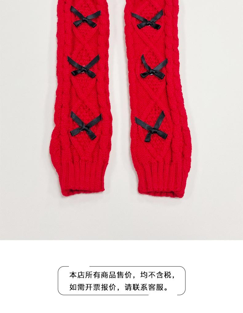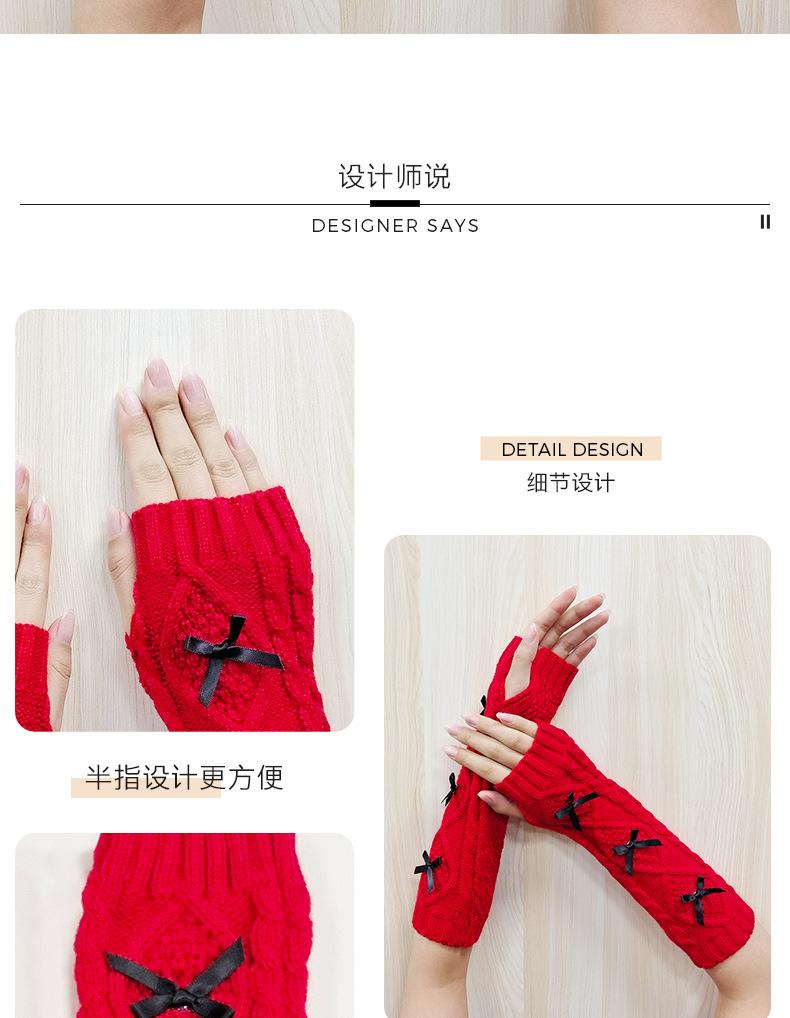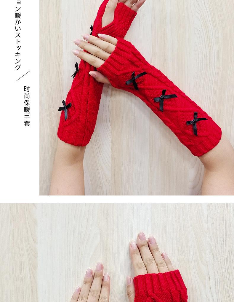 Nuevas Mangas Tejidas de Lana Cálidas en Forma de Diamante de Otoño e Invierno con Jacquard Floral Negro de Medio Dedo Lindo