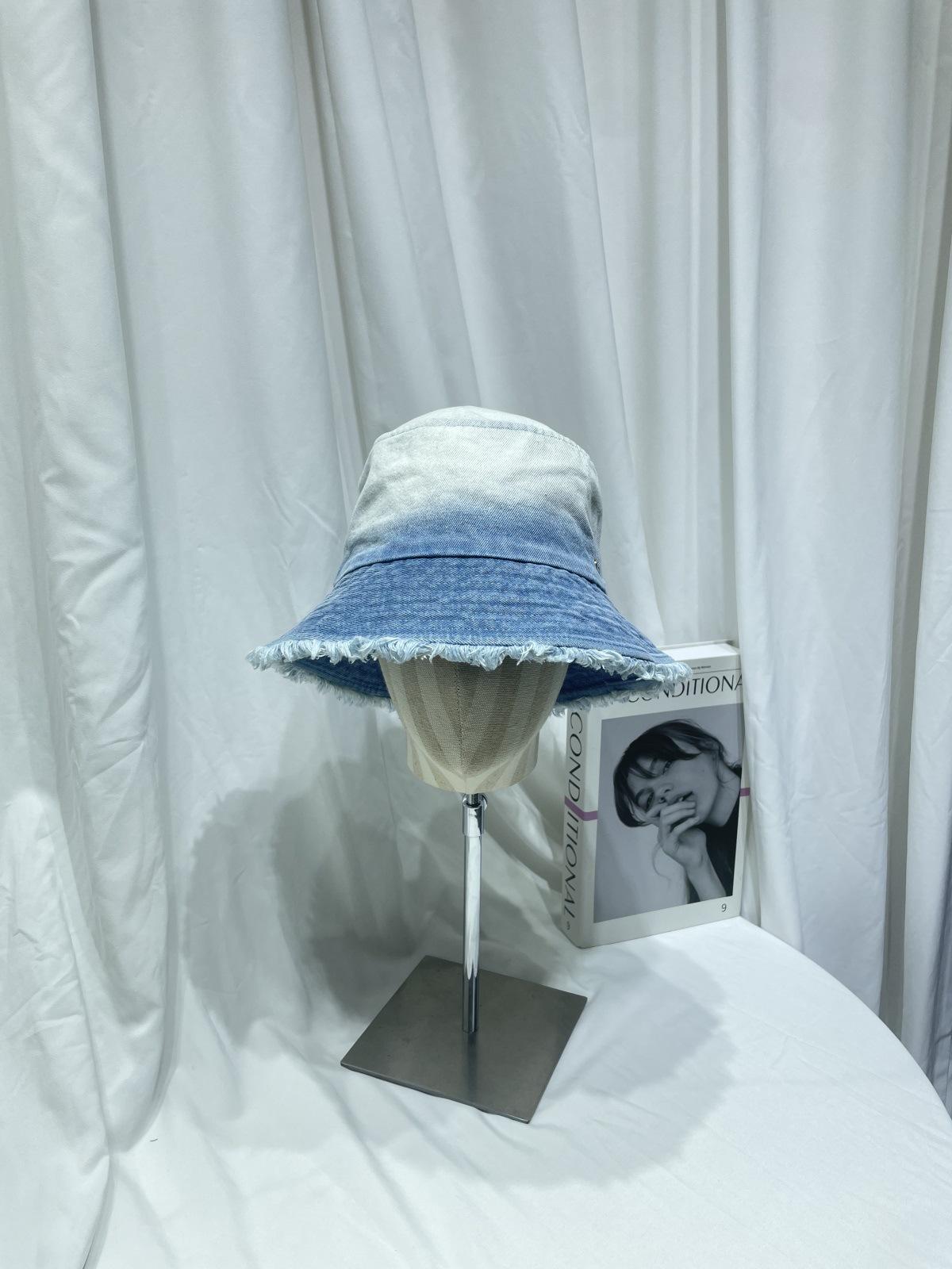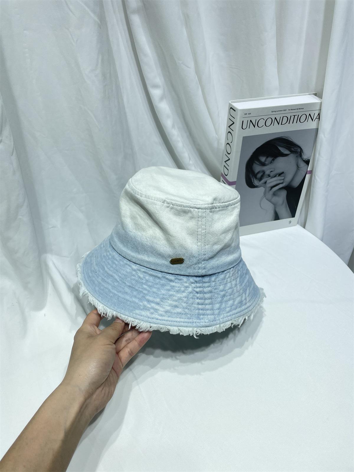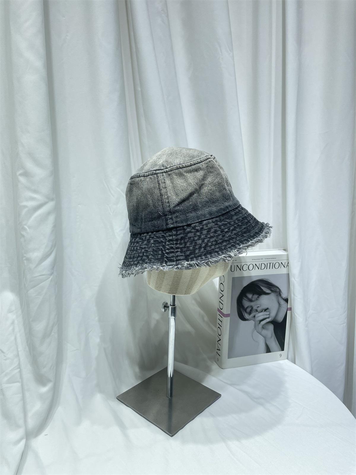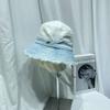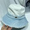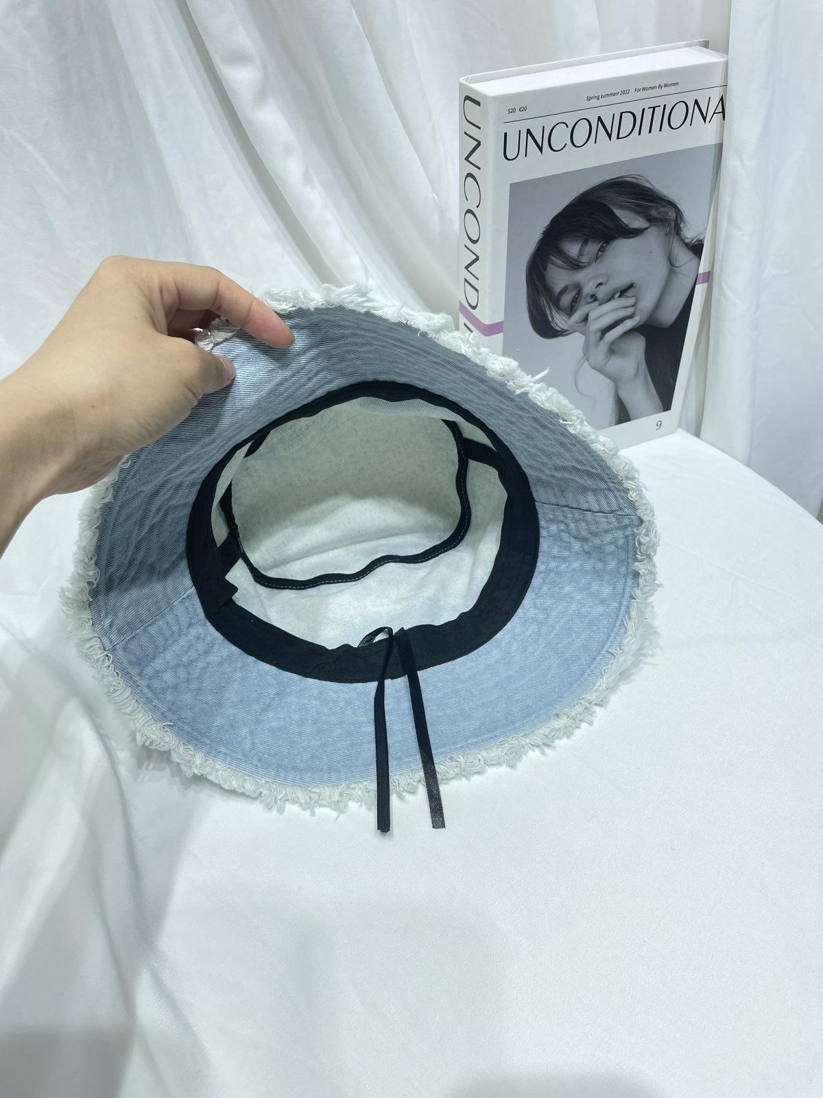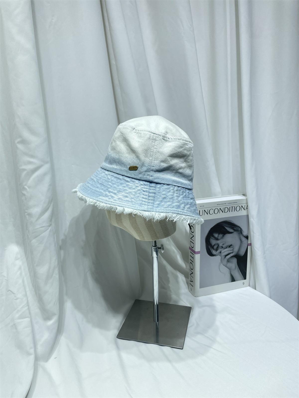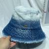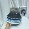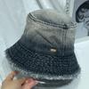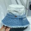 Sombrero de pescador de mezclilla lavada con volantes y degradado simple de estilo japonés, para hombre y mujer, informal, combinable con todo, con pequeño sombrero tipo lavabo, protector solar y parasol.