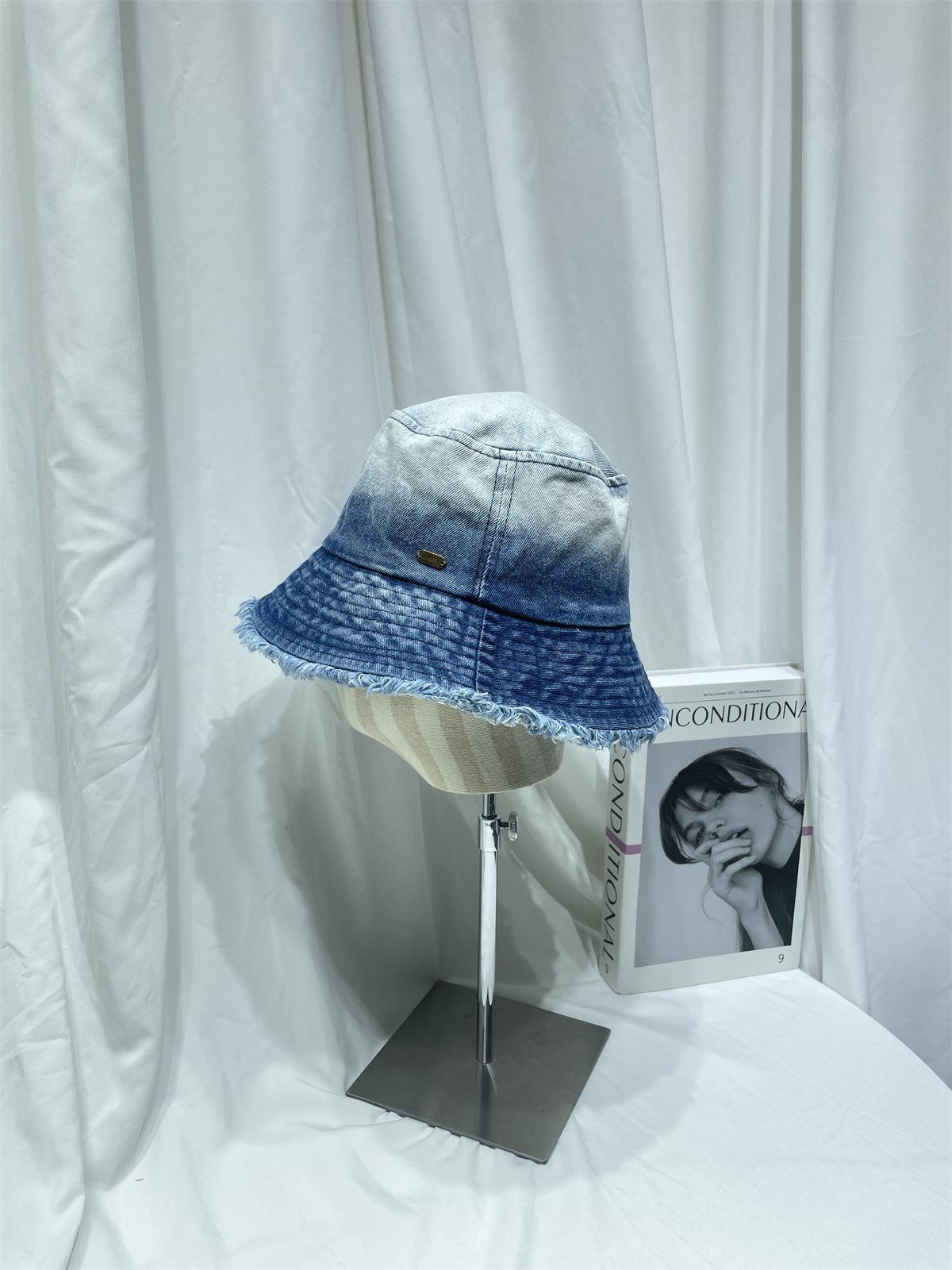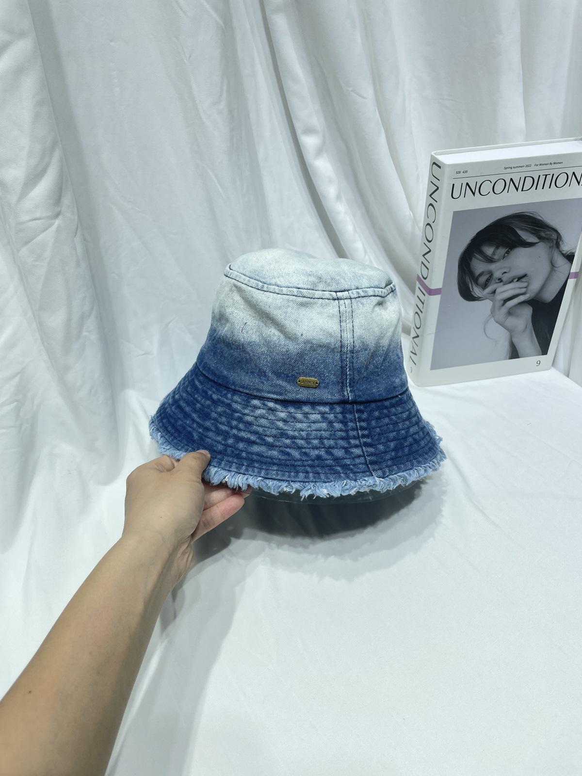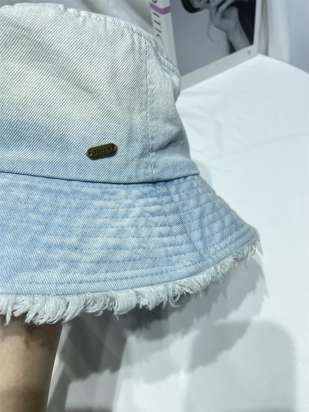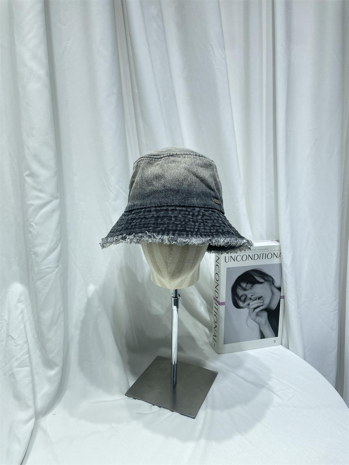 Sombrero de pescador de mezclilla lavada con volantes y degradado simple de estilo japonés, para hombre y mujer, informal, combinable con todo, con pequeño sombrero tipo lavabo, protector solar y parasol.