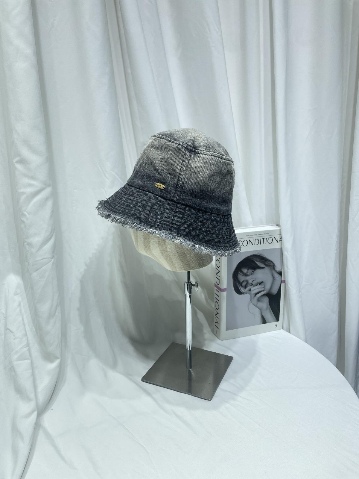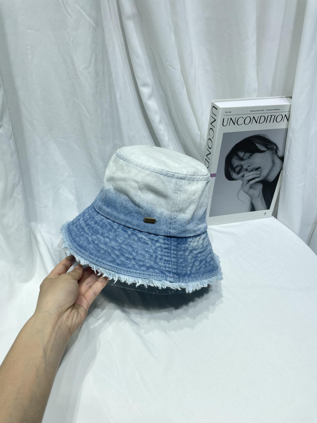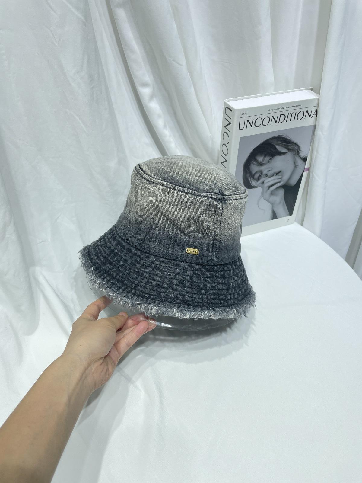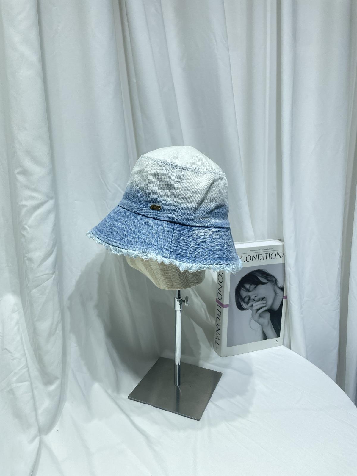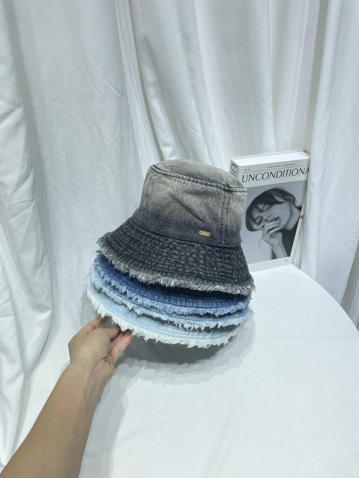 Sombrero de pescador de mezclilla lavada con volantes y degradado simple de estilo japonés, para hombre y mujer, informal, combinable con todo, con pequeño sombrero tipo lavabo, protector solar y parasol.