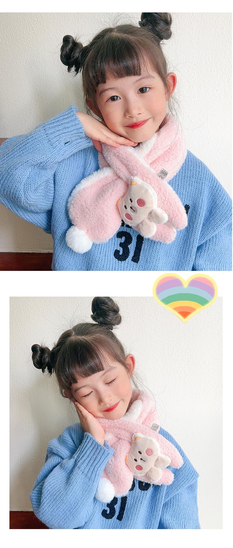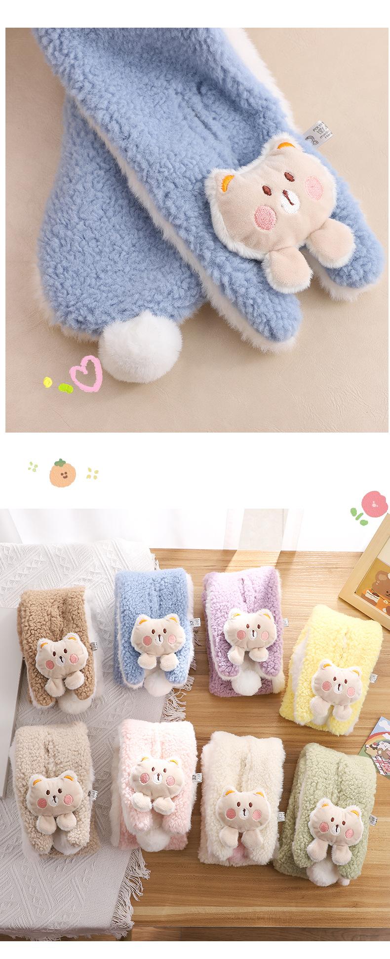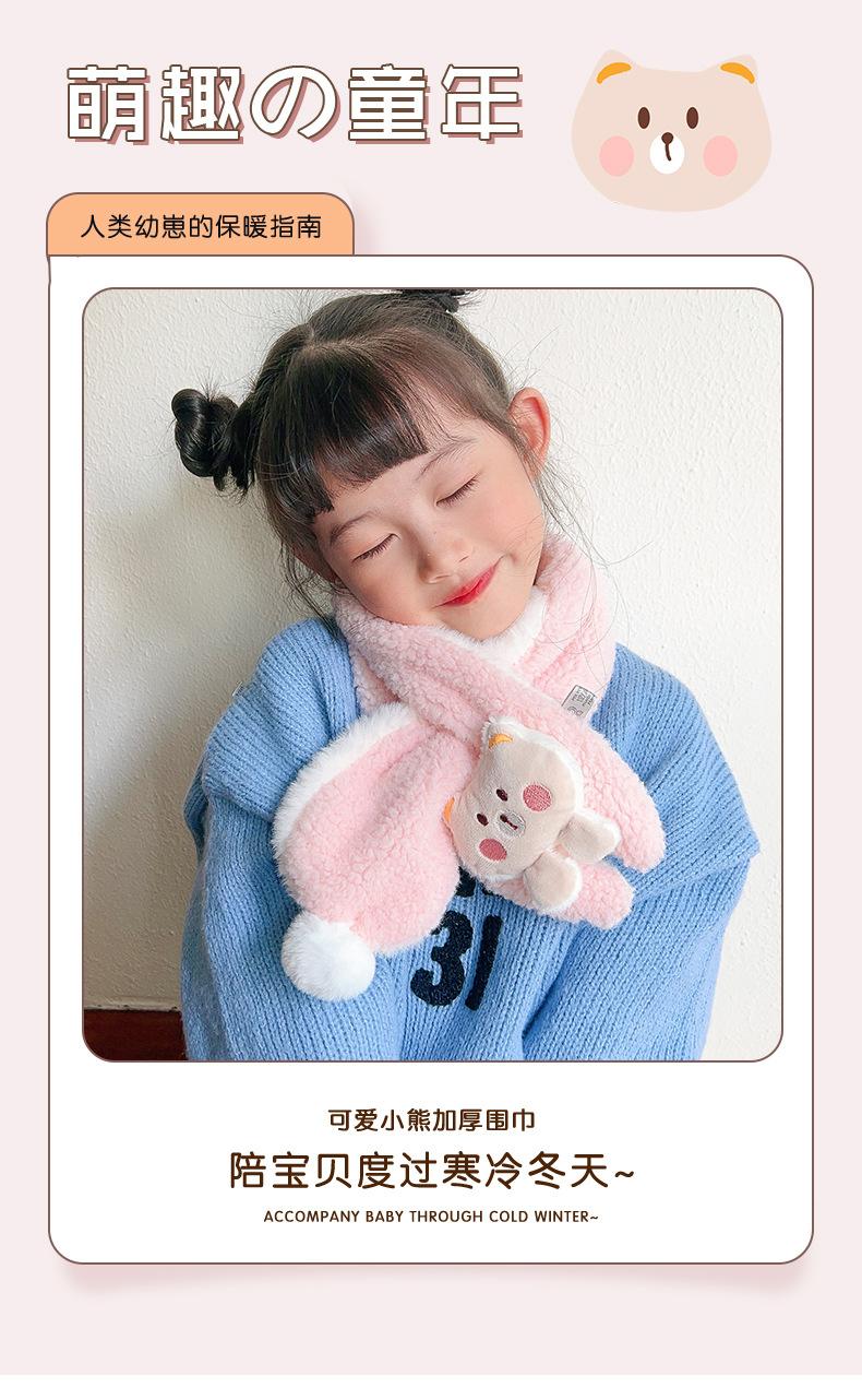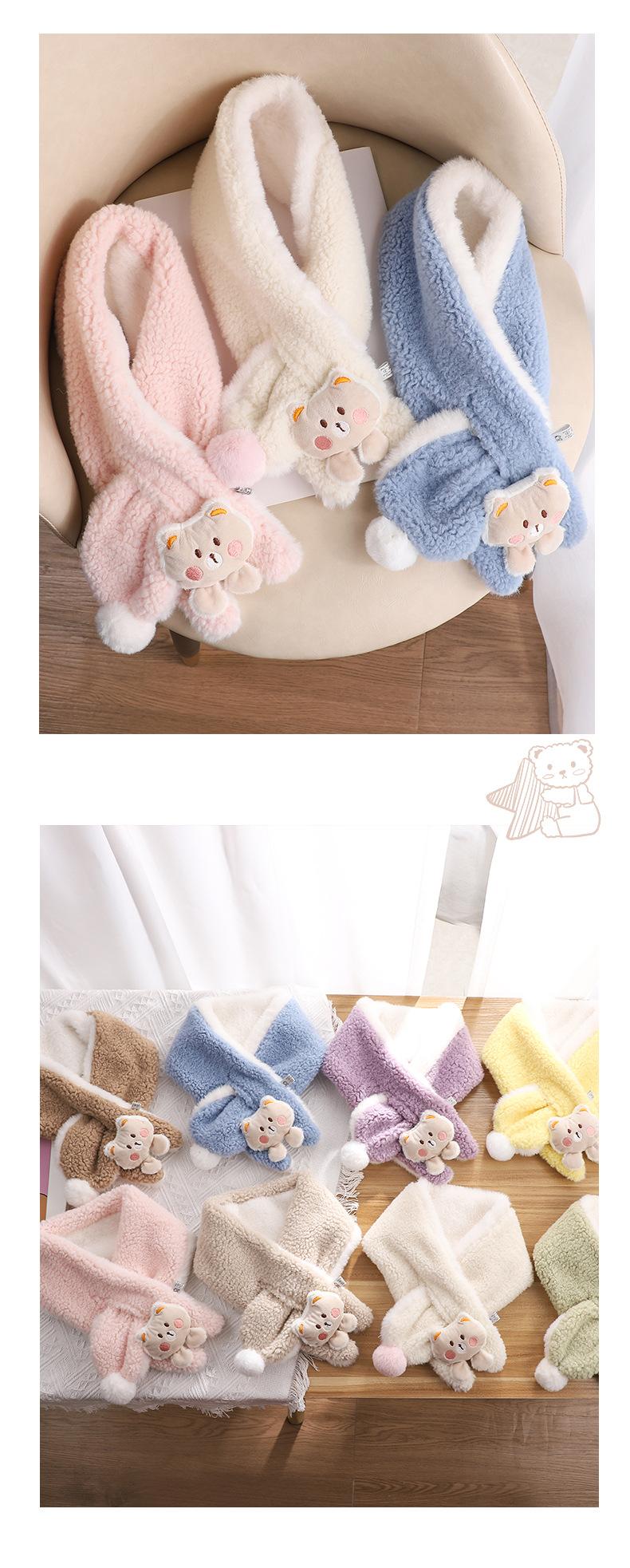 Bufanda de felpa cálida y transpirable a prueba de frío para otoño e invierno, nueva bufanda de punto con diseño de oso ruborizado de dibujos animados para niños, protección para el cuello cruzada, a prueba de viento