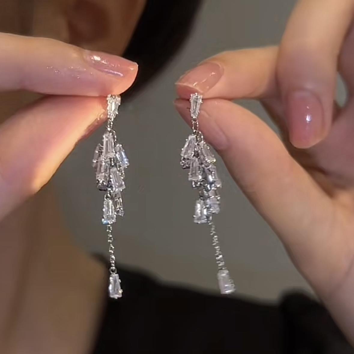 Pendientes de borla de cristal de plata S925 con aguja de plata para mujer, diseño de nicho, accesorios de lujo ligeros de alta gama, pendientes elegantes y modernos.