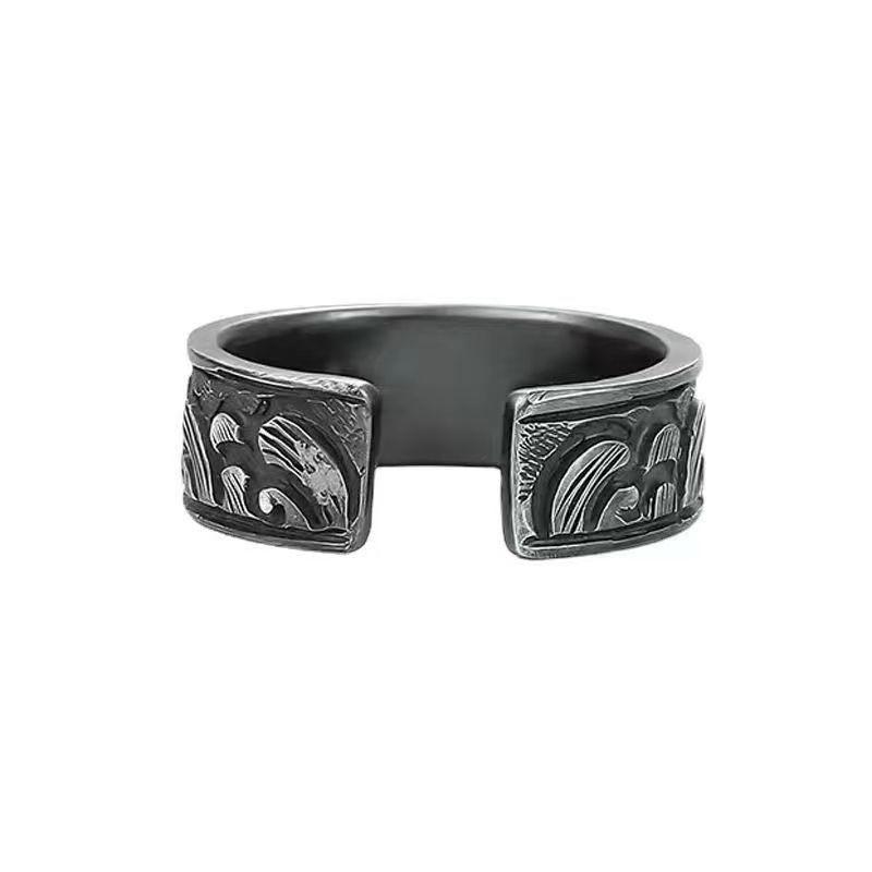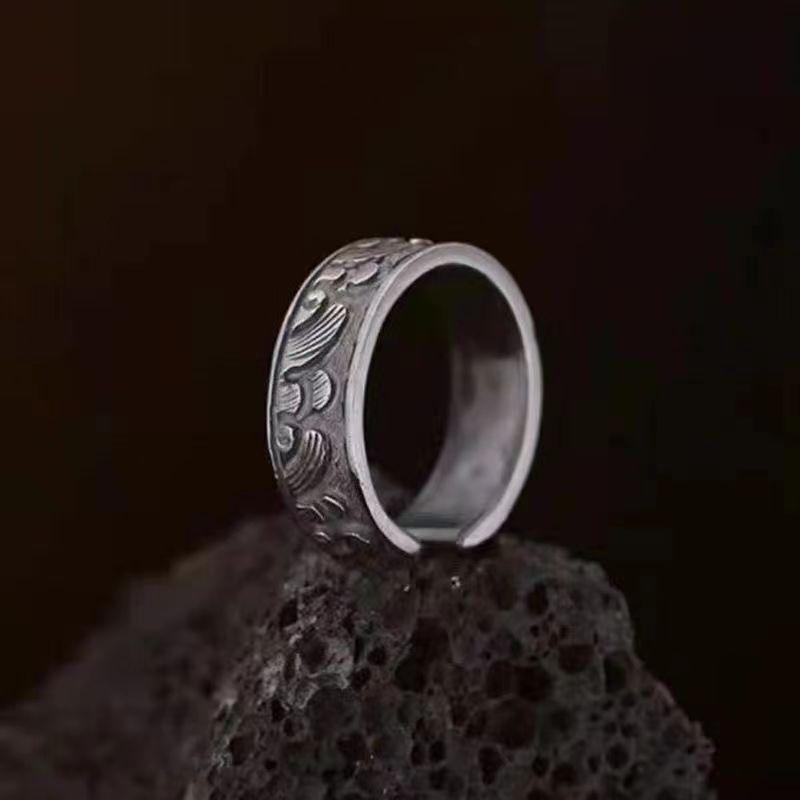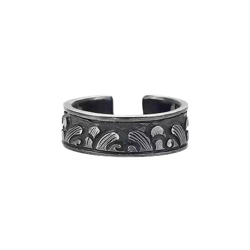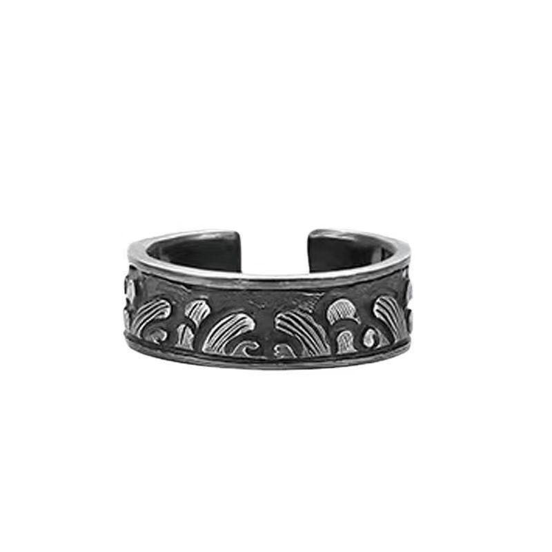 Anillo tailandés de plata con efecto de erosión marina antiguo para hombre
