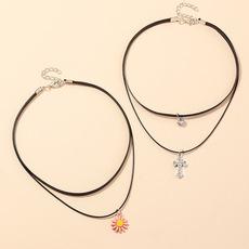 NZ1740 Joyería transfronteriza europea y americana doble capa cadena clavícula moda Harajuku collar cruz margarita