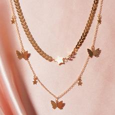NZ1601 Joyería transfronteriza europea y americana de gran venta, temperamento, moda, collar de escamas de pescado, collar colgante de estrella de cinco puntas y mariposa