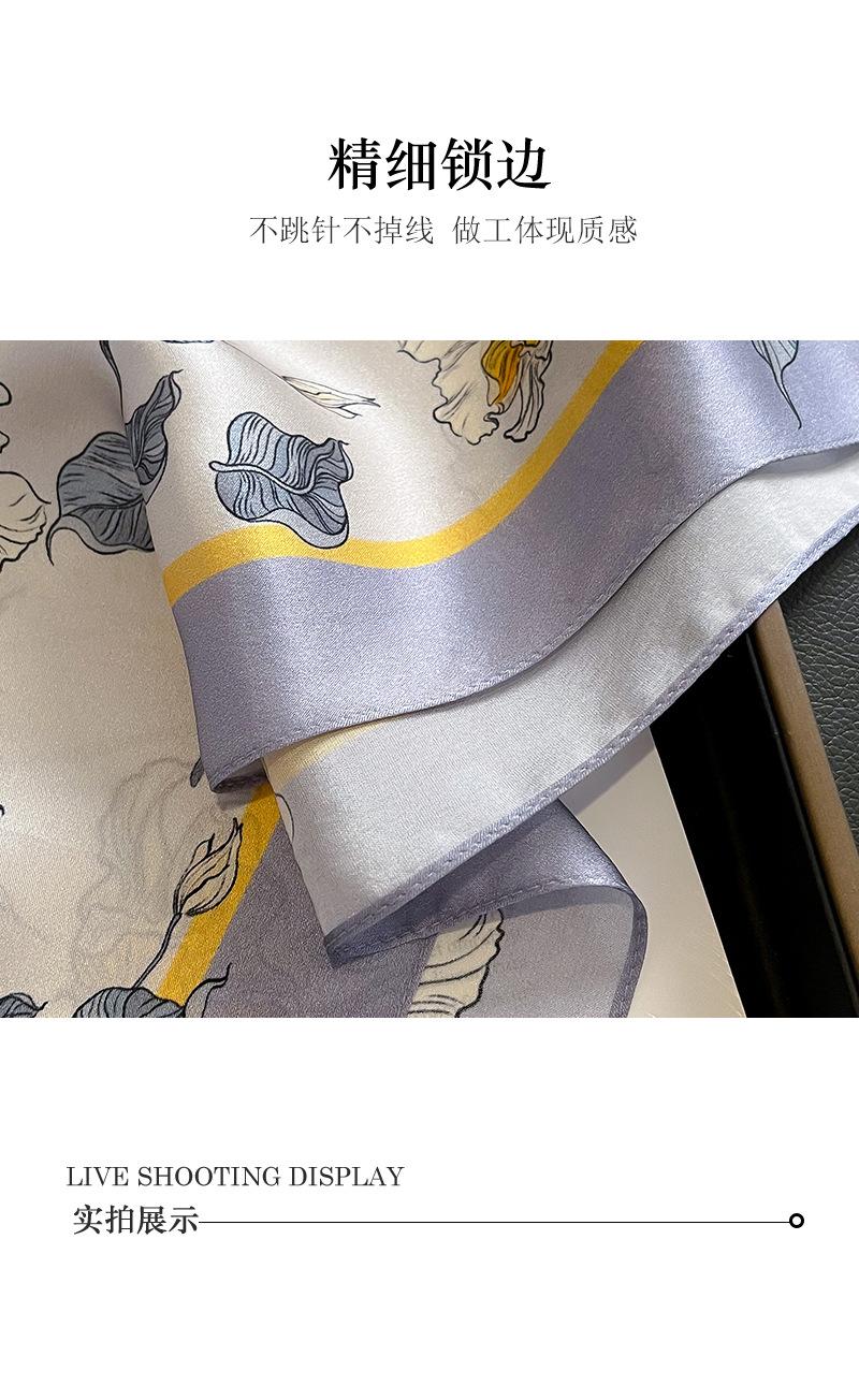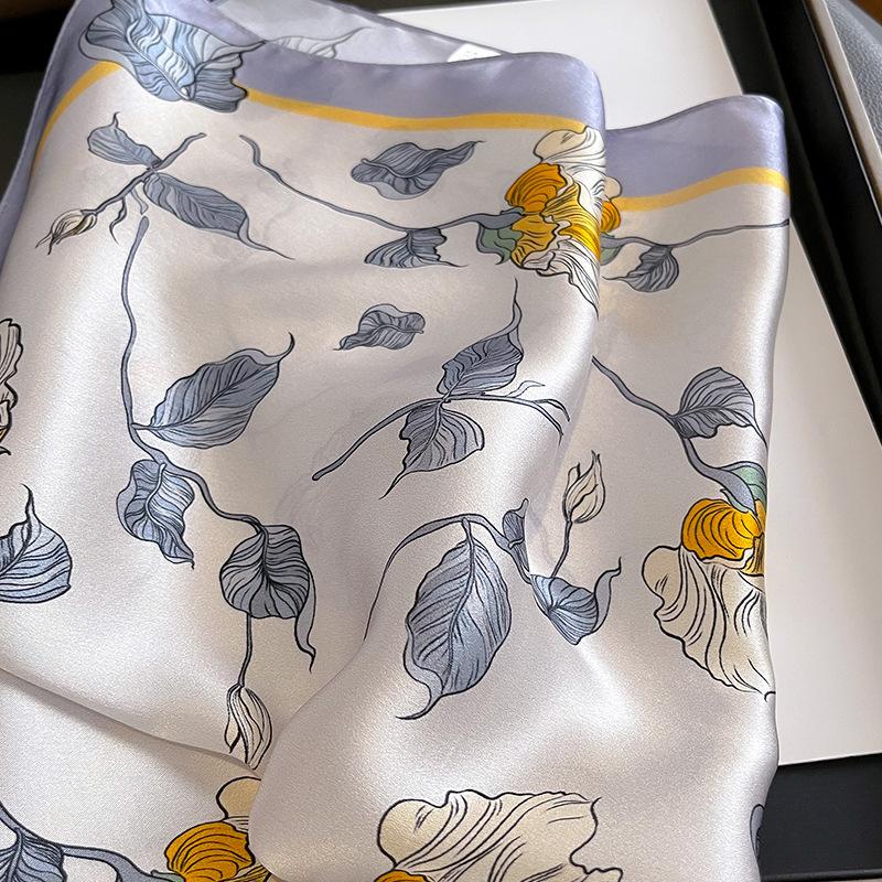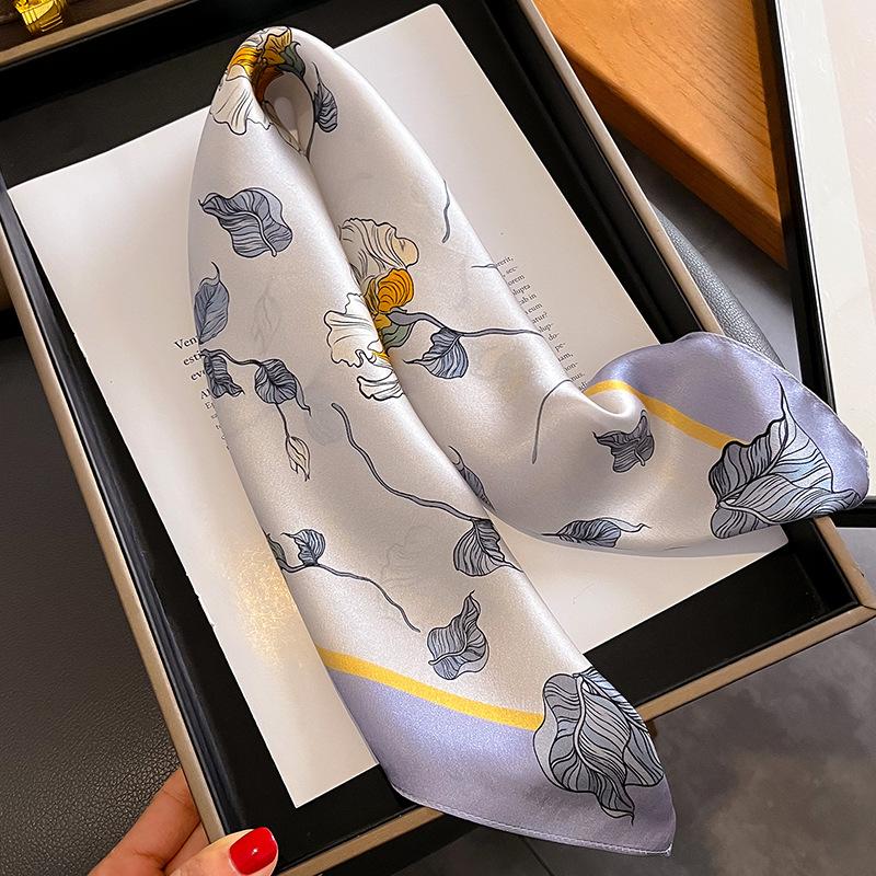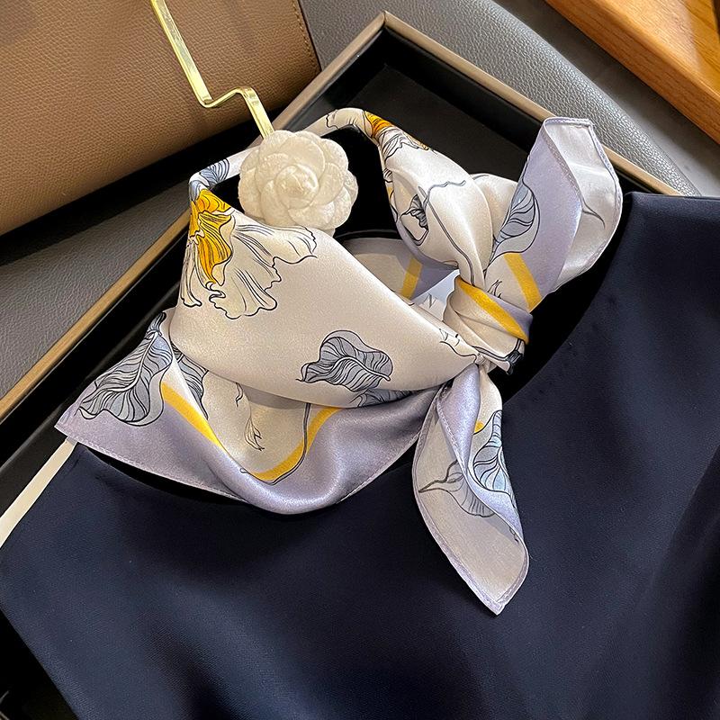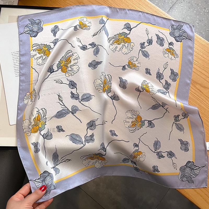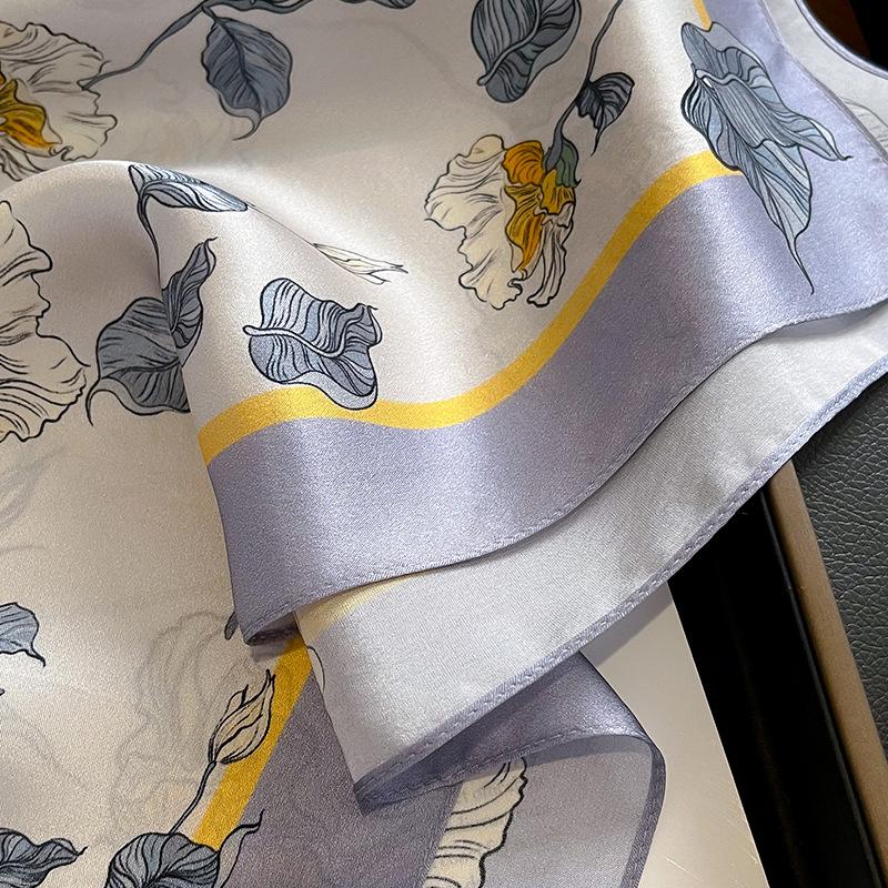 Pañuelo Cuadrado Elegante de Seda Estampada de Moda Pañuelo Decorativo para Mujer Estilo Coreano Primavera y Verano Pañuelo Chal para Protección del Cuello Pañuelo de Seda de Morera