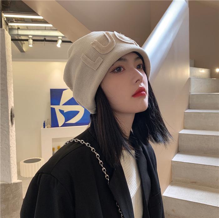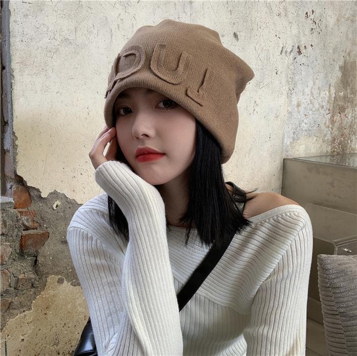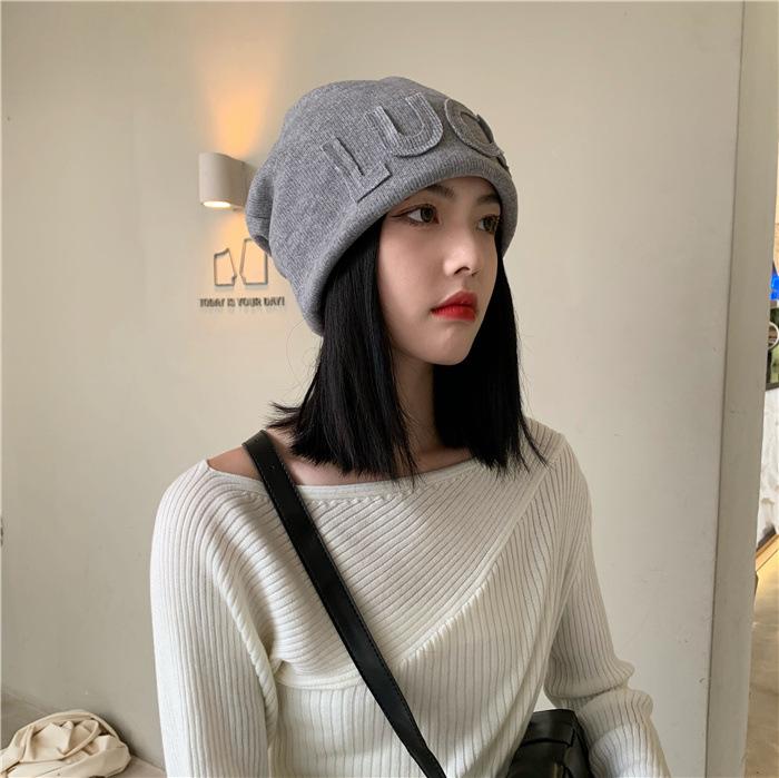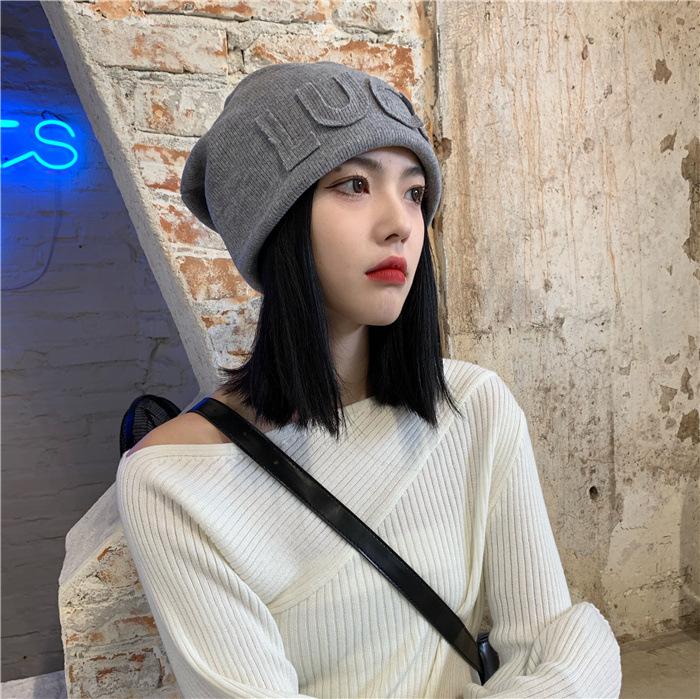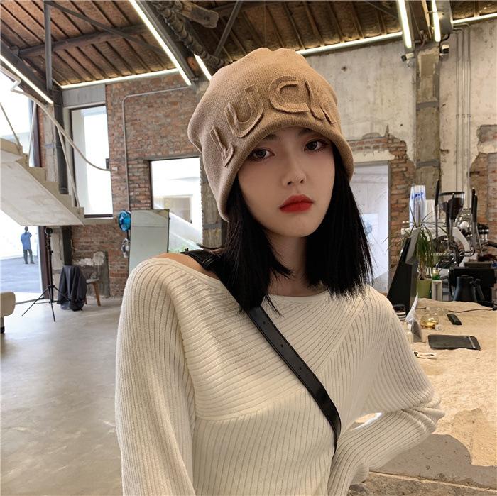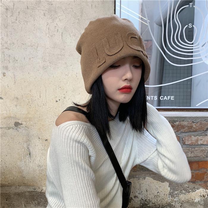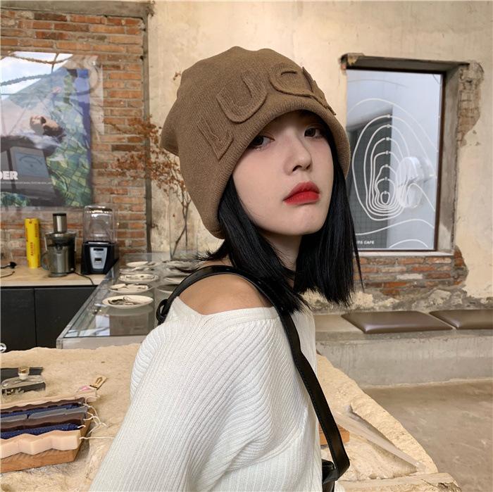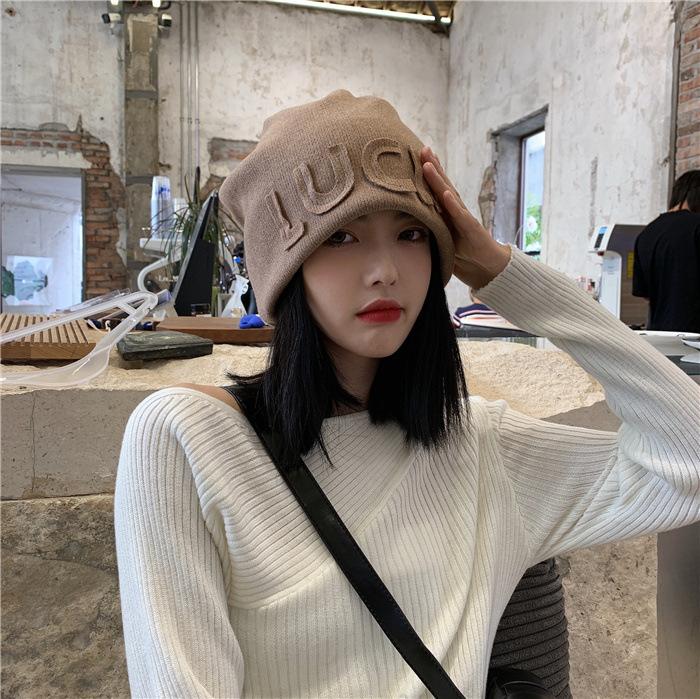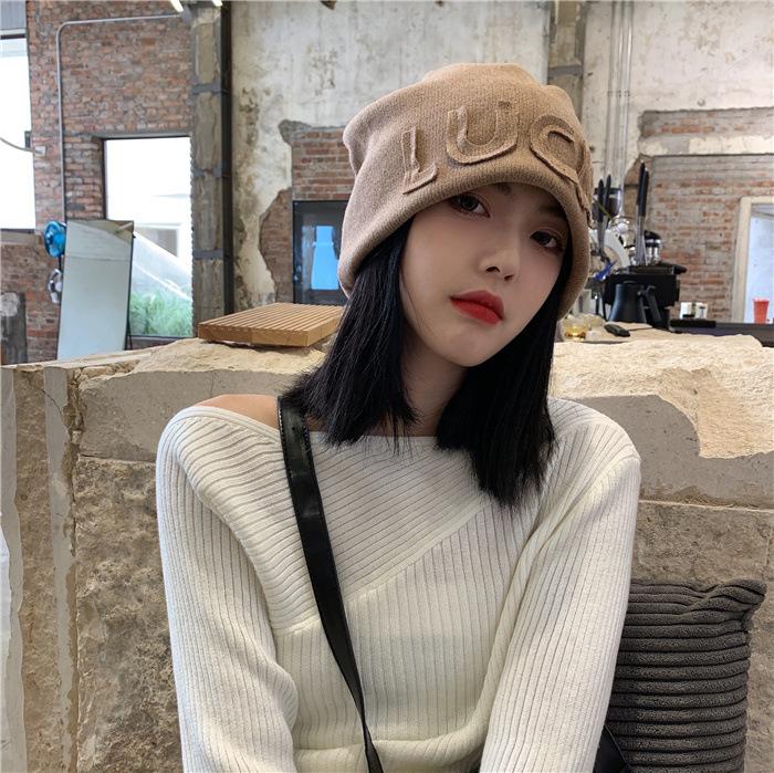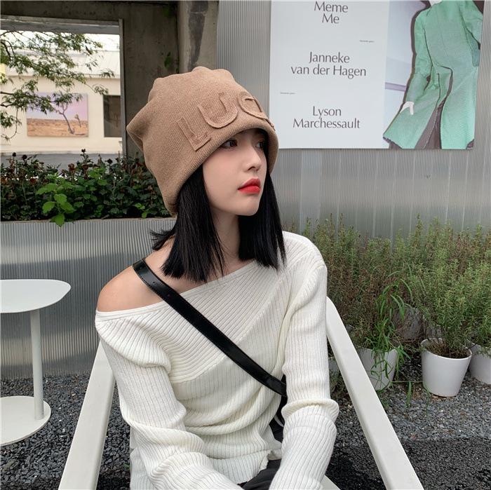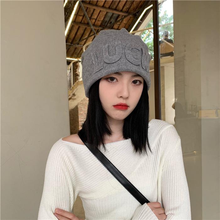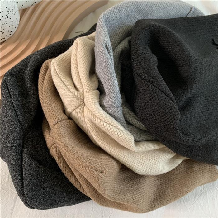 Gorro de pila gorro de confinamiento femenino gorro de punto con forro polar gorro japonés retro para cara pequeña gorro para la cabeza femenino liso para todo combinar gorro Tower
