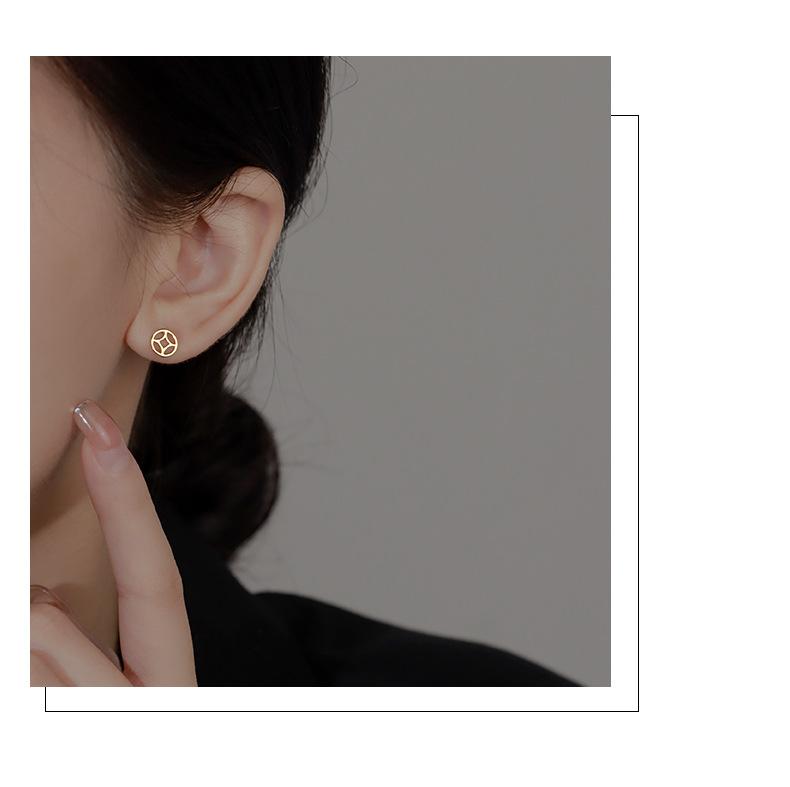 Pendientes vintage de cobre en plata de ley S925 para mujer, diseño de nicho 2023, con agujeros para las orejas, pendientes de botón avanzados