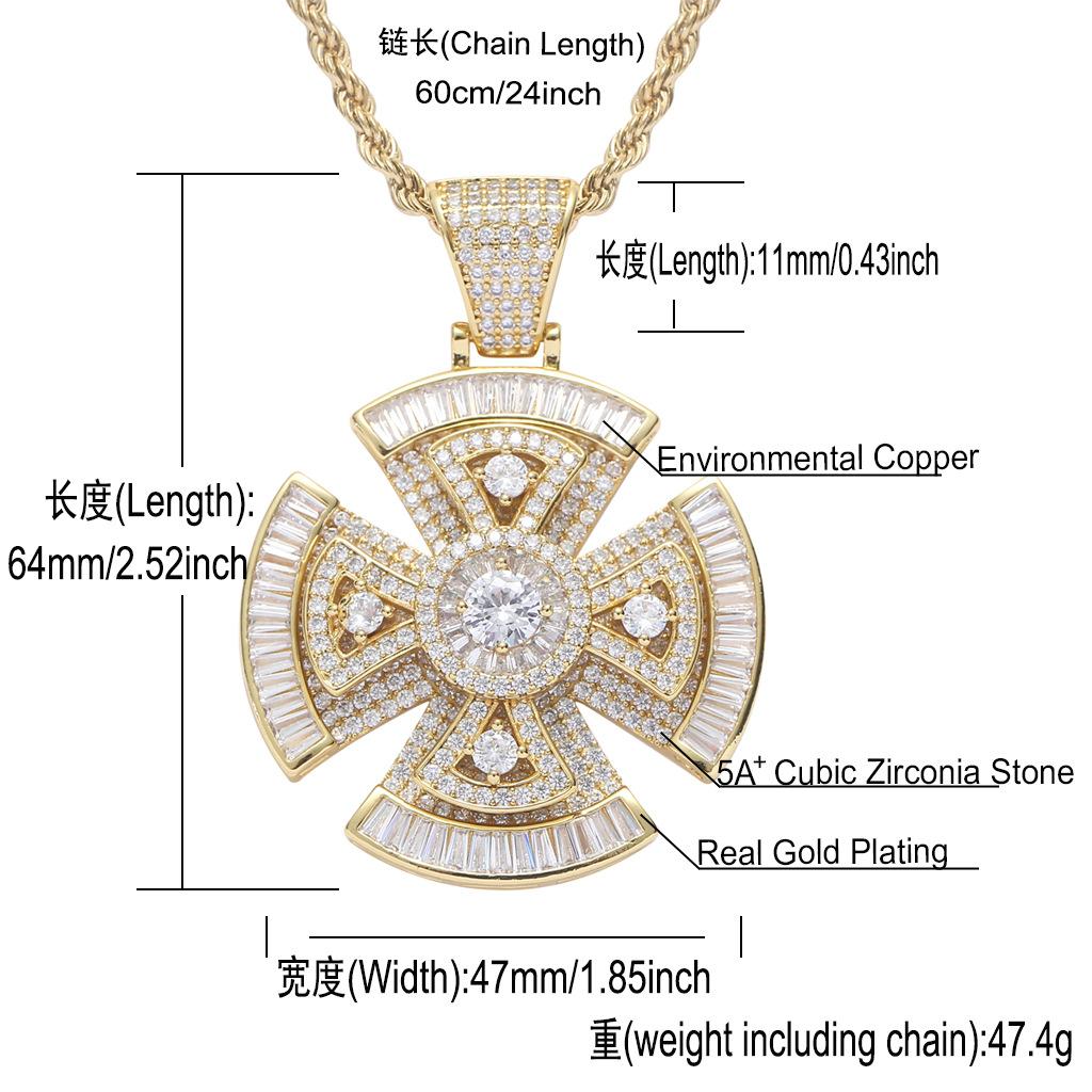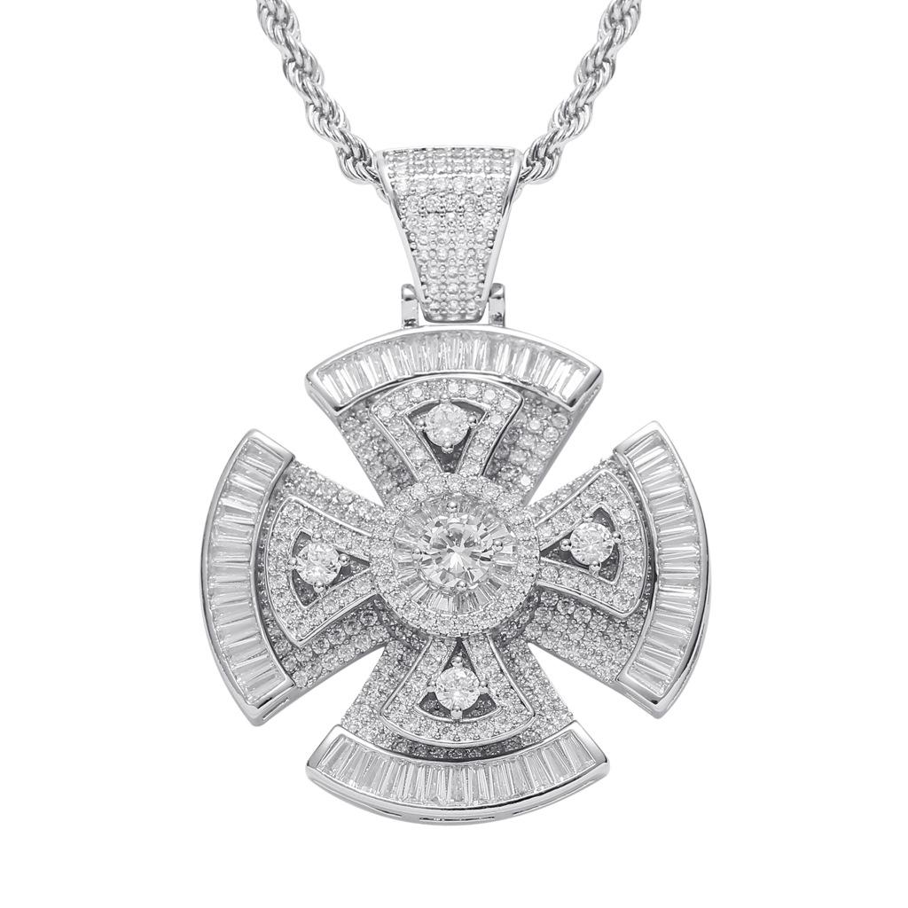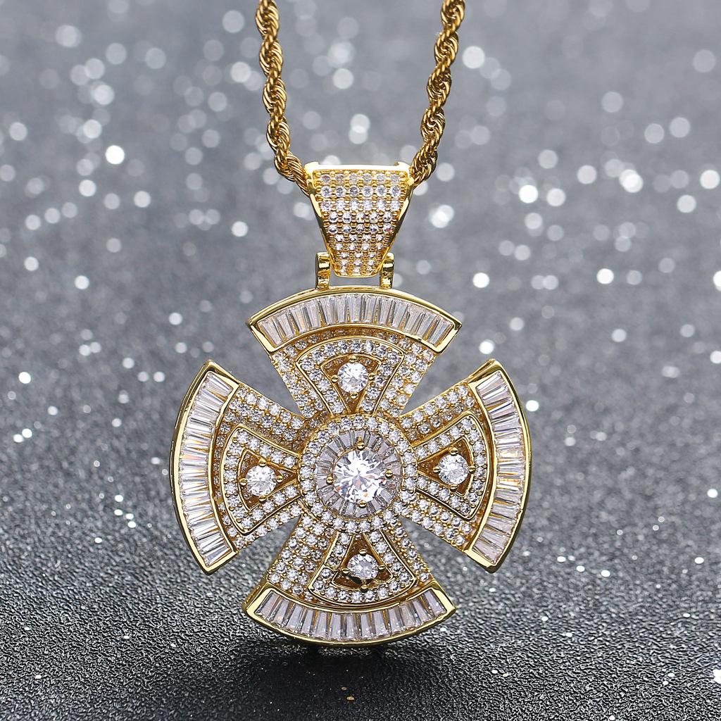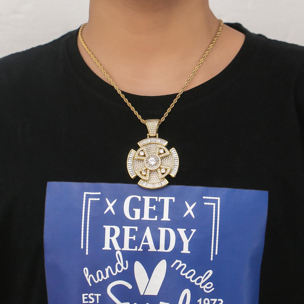 Colgante de Cruz Giratorio Nuevo Europeo y Americano Cuadrado y Redondo Circonita Incrustada Mixta Hiphop Moderno Accesorios Hiphop para Hombre