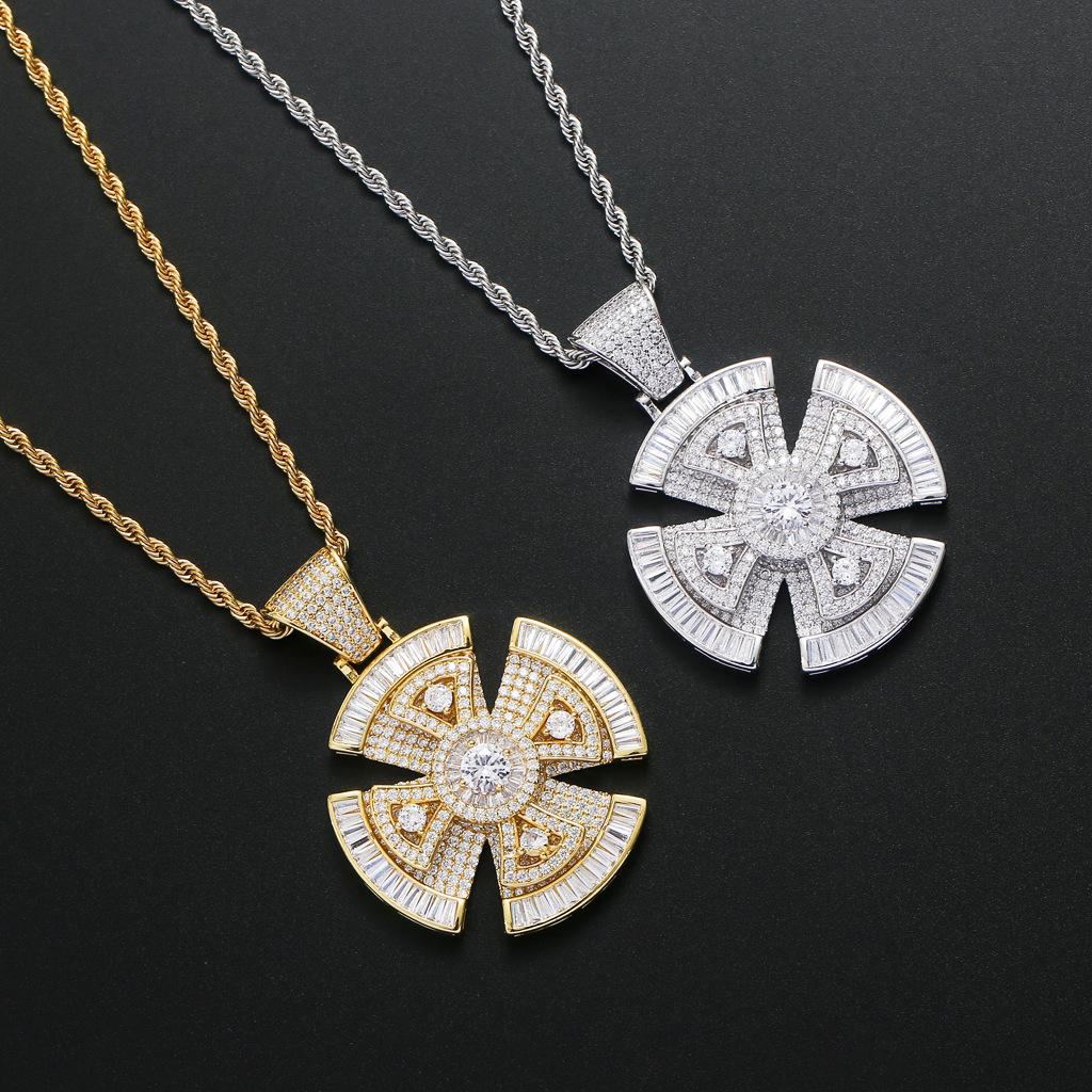 Collar europeo y americano para hombre, colgante giratorio de 44 pulgadas, gran plato giratorio, circonita microincrustada pesada, colgante de hip-hop sólido de moda para hombre