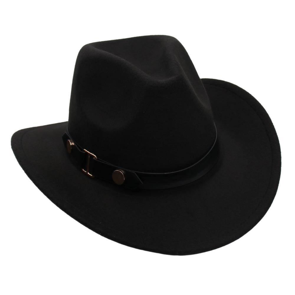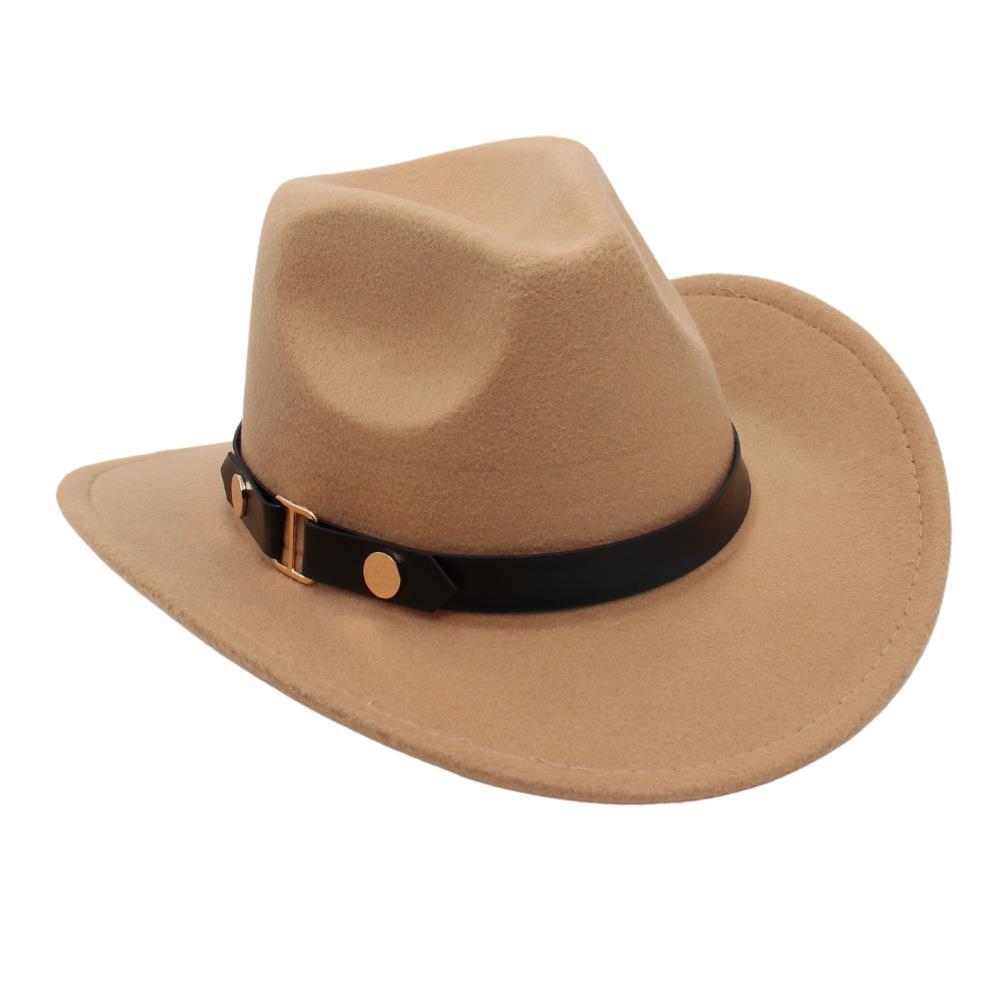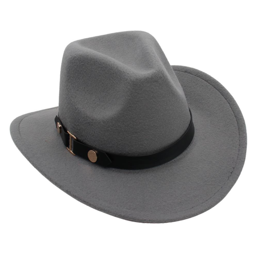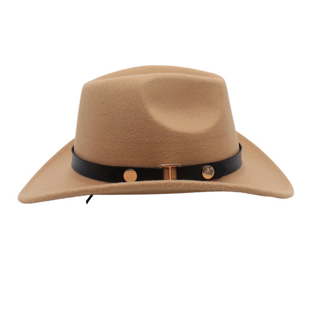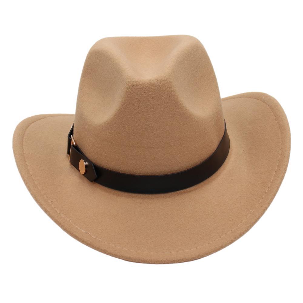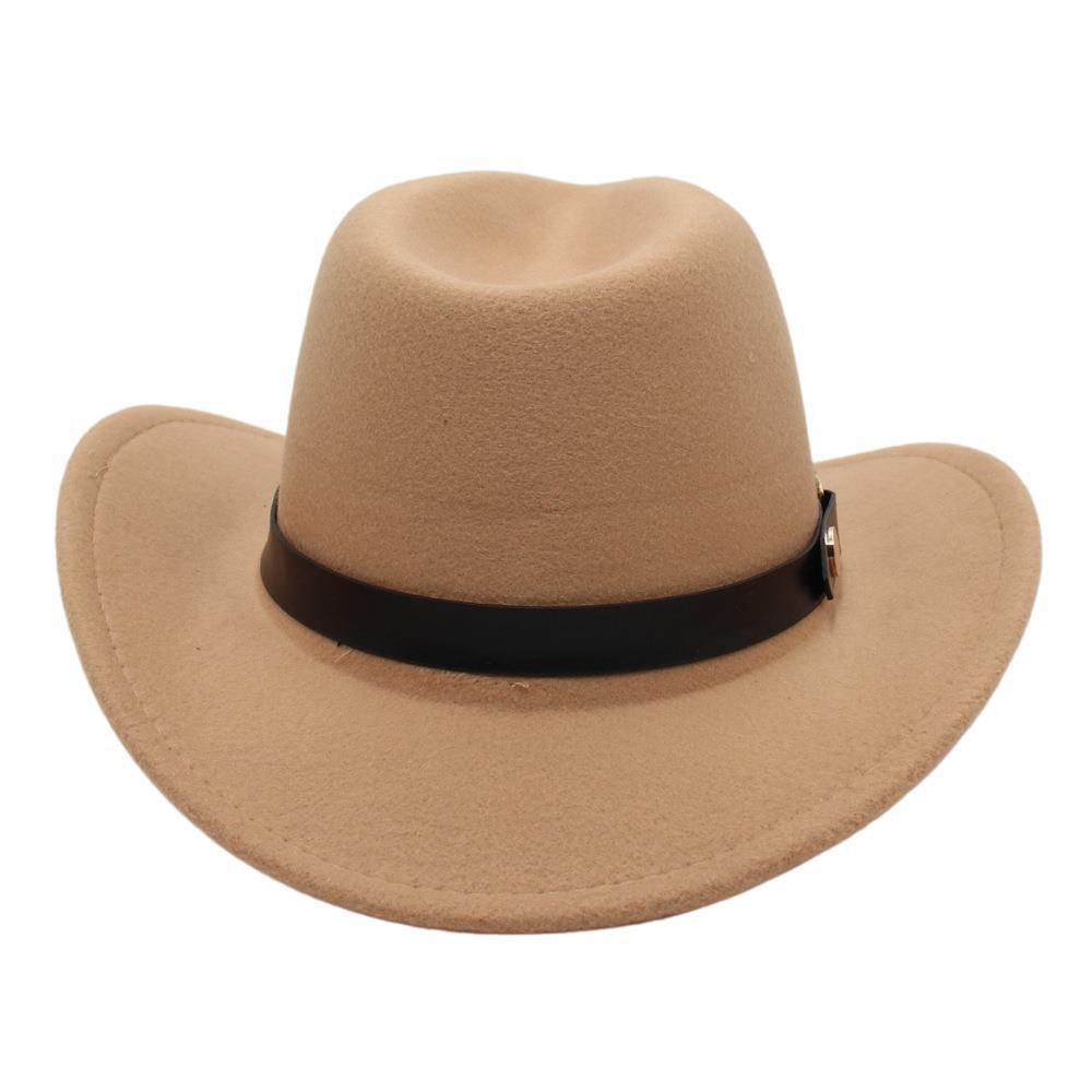 Sombrero de Vaquero Occidental Estilo Xizang de Primavera y Otoño Accesorios de Cinturón Sombrero de Jazz Ala Enrollada Sombrero de Equitación Sombrero de Fieltro Unisex Copa Blanda Adulto