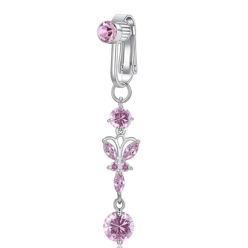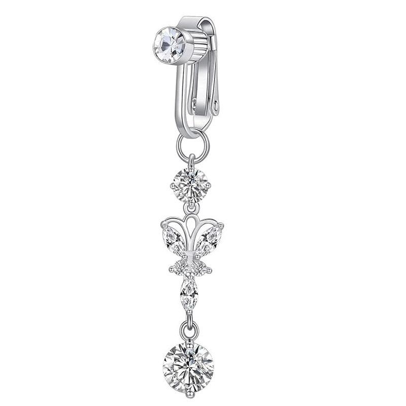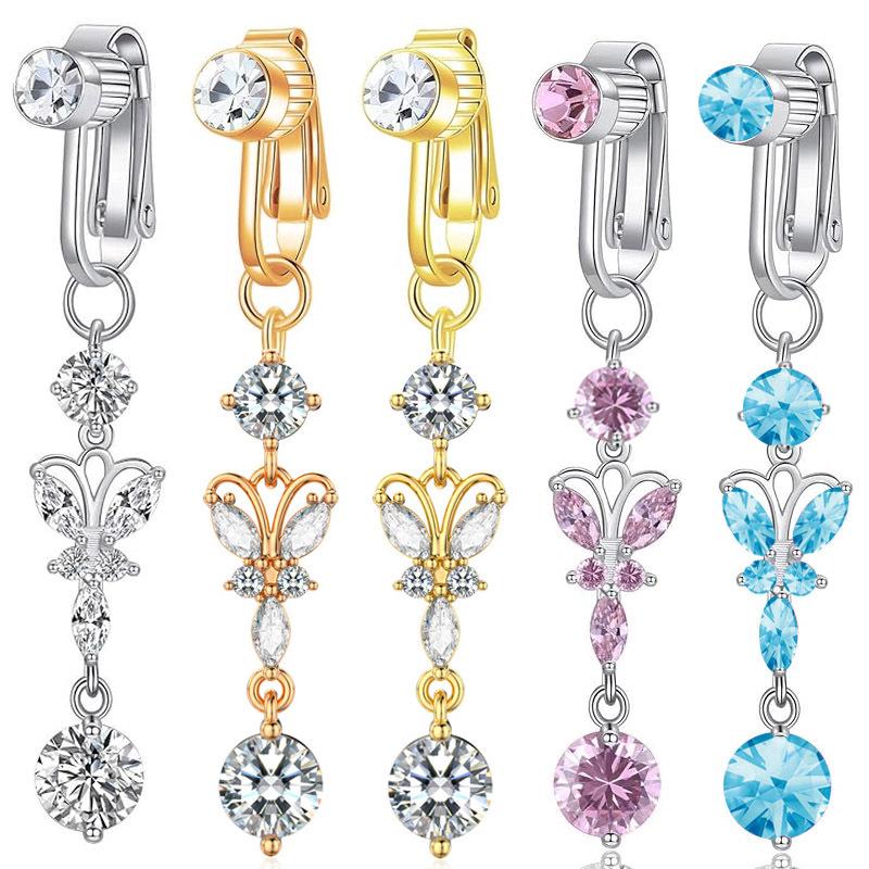 Piercing para ombligo falso de mariposa de acero inoxidable con circonita sin perforaciones, joyería para piercing de ombligo, transfronterizo entre Europa y América