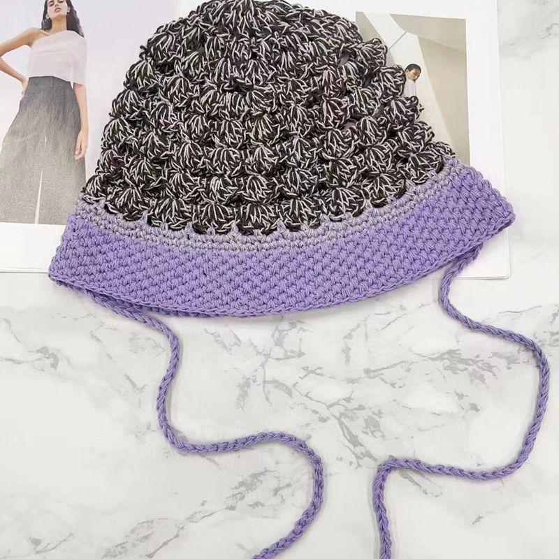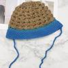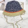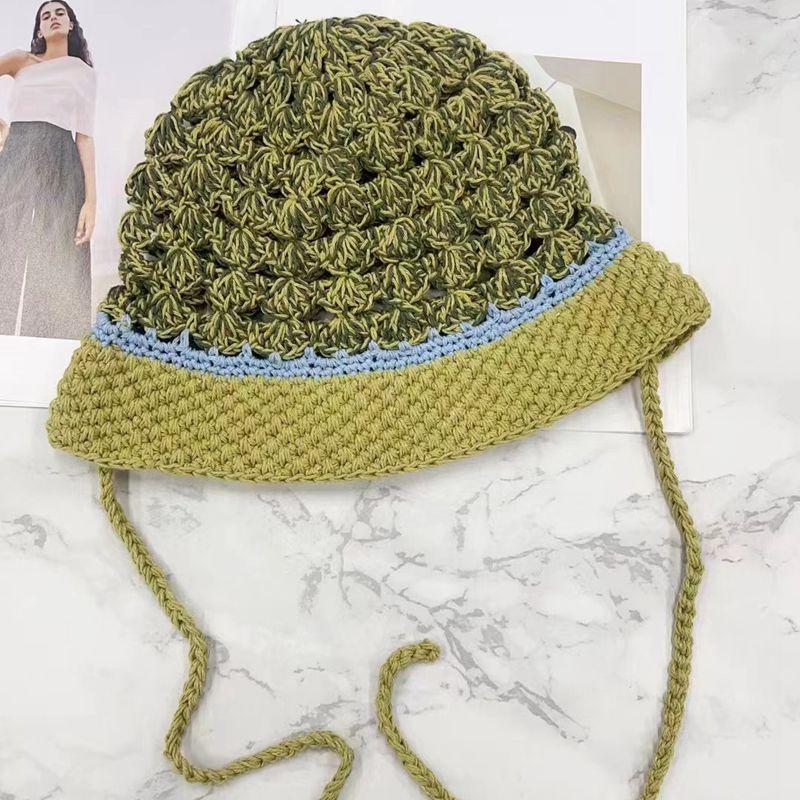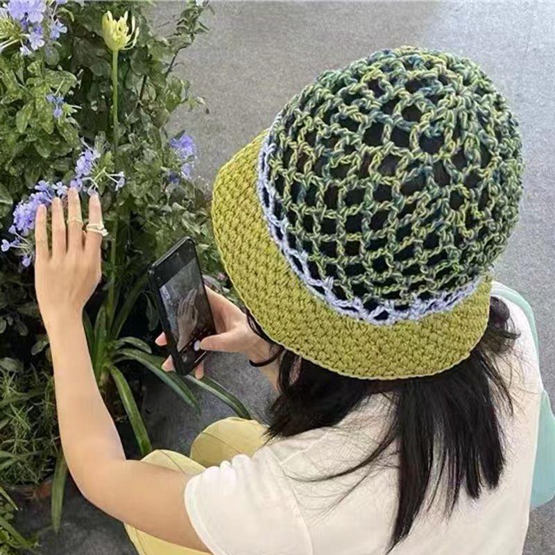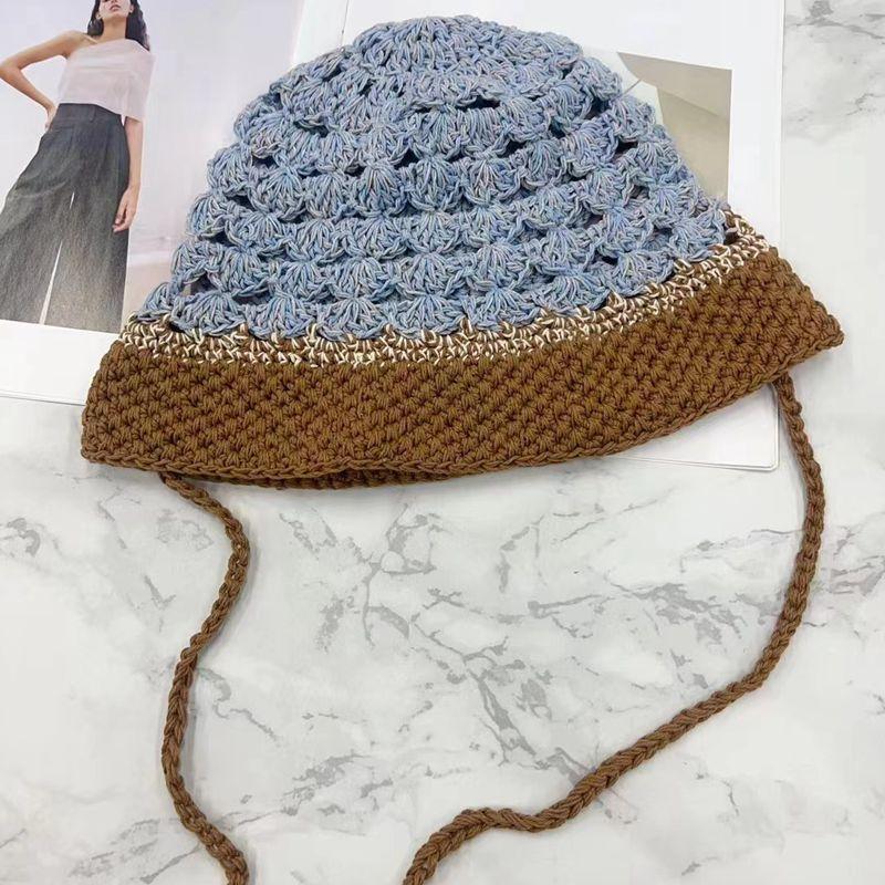 Sombrero de pescador con cordones, tejido hueco y contrastante, hecho a mano, de diseñador japonés de nicho, para niños, parasol, gorro de lavabo, sombrero de cubo, moderno