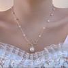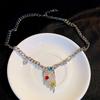 Collar cuadrado de doble capa con perla rosa, diseño avanzado para mujer, estilo nicho Sense 2022, nueva cadena de clavícula, cadena de cuello cibernética roja.