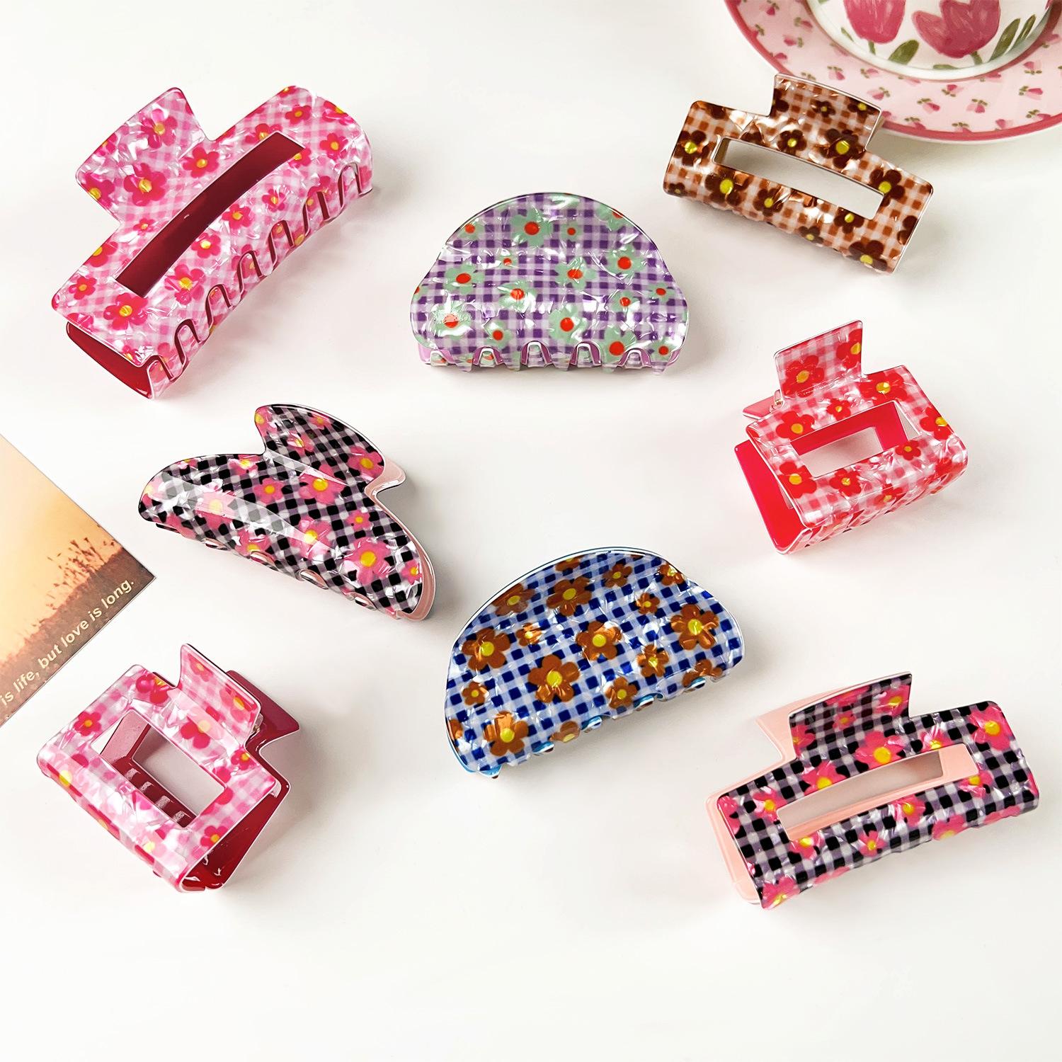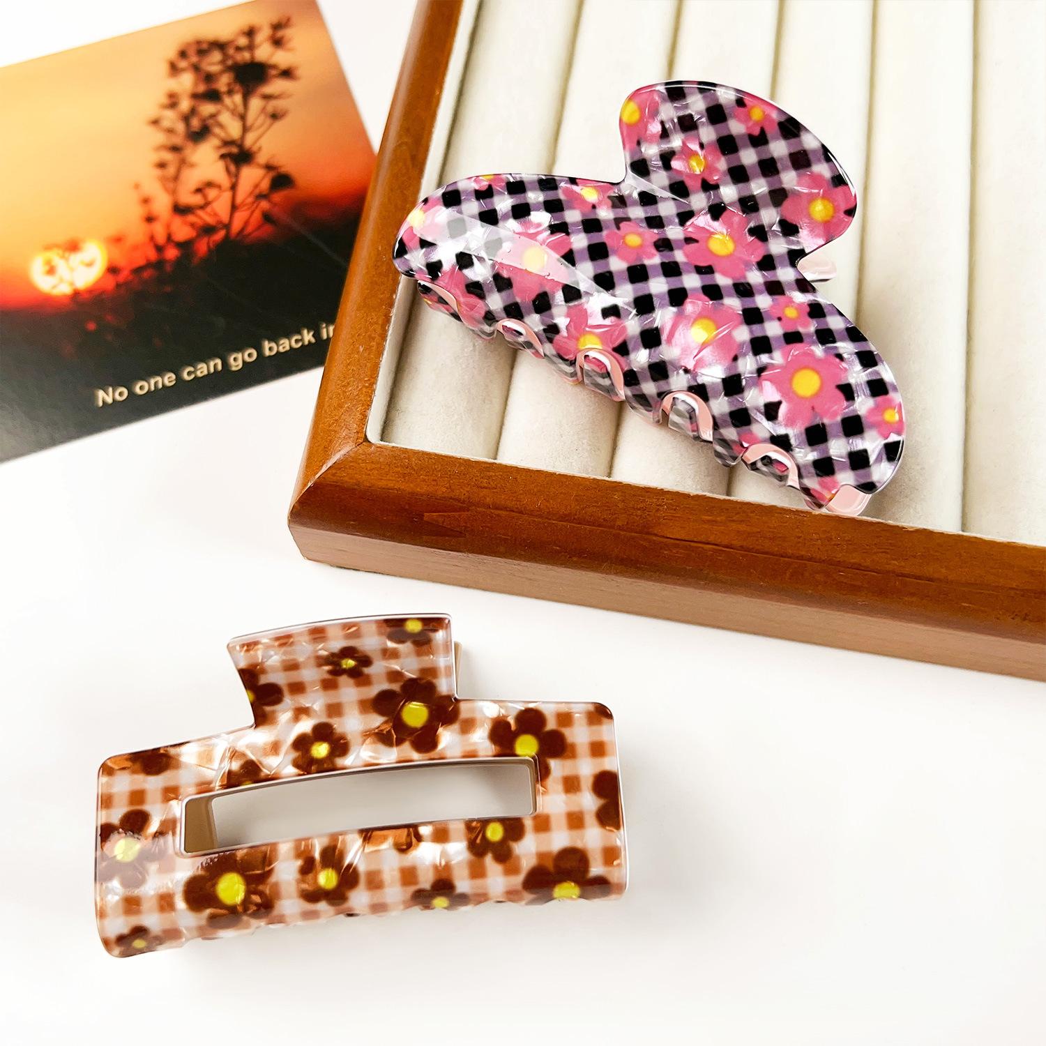 2025 Nuevo Clip Retro de PVC Estampado Temperamento Coreano de Alta Gama Clip Tiburón para Cabello Clip para Cabello de Flor Pequeña Accesorio para Cabello