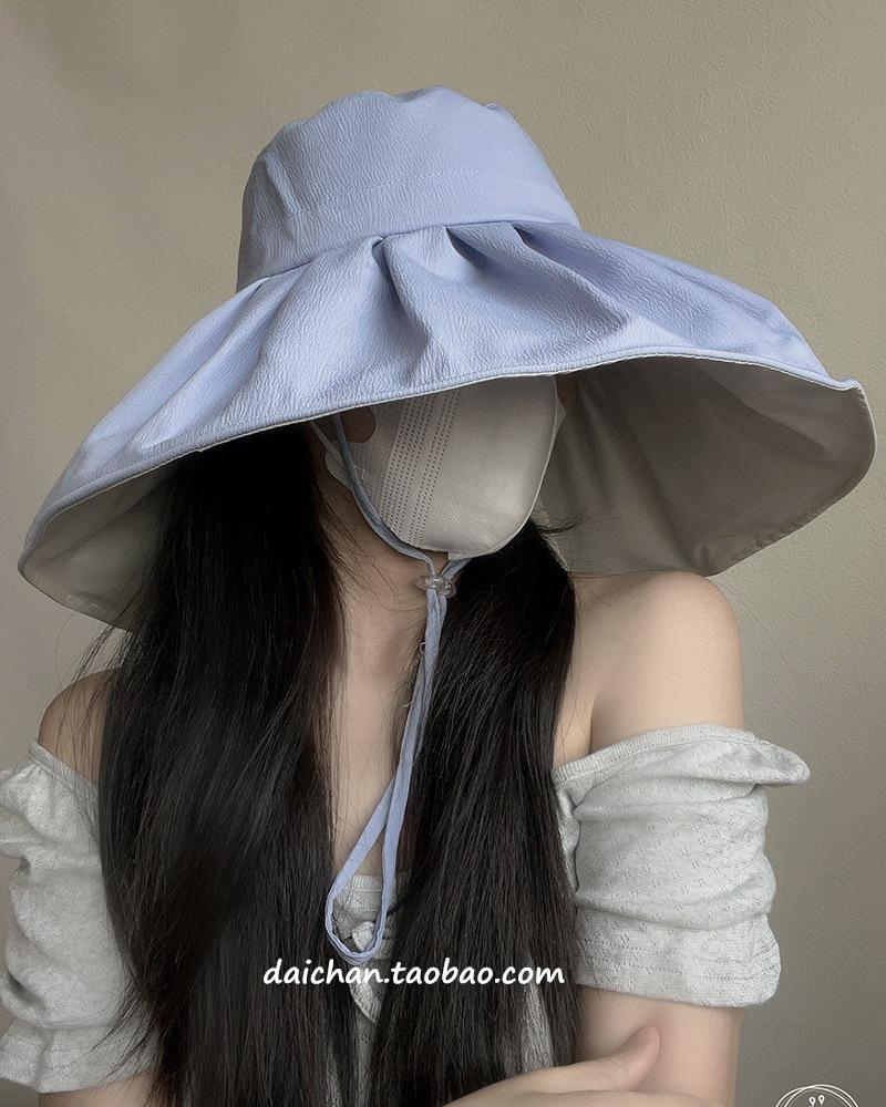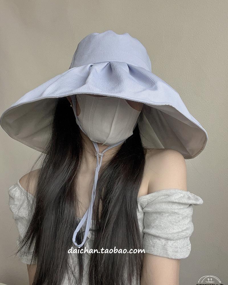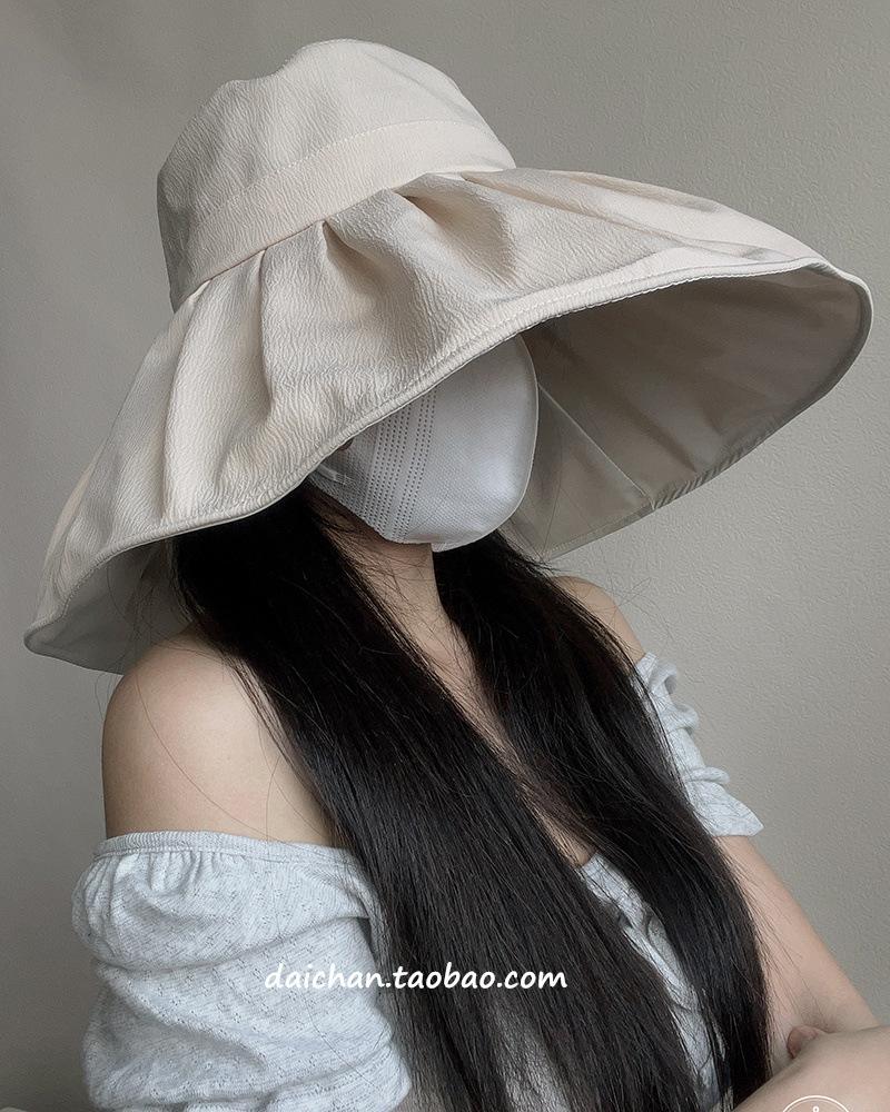 Sombrero grande con ala y patrón de textura que no se arruga fácilmente, protector solar, de goma blanca, protección para el cuello, sombrero para el sol con protección UV, sombrero para el sol plegable
