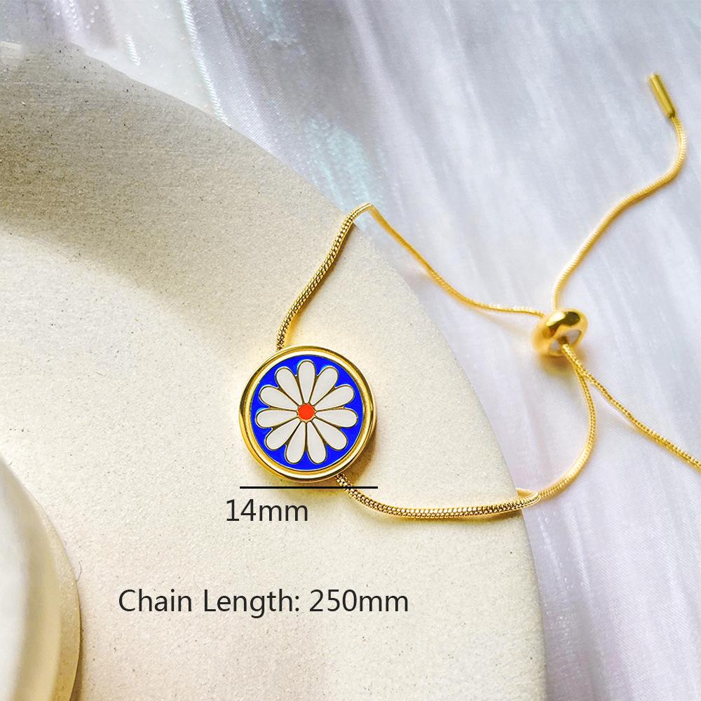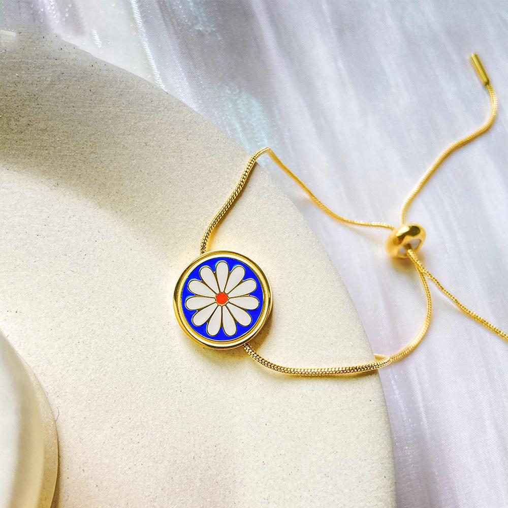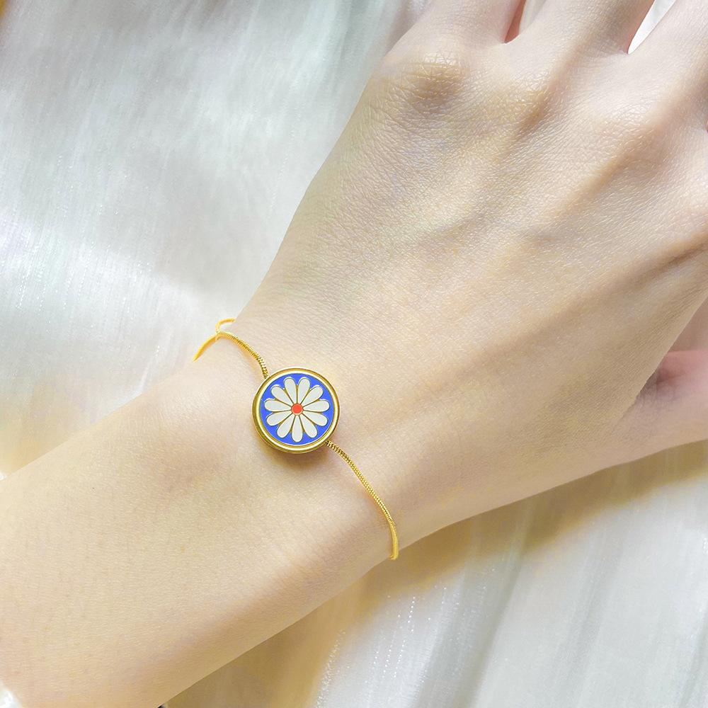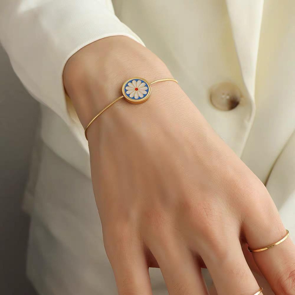 Pulsera Europea y Americana de Nueva Moda Personalizada Pequeña Fresca Pétalos de Crisantemo Acero Titanio Pulsera Acero Titanio Chapado en Oro