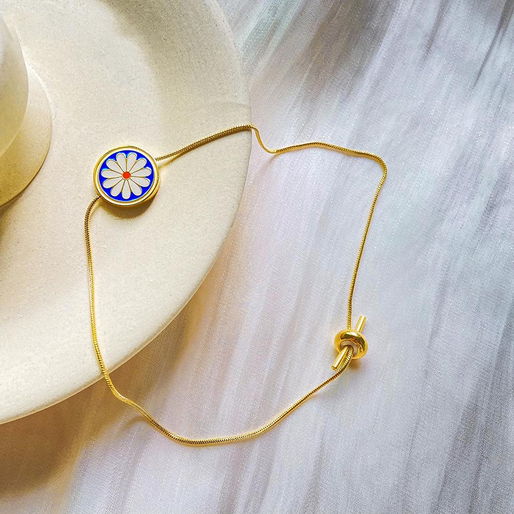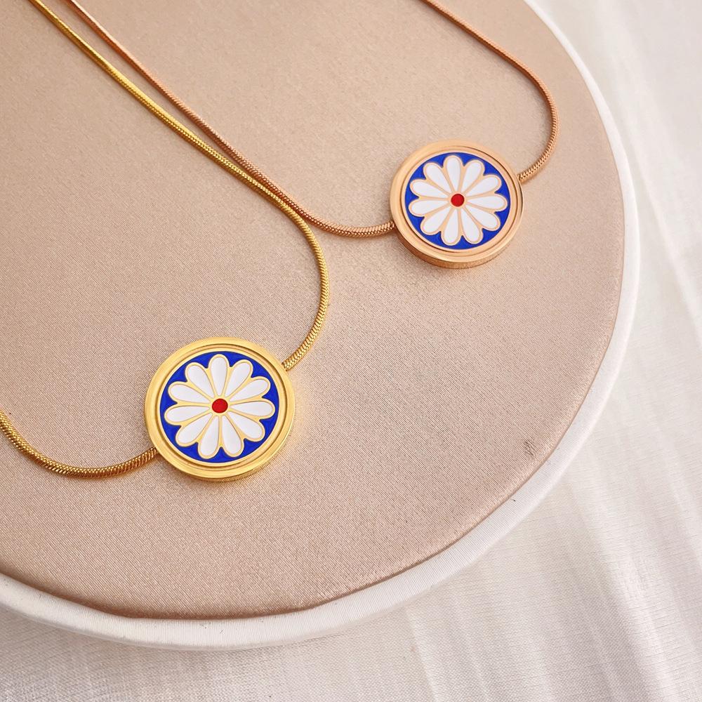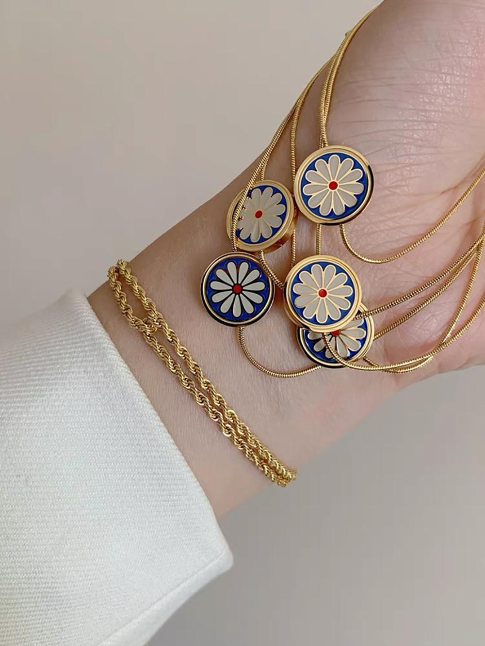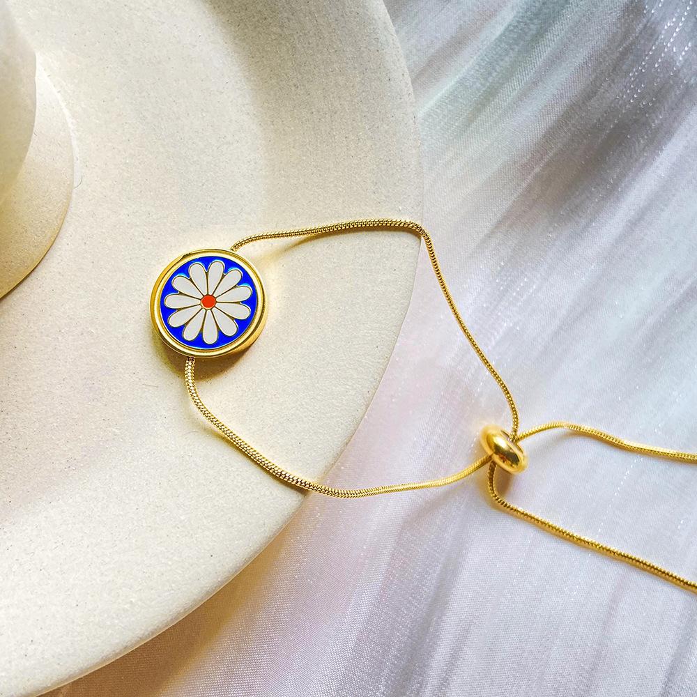Pulsera Europea y Americana de Nueva Moda Personalizada Pequeña Fresca Pétalos de Crisantemo Acero Titanio Pulsera Acero Titanio Chapado en Oro