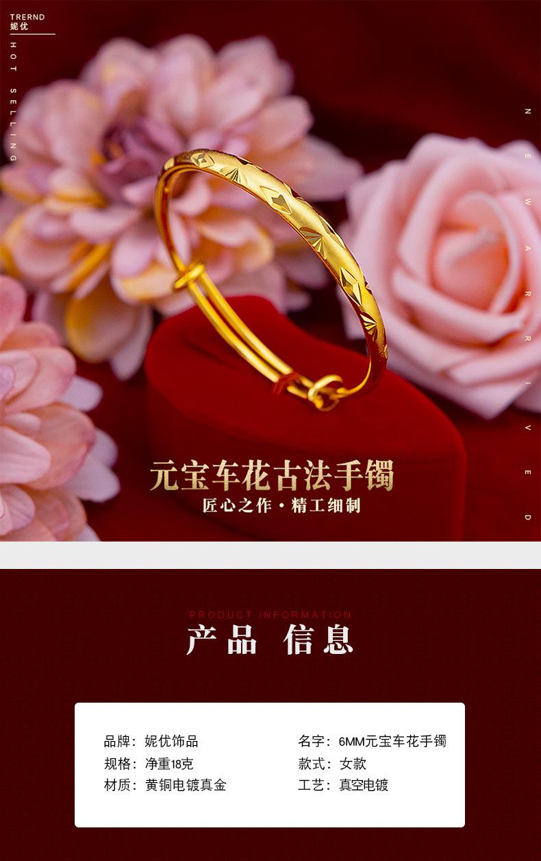 Compra Pulsera de cobre puro chapada en oro para mujer oro vietnamita coche flor lingote pulsera antigua push-pull para mujer al por mayor en Joom.pro