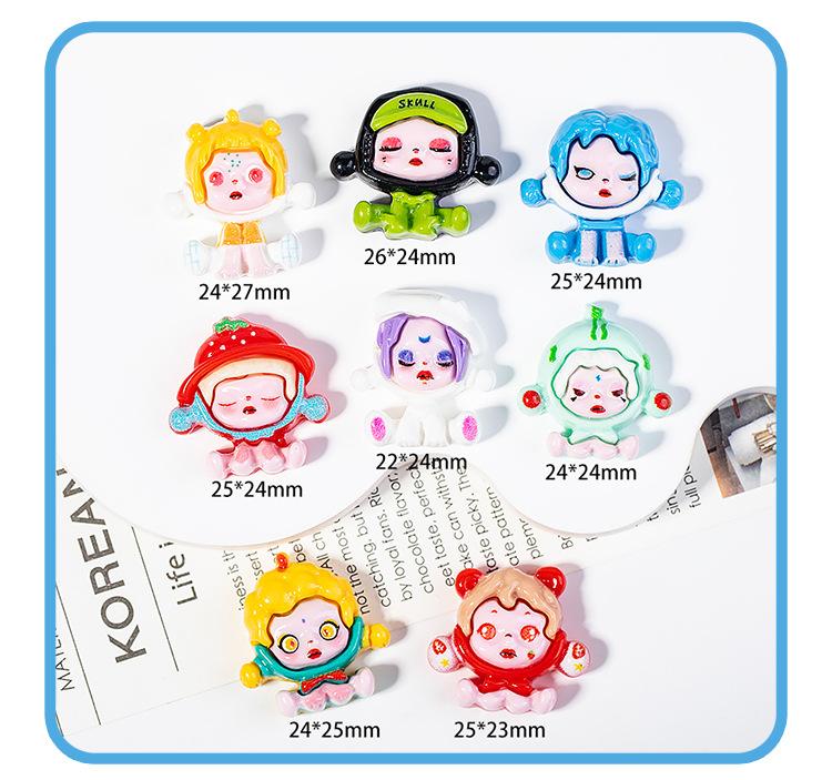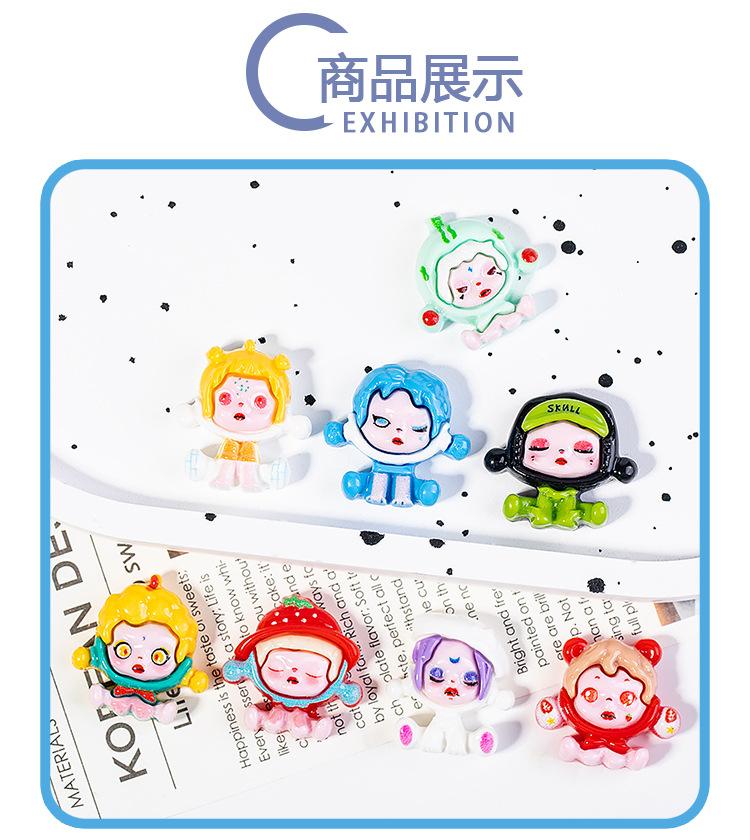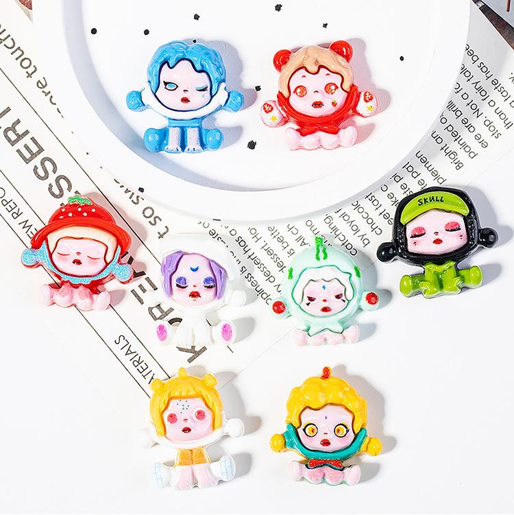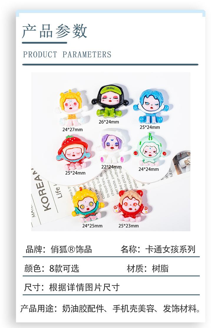 Accesorios de resina con dibujos de una linda chica sentada en una postura creativa DIY con pegamento en crema para funda de teléfono móvil, parche para la cabeza, llavero.