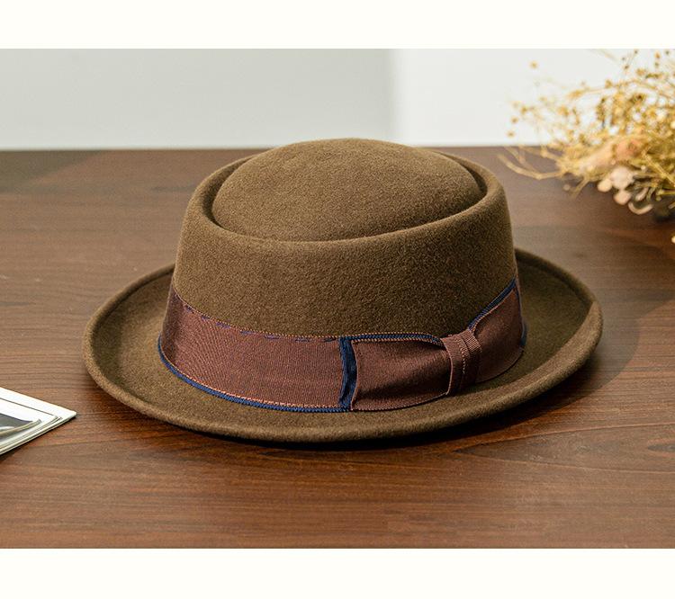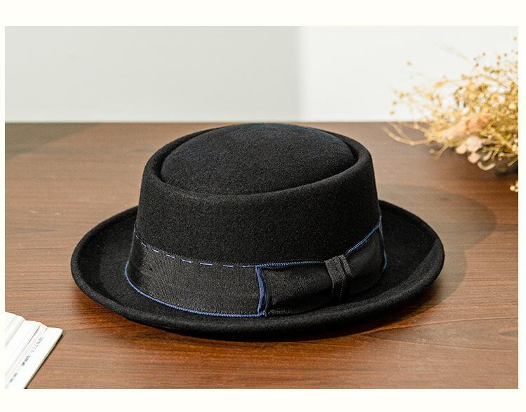 Sombrero de Fieltro de Lana Sombrero Jazz Deformado para Mujer 24 Nuevo Estilo Otoño e Invierno 24 Nuevo Otoño e Invierno Color Puro Versátil Elegante Cúpula