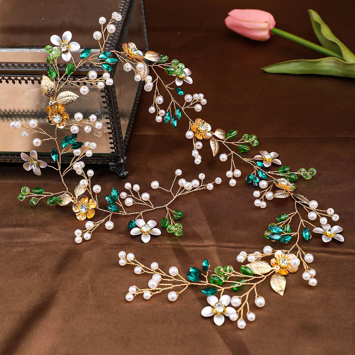 Diadema de perlas hecha a mano de AliExpress, con flores de comercio exterior europeo y americano, para novia, vestido de novia, accesorios para banquetes.