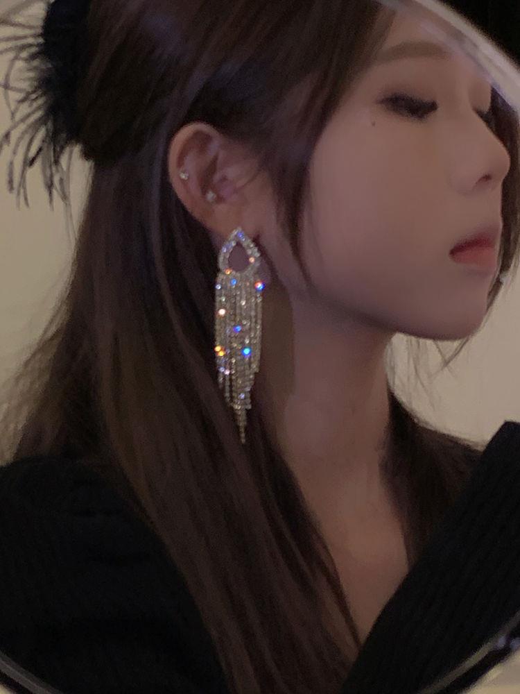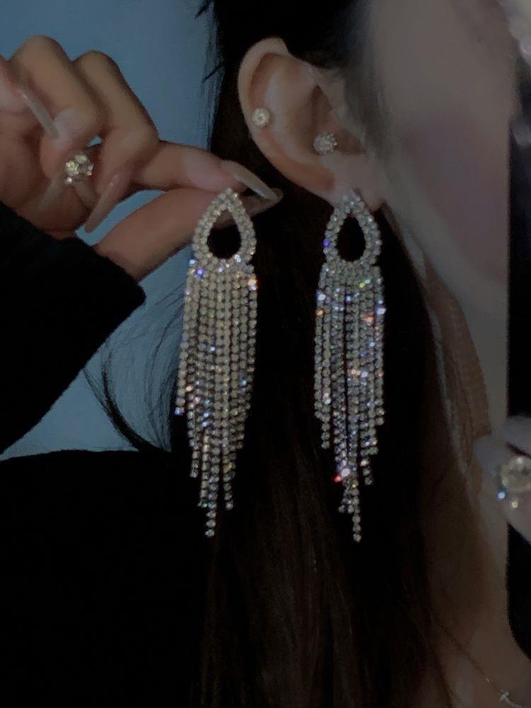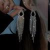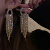 Pendientes de lujo exagerados con borlas largas y diamantes llenos de gotas de agua, elegantes pendientes de cena que combinan con todo para mujer, moda europea y americana
